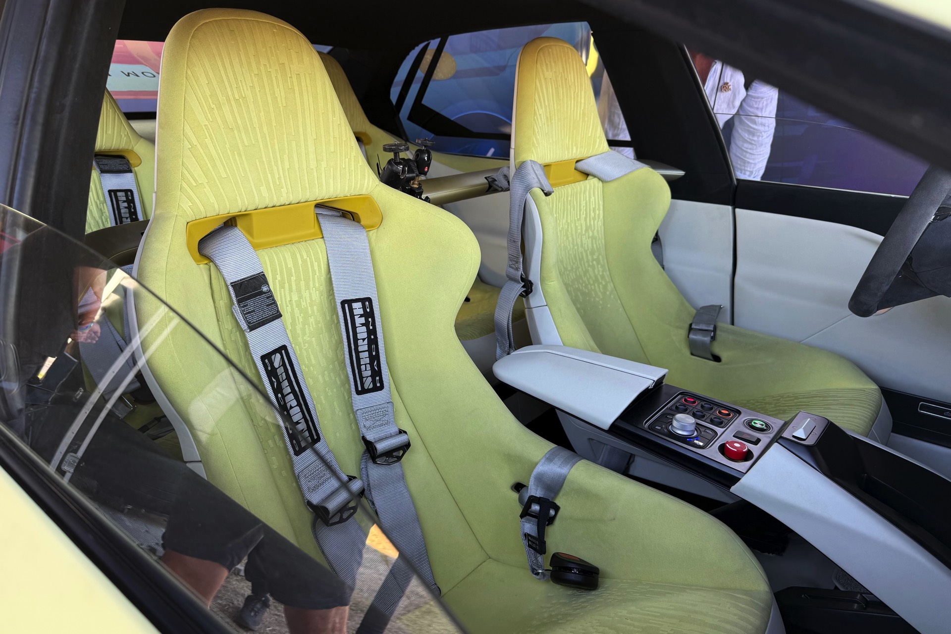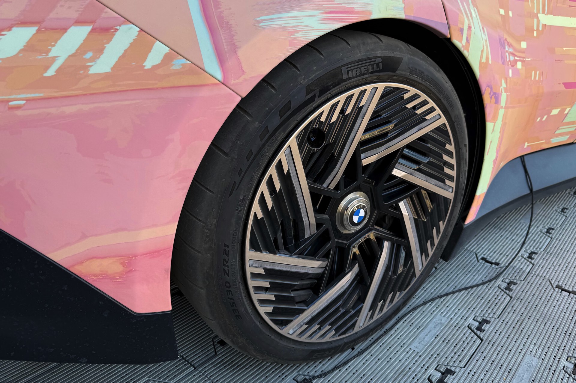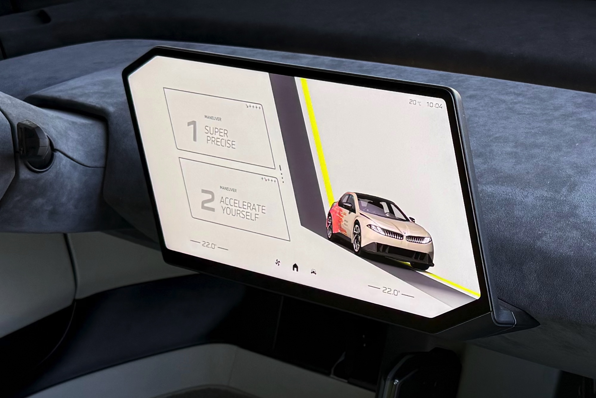 “Ganz nebenbei” liefert der meist schlicht als BMW VDX abgekürzte Prototyp auch einen ziemlich konkreten Ausblick auf den elektrischen BMW M3 (ZA0), der wohl 2027 auf Basis des nächsten i3 (NA0) auf den Markt kommen wird. Der Blick ins Cockpit liefert so gesehen auch einen Vorgeschmack auf das Interieur der Neuen Klasse, denn wir sehen unter anderem das Panoramic Vision-Display am Fuß der Frontscheibe und auch das markant geformte Infotainment-Display für BMW iDrive X. Die derzeit ziemlich pragmatisch gestaltete Schaltzentrale auf der Mittelkonsole dürfte sich auf dem Weg zur Serie genau wie manch anderes Detail noch verändern, das grundlegende Setup wird aber schon jetzt deutlich.
