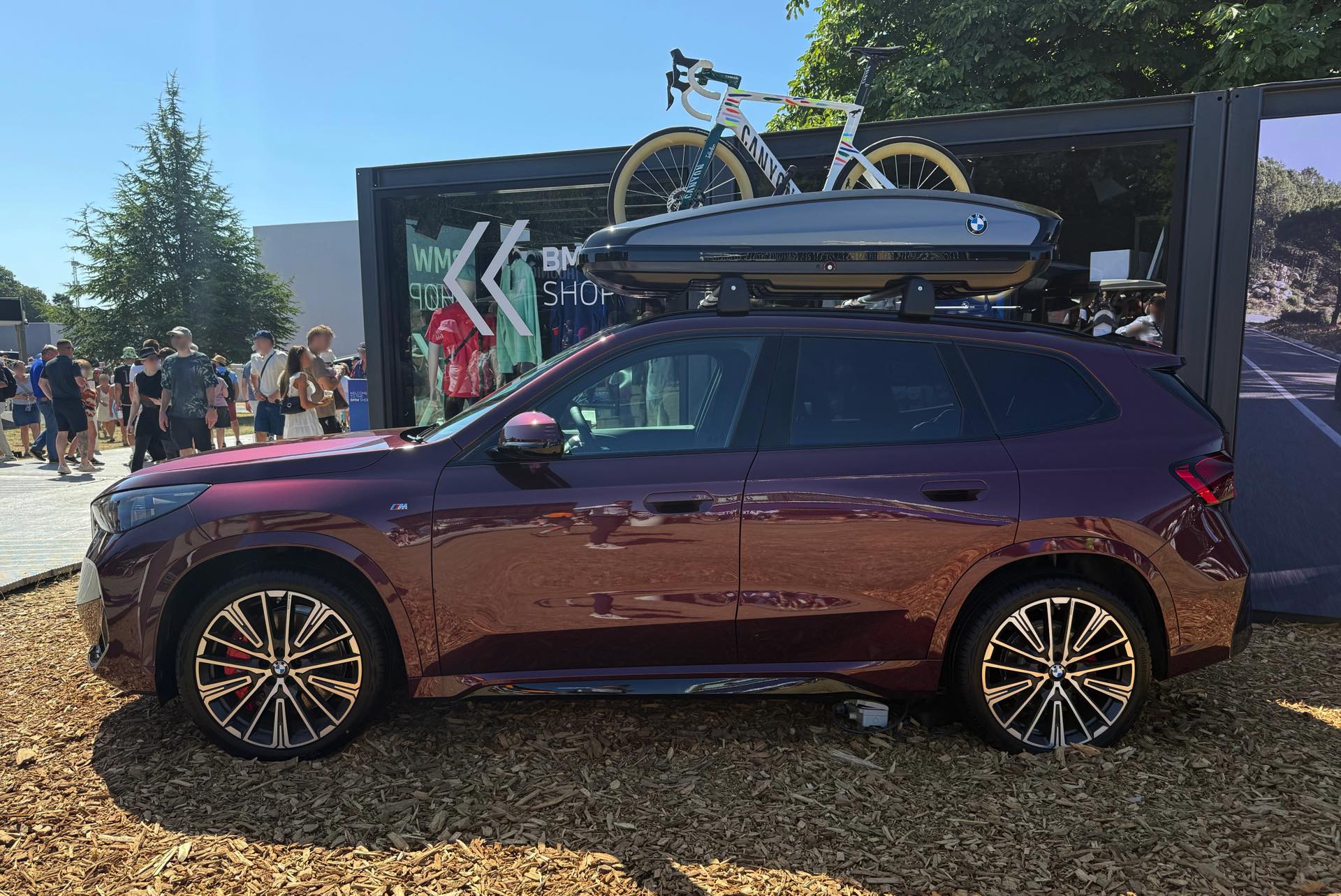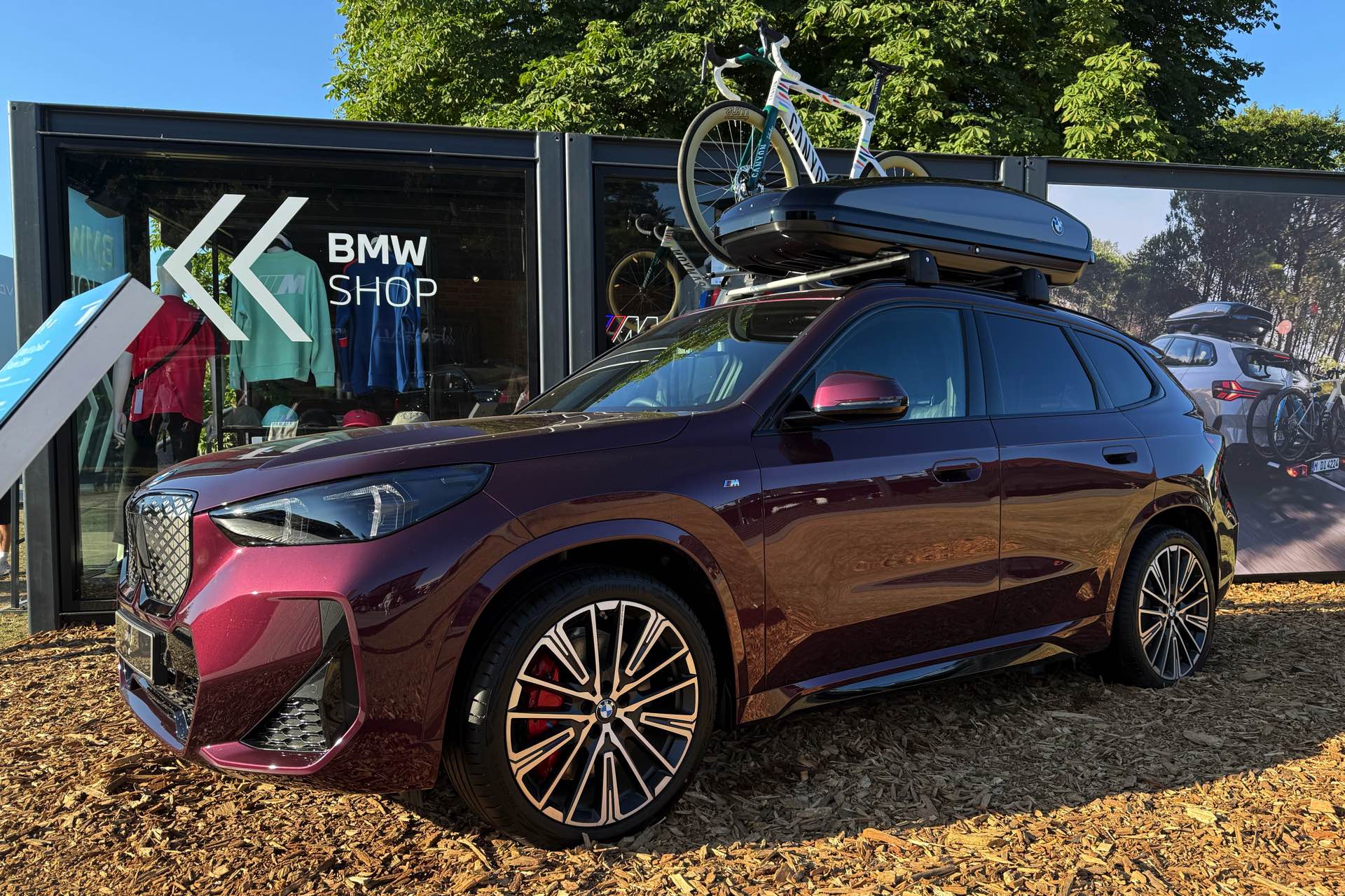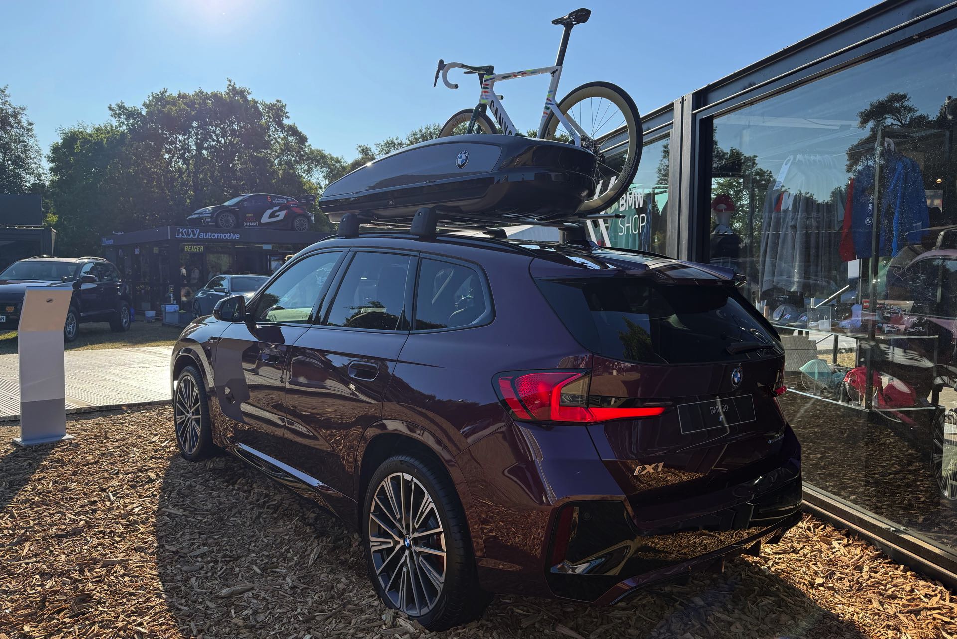Dass sich Stil und Praktikabilität nicht ausschließen müssen, zeigte ein spezieller BMW iX1 beim Goodwood Festival of Speed. Das kompakte Elektro-SUV, das in England genau wie in Deutschland zu den Bestsellern der Marke zählt, kombiniert eine exklusive Individual-Lackierung mit praktischen Alltagshelfern aus dem BMW Zubehör-Programm. Was sich mit BMW X1 und iX1 auch außerhalb des je nach Antrieb rund 500 bis 1.500 Liter großen Kofferraums alles transportieren lässt, zeigt der Bayer direkt auf dem Dach: Neben einem Rennrad ist hier auch noch eine Dachbox platziert, die für mehrere hundert Liter zusätzlichen Stauraum sorgt.