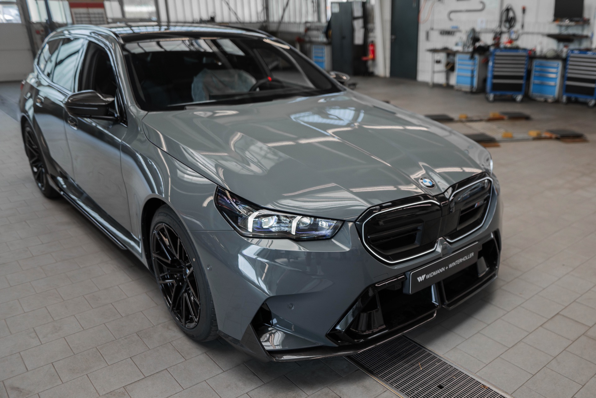 Meist sehen wir Fahrzeuge mit M Performance Tuning erst im Anschluss an die Nachrüstung der Teile, doch wie kommen Carbon & Co. eigentlich ans Auto? Genau das können wir uns heute dank eines Foto-Sets aus dem Dachauer BMW Autohaus Widmann + Winterholler genauer ansehen, denn wir dürfen einen Blick in die Werkstatt werfen und bei der Installation diverser M Performance Parts an einem BMW M5 Touring (G99) über die Schulter schauen. Dass der 727 PS starke Über-Kombi dabei auch noch mit einer Individual-Lackierung in Grigio Telesto glänzt, macht die Fotos nur noch interessanter.