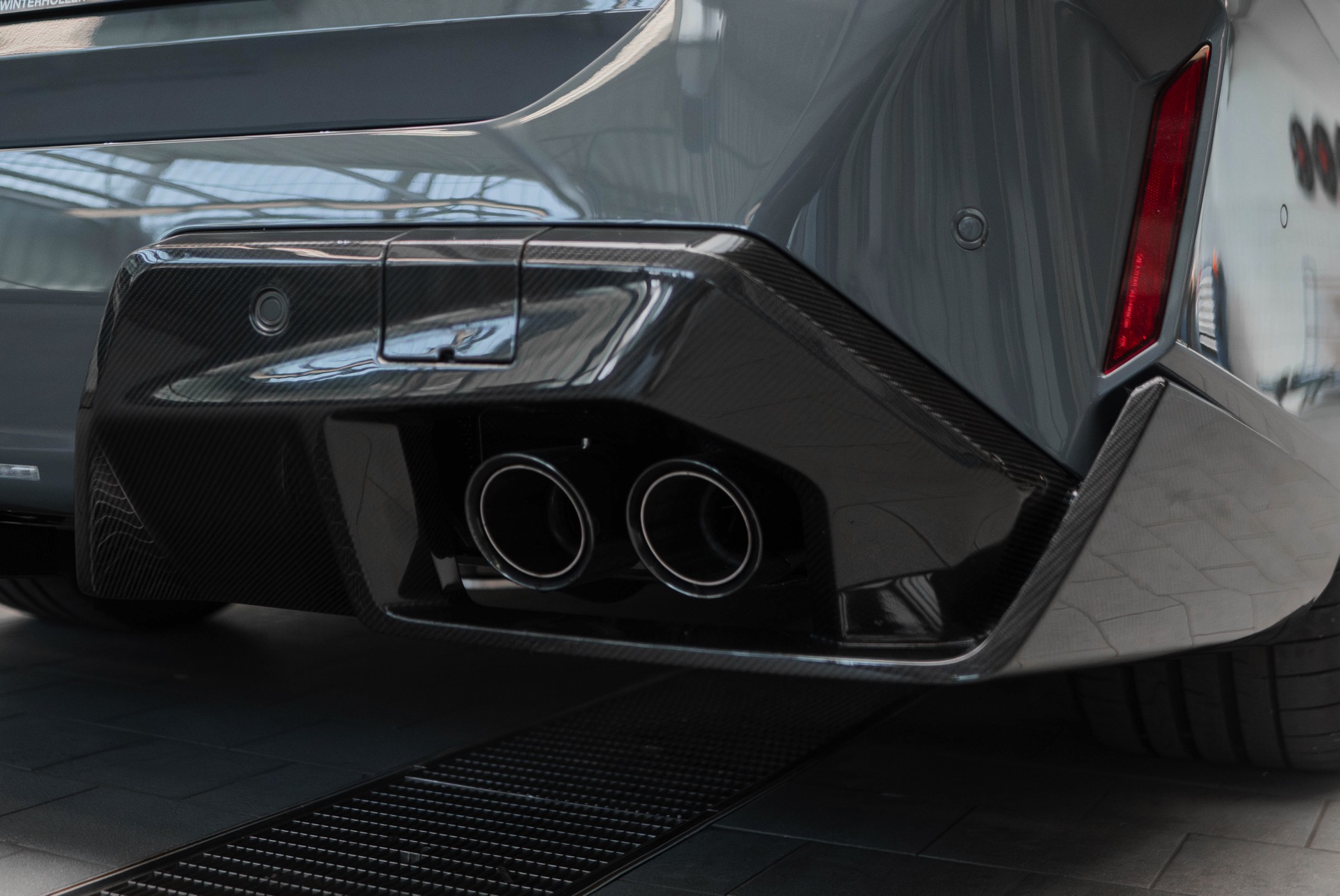 Weil M Performance Parts wie der Carbon-Frontaufsatz für eine reduzierte Bodenfreiheit sorgen, ergeben sich neben einer schärferen Optik und kleinere Einschränkungen im Alltag. So empfiehlt es sich, den Parkassistent bei Parklücken mit hohen Bordsteinkanten nicht länger zu verwenden, weil es ansonsten zu Beschädigungen kommen kann. Am Heck schränkt der zweiteilige Carbon-Diffusor den ‘Sichtbereich’ des Sensors zum Öffnen und Schließen der Heckklappe per Fußbewegung ein, weshalb die entsprechende Geste nur noch direkt in der Mitte der Heckschürze funktioniert.