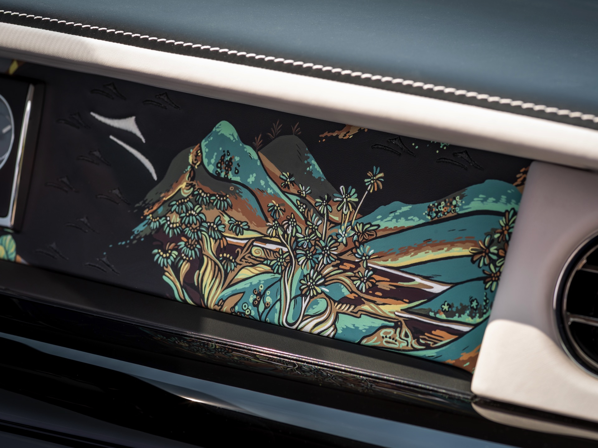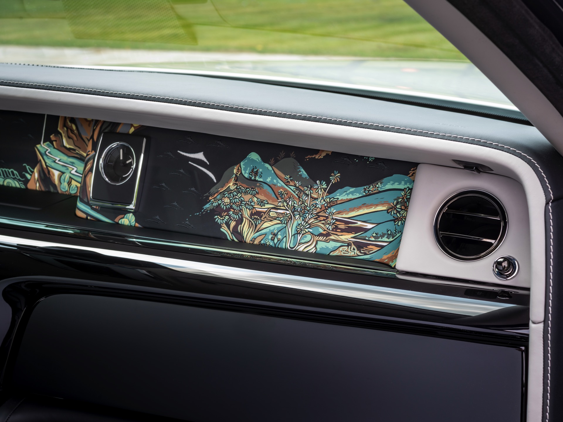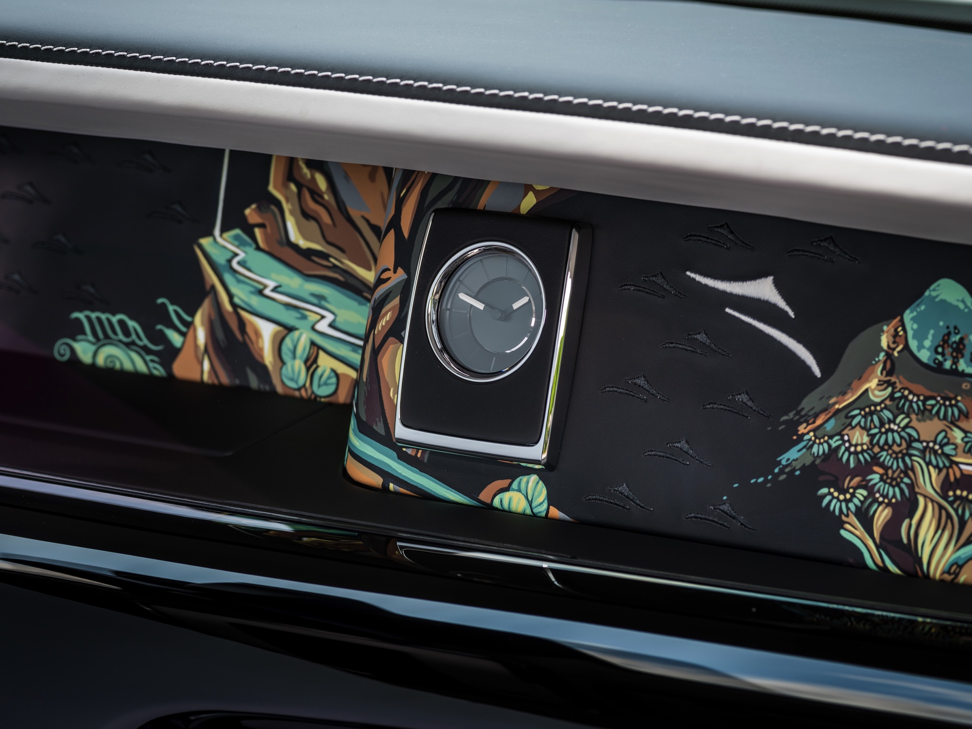 Alle drei Fahrzeuge kommen mit einem auf das Exterieur abgestimmten Innenraum, der die kräftigen Farben aufgreift. Der Bezug zur namensgebenden ‘Chinese Mural Art’, also der chinesischen Wandmalerei, wird an Bord des Rolls-Royce Phantom besonders deutlich: Auf den Interieurleisten finden sich handgemalte Motive, die sich an den typischen Stil und die Farben der Malerei in den Dunhuang Mogao-Höhlen anlehnen. Die Malerei in den Höhlen entlang eines Teils der historischen Seidenstraße ist über 1.000 Jahre alt und inspiriert chinesische Künstler bis heute.
