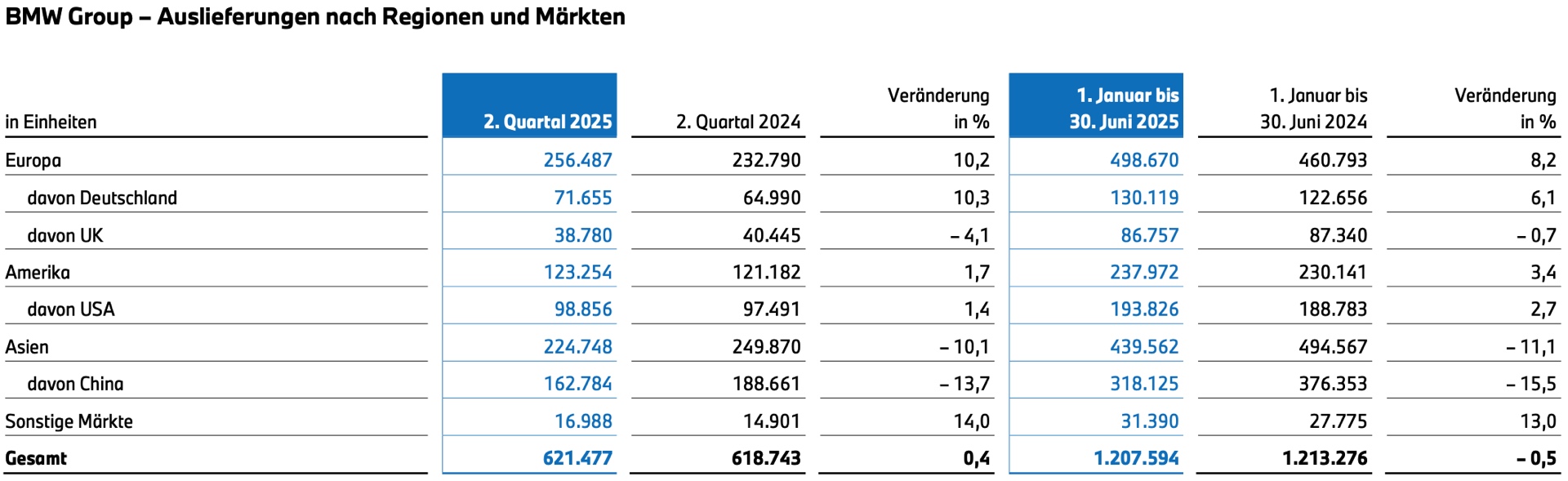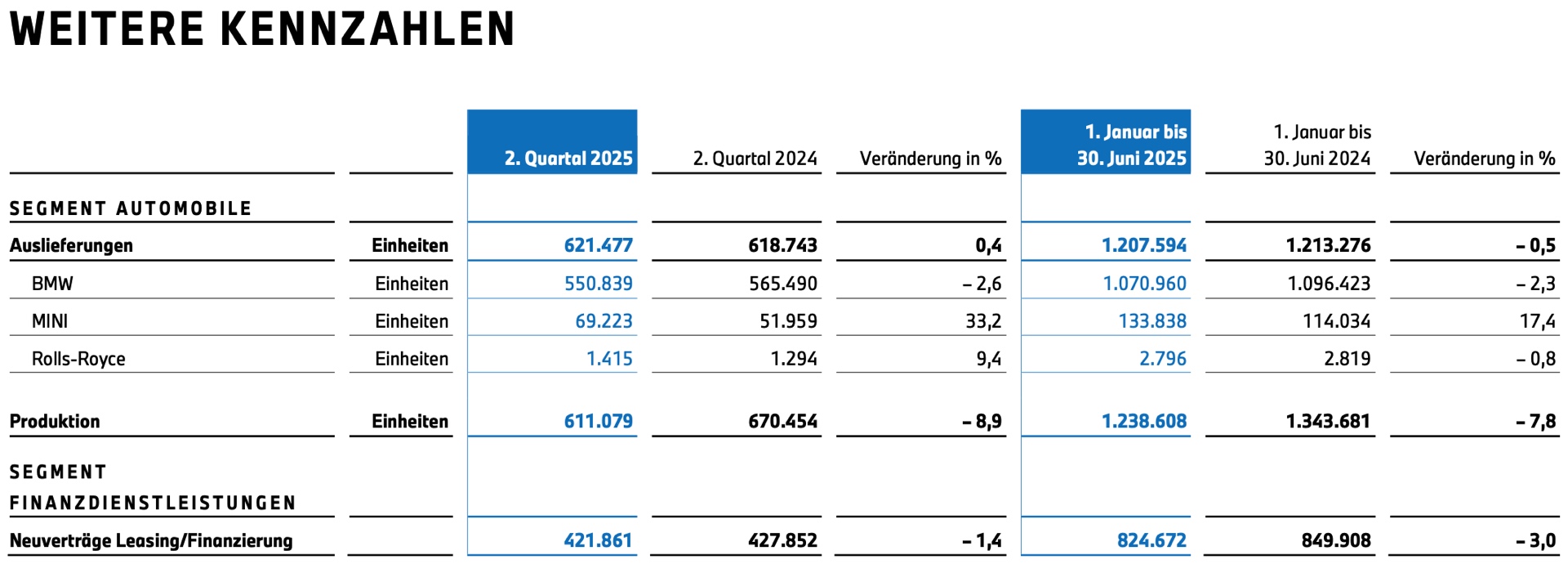 Grundlage für das relativ gute Ergebnis ist der weiterhin stabile Absatz: Allen Herausforderungen zum Trotz blieben die weltweiten Verkaufszahlen der BMW Group praktisch auf dem Niveau des Vorjahres. Zusammen kommen die Marken BMW, MINI und Rolls-Royce auf einen Absatz von 1.207.594 Einheiten, das entspricht einem Minus von lediglich 0,5 Prozent. BMW selbst spricht heute nicht nur von einem robusten Geschäftsmodell und einer resilienten Performance, sondern bleibt auch optimistisch für die zweite Jahreshälfte: Die ursprüngliche Jahresprognose wird nicht nach unten korrigiert, auch wenn die aktuellen Zoll-Verhandlungen und weitere Faktoren für das eine oder andere Fragezeichen sorgen. "