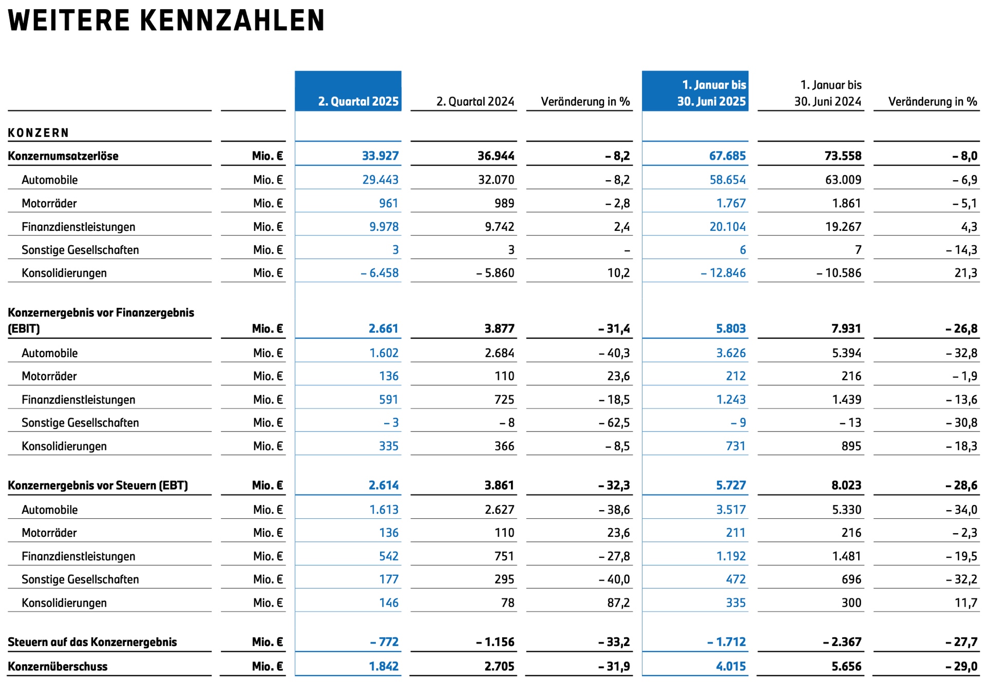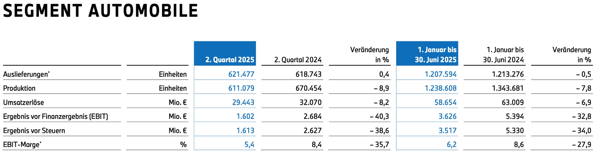 Walter Mertl (Finanzvorstand der BMW AG): “Auch trotz der Zollbelastungen bleibt das Geschäftsmodell der BMW Group intakt – unsere gefragten Premiumautomobile, unsere weltweite Wettbewerbsstärke und unsere hohe Resilienz bilden ein tragfähiges Fundament. Unser Footprint in den USA hilft uns dabei, die Zollauswirkungen zu begrenzen. Dank der präzisen finanziellen Steuerung auf der Basis kalkulierter Prognoseaussagen halten wir zum Halbjahr strikt Kurs auf unsere Jahresziele. Eine höhere Effizienz und optimierte Kostenstrukturen tragen auch dazu bei, unsere finanziellen Ziele zu erreichen.”