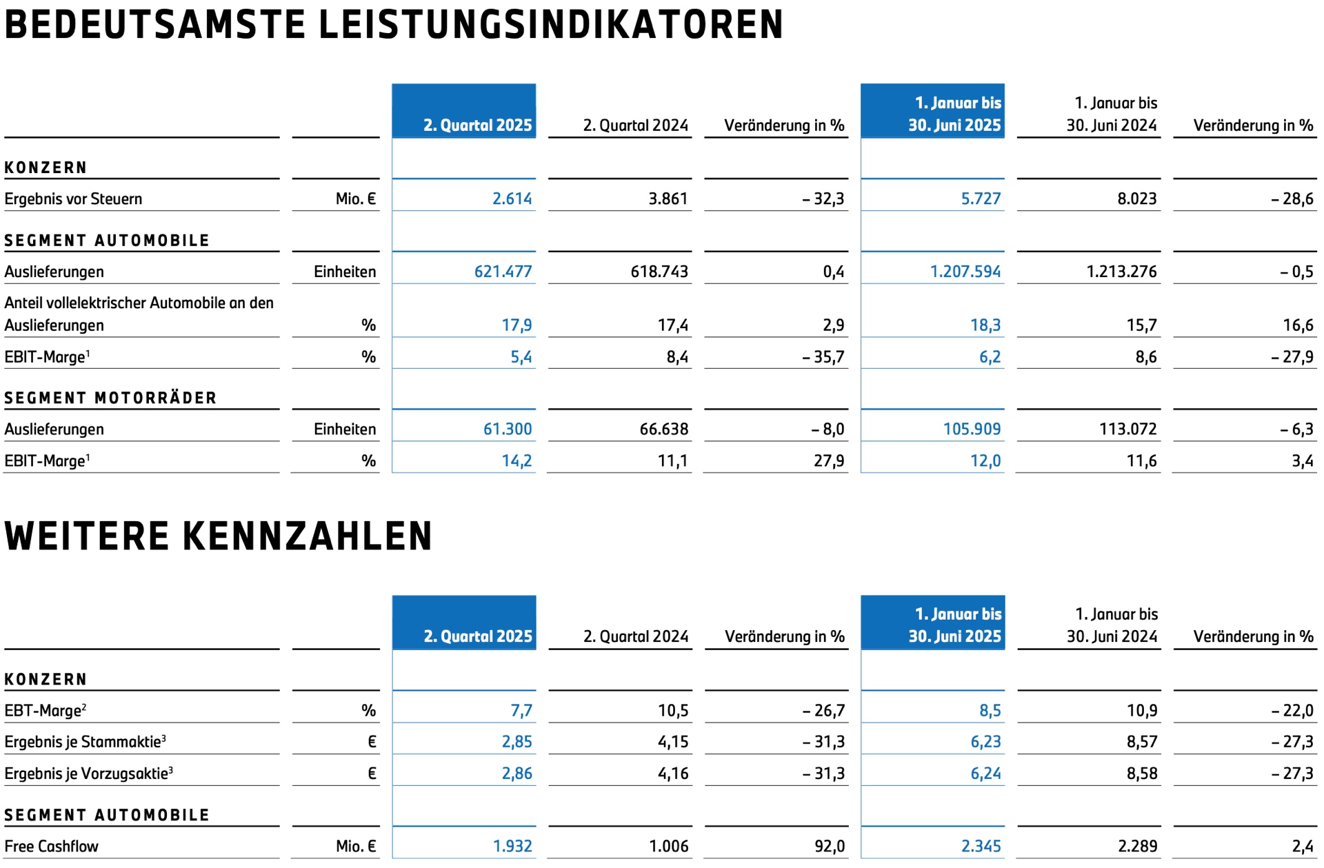 Oliver Zipse (Vorstandsvorsitzender der BMW AG): “Unsere Konzernleistung im ersten Halbjahr 2025 unterstreicht einmal mehr, wie robust unser Geschäftsmodell ist. Unser Erfolg basiert heute wie auch in Zukunft auf drei starken Säulen: unserem globalen Footprint, unserer Innovationsstärke und unserem technologieneutralen Ansatz mit hochattraktiven Produkten.