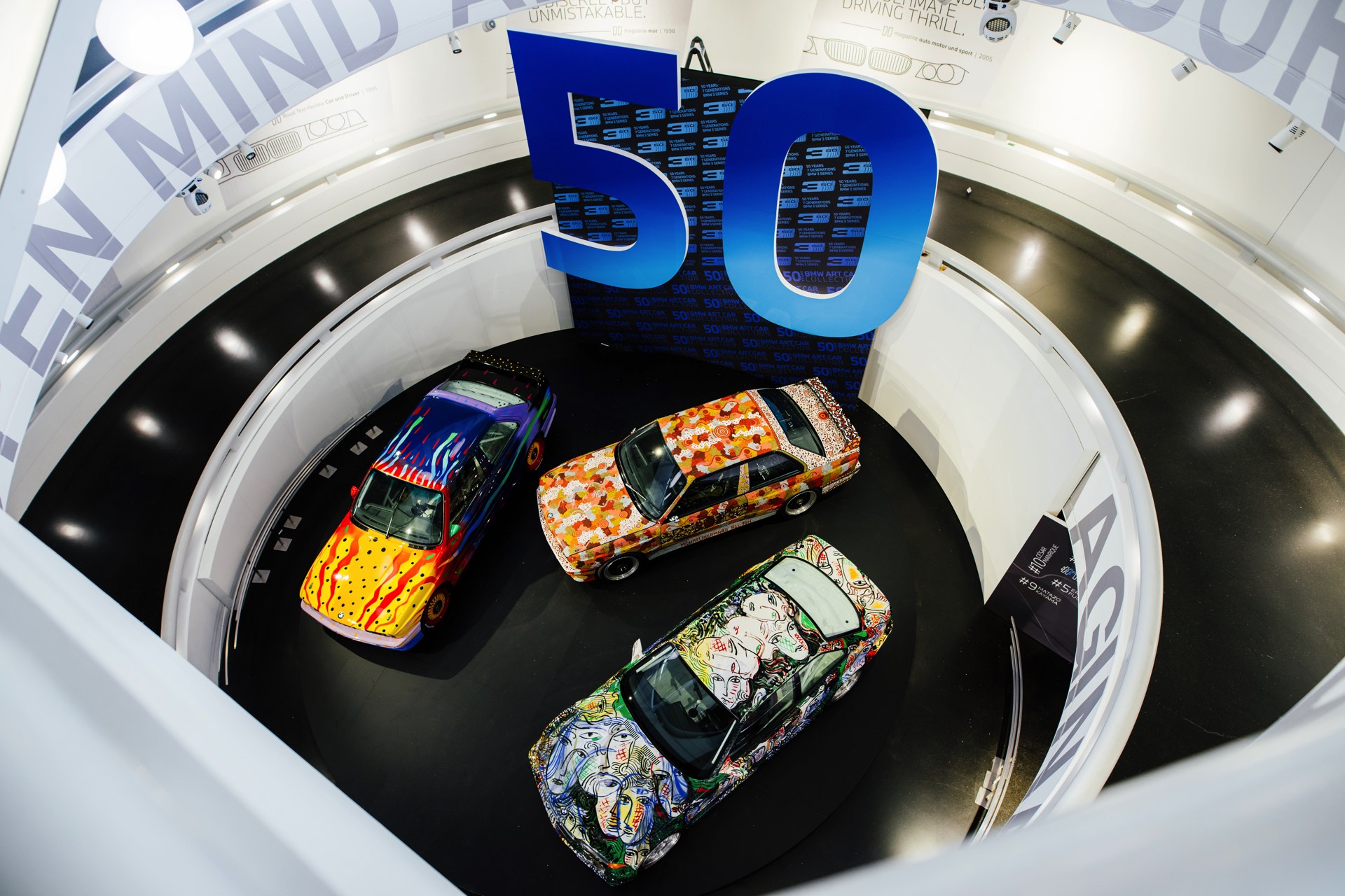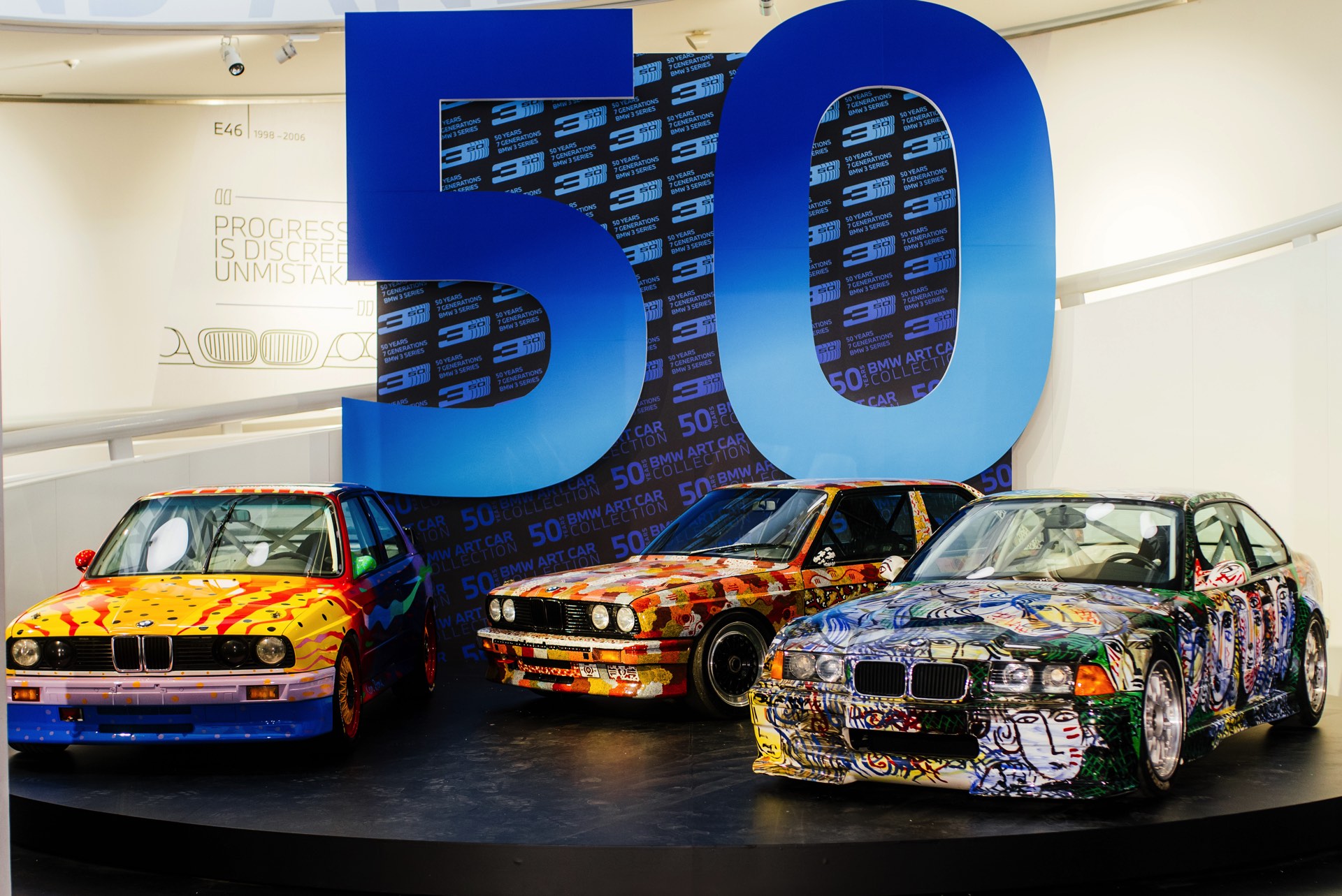 Auf der anderen Straßenseite wartet im BMW Museum München noch bis 1. Februar 2026 eine Sonderausstellung, die sowohl 50 Jahre 3er als auch 50 Jahre Art Cars feiert. Für das doppelte Jubiläum sind der BMW M3 GTR (E36) von Sandro Chia (Art Car #13), der BMW M3 (Gruppe A) von Michael Jagamara Nelson (Art Car #07) und der BMW M3 (E30 Gruppe A) von Ken Done (Art #08) vor Ort und zeigen, wie gut kräftige Farben mit den Formen der 3er-Reihe harmonieren.
