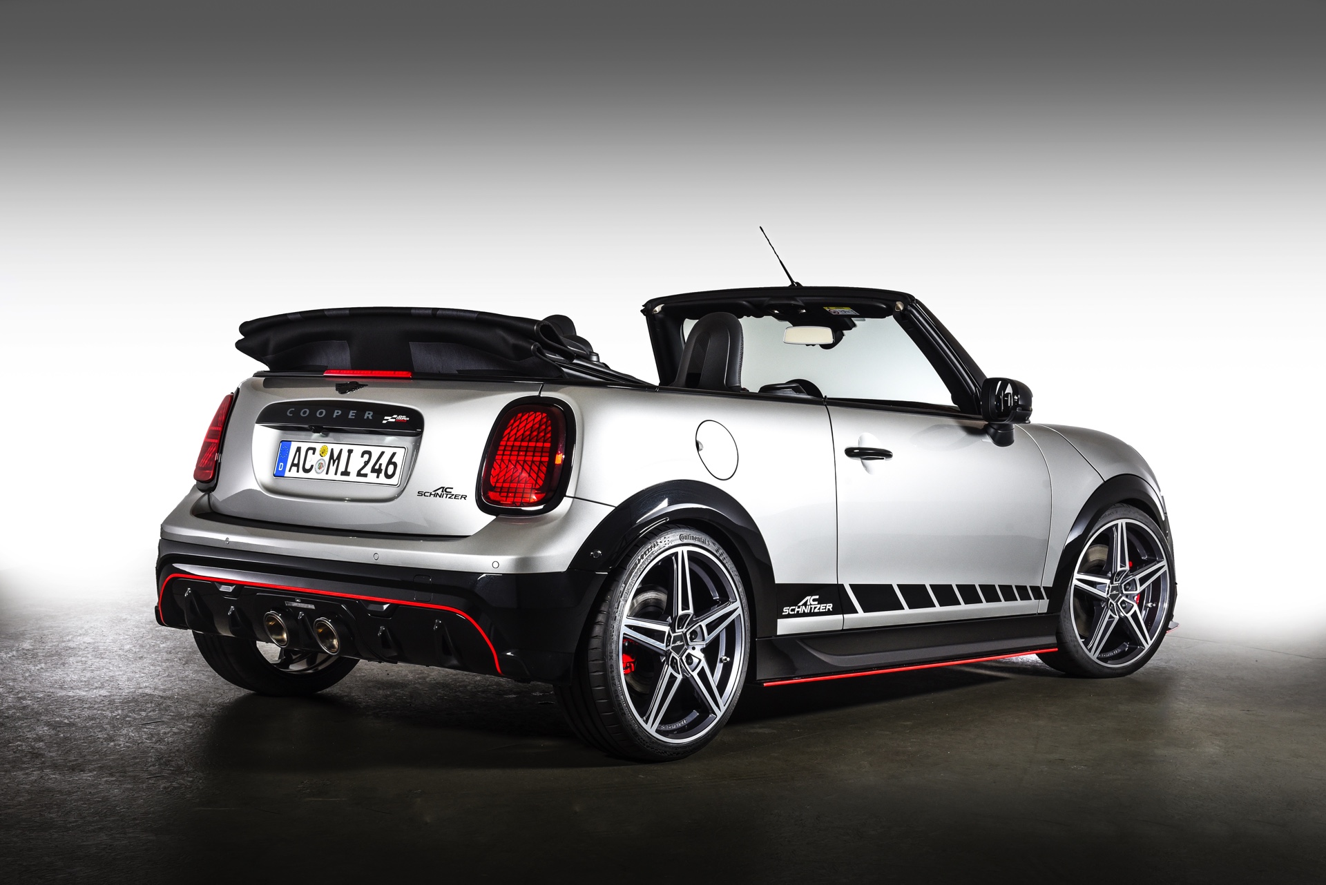 Das kleinste Cabrio im Portfolio der BMW Group ist für viele seiner Kunden das Größte: Gerade als MINI John Cooper Works hat der F67 einen ganz speziellen Reiz, der sowohl im urbanen Raum als auch auf Landstraßen für breites Grinsen sorgt. AC Schnitzer zeigt nun noch eine ganze Reihe von Tuning-Teilen für das neue MINI Cabrio und entwickelt damit sowohl die Optik als auch das Fahrspaß-Potenzial weiter. Noch im Ungefähren bleibt dabei eine Leistungssteigerung für den 2,0 Liter großen Turbo-Vierzylinder von BMW: Zwar soll der schon serienmäßig 231 PS starke B48 in Aachen ein Power-Upgrade erhalten, zum neuen Leistungs- und Performance-Niveau will sich AC Schnitzer aber bisher nicht konkret äußern.