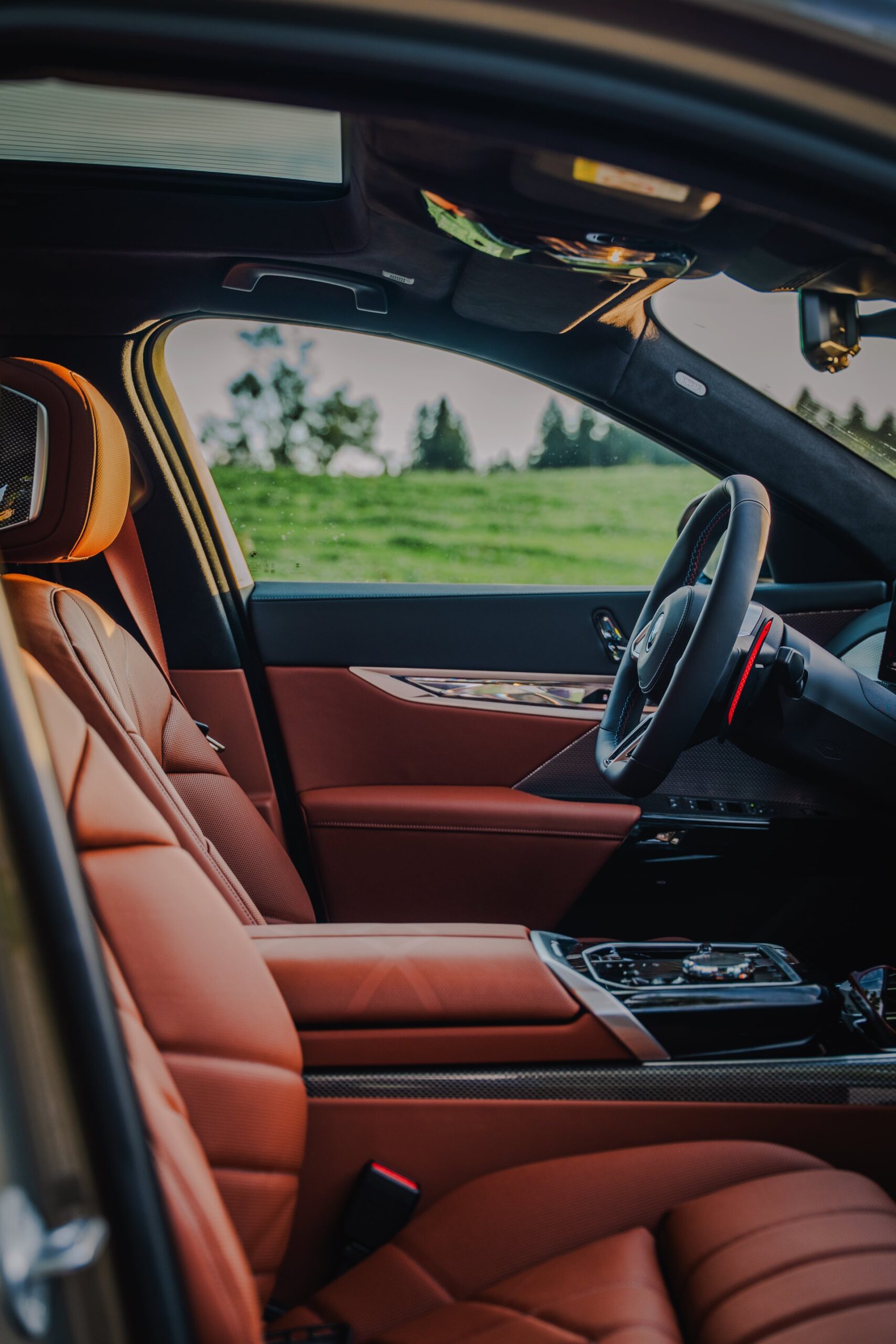 Auf Bicolor-Optik setzen auch die Felgen, im Fall der 21 Zoll großen Leichtmetallräder im Design Sternspeiche 908 M ist die Zweifarbigkeit allerdings weit weniger exklusiv als bei der Karosserie. Im Innenraum vertraut der gezeigte 7er mit der BMW Individual Lederausstattung Merino im Farbton Tartufo ganz bewusst auf warme Farben.