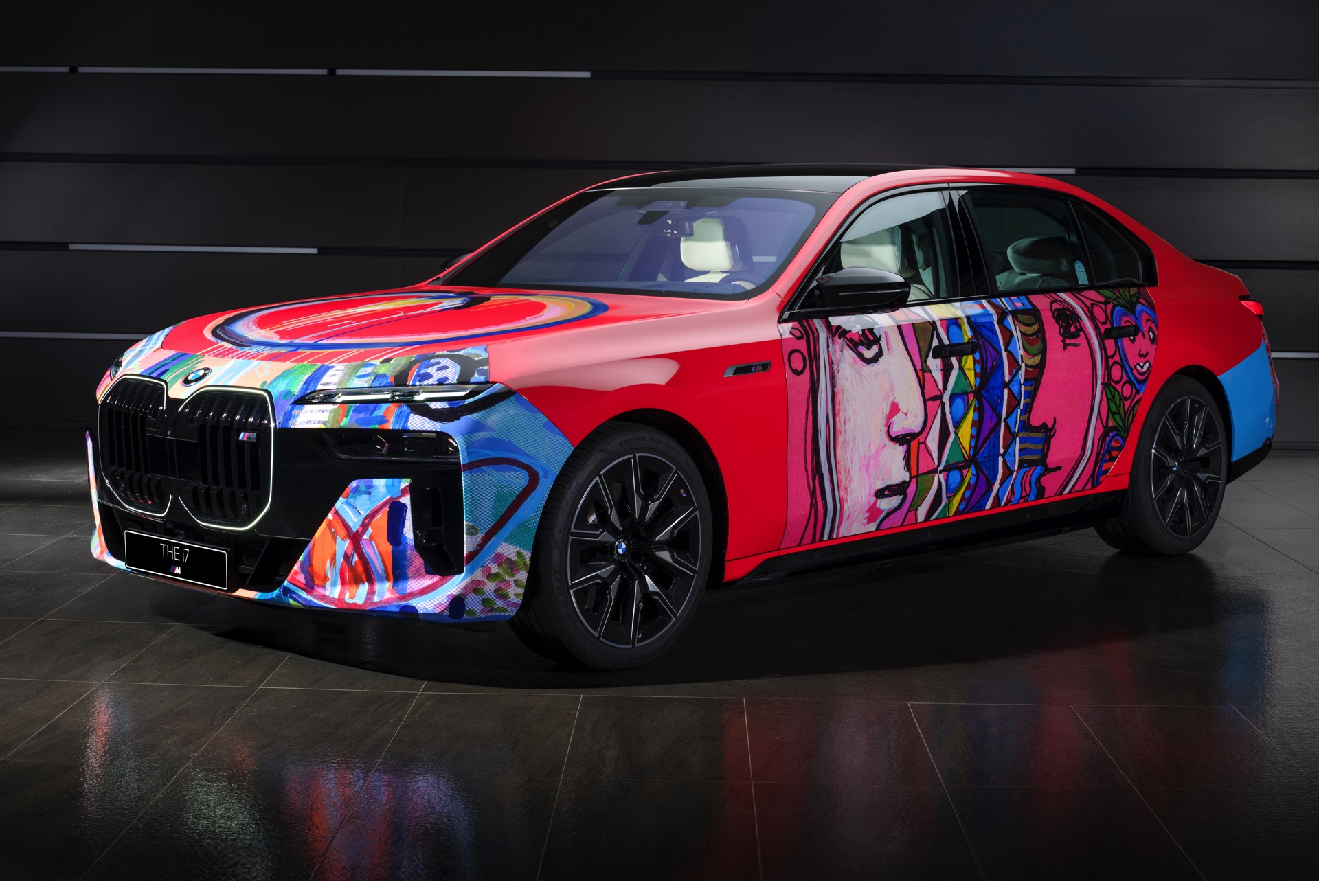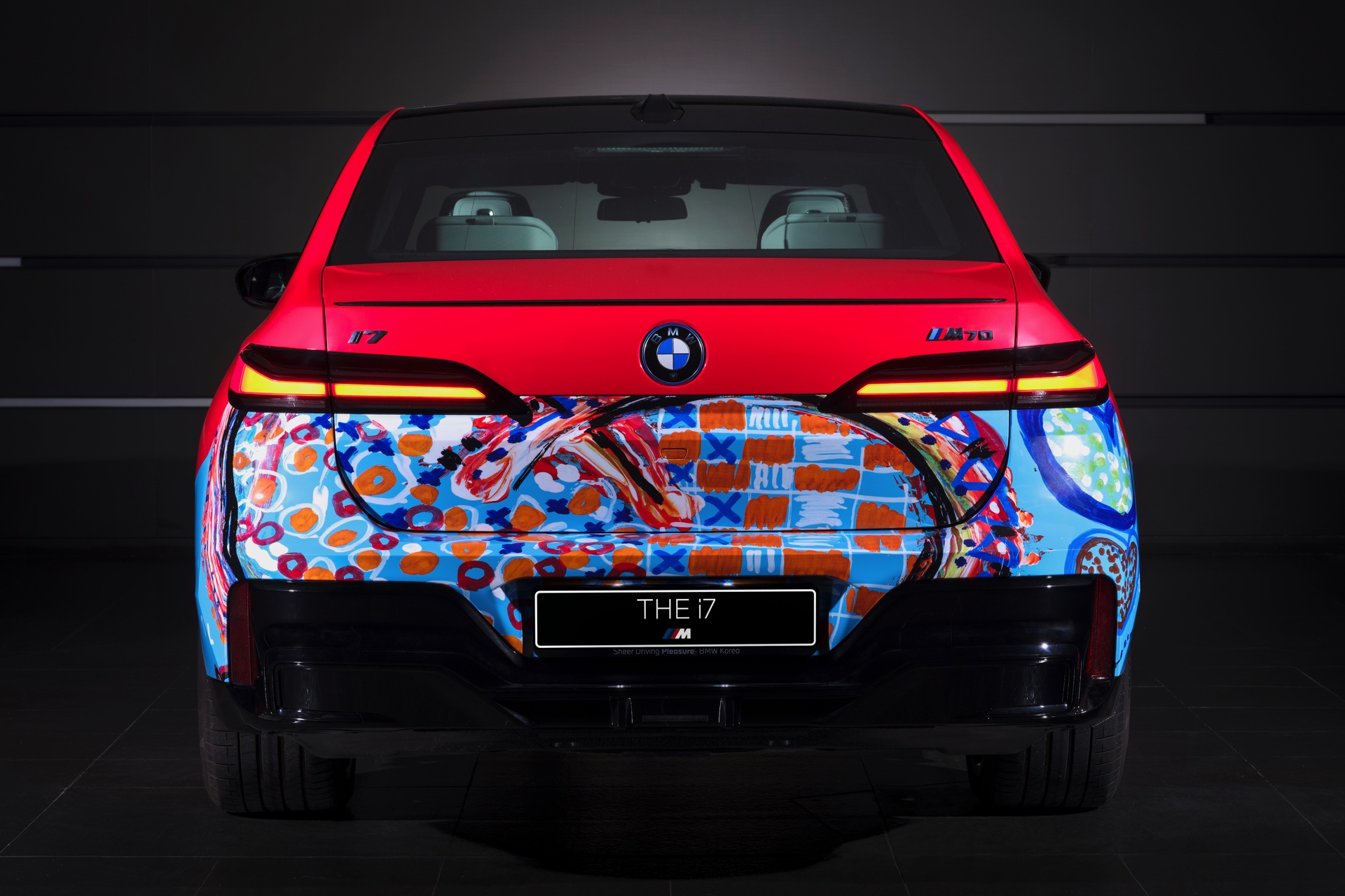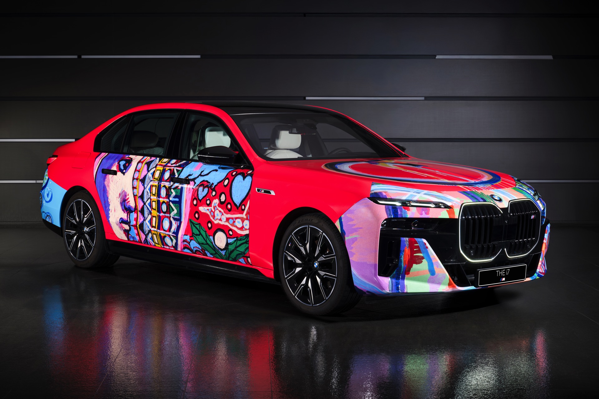 Der von Lee Kun-Yong im Stil eines Art Cars gestaltete 7er nutzt den BMW i7 M70 (G70) mit serienmäßigem M Sportpaket als Basis. Die hellrote Grundfarbe kombiniert der Künstler mit farbenfrohen Elementen, die Szenen des Autofahrens aus verschiedenen Blickwinkeln zeigen sollen. Im Mittelpunkt steht dabei der Mensch, der dank des Autos um die Welt reisen und mit anderen Menschen zusammenkommen kann.