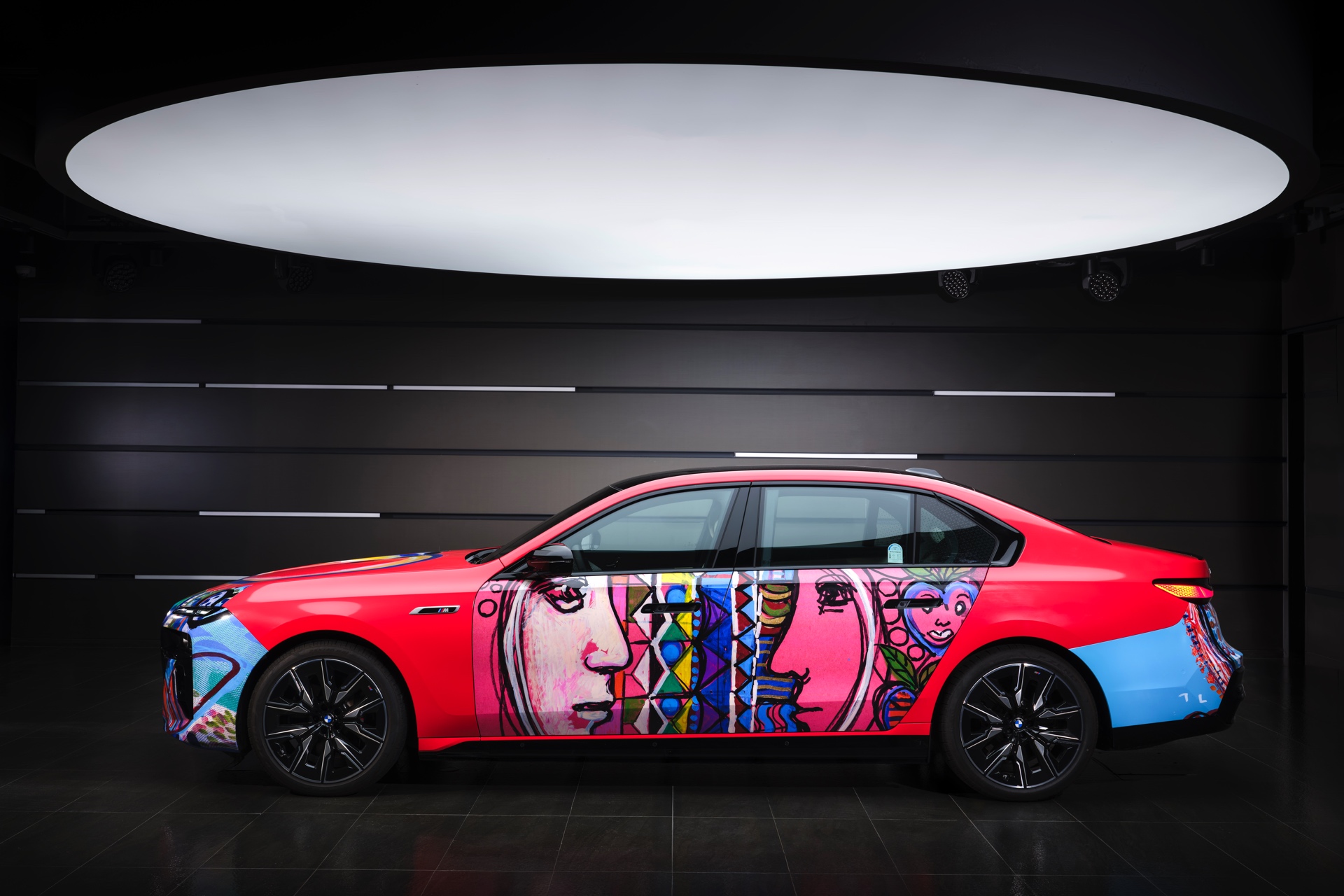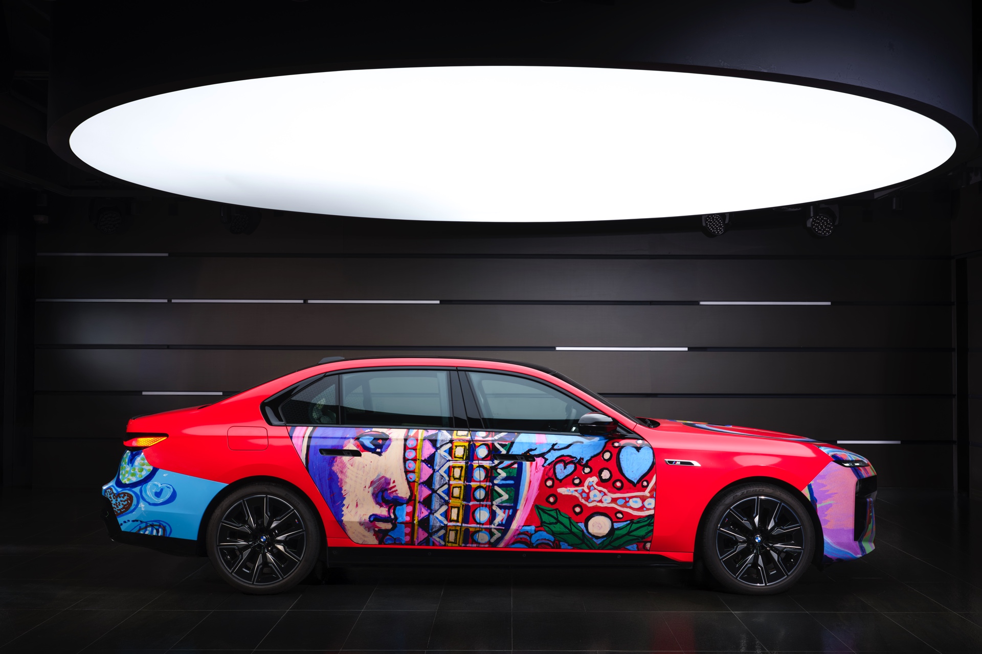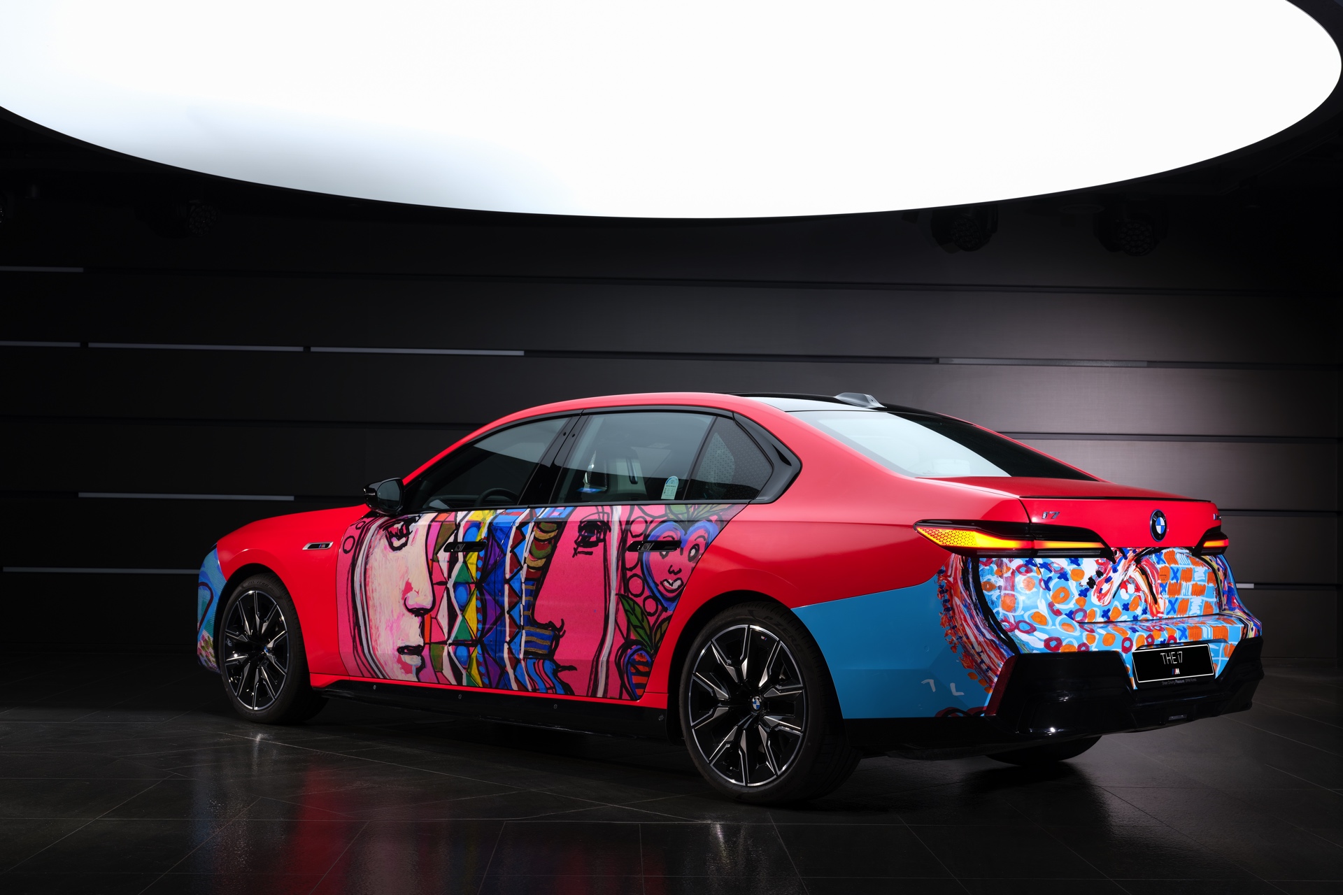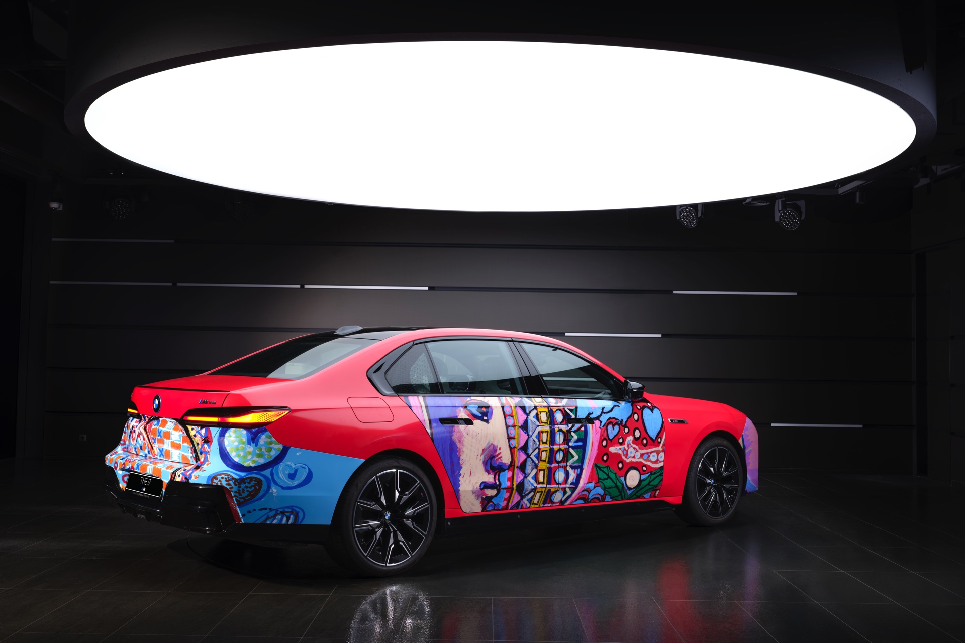 Der von Lee Kun-Yong im Stil eines Art Cars gestaltete 7er nutzt den BMW i7 M70 (G70) mit serienmäßigem M Sportpaket als Basis. Die hellrote Grundfarbe kombiniert der Künstler mit farbenfrohen Elementen, die Szenen des Autofahrens aus verschiedenen Blickwinkeln zeigen sollen. Im Mittelpunkt steht dabei der Mensch, der dank des Autos um die Welt reisen und mit anderen Menschen zusammenkommen kann.