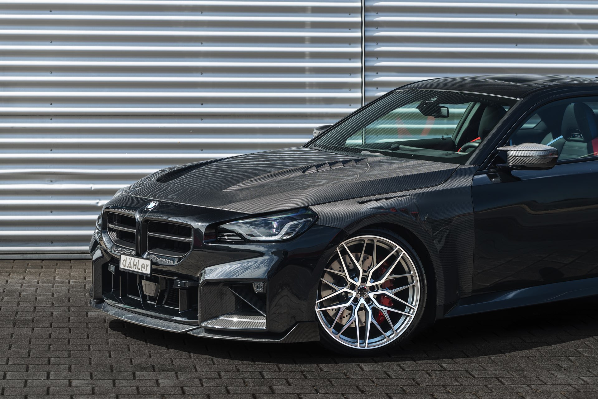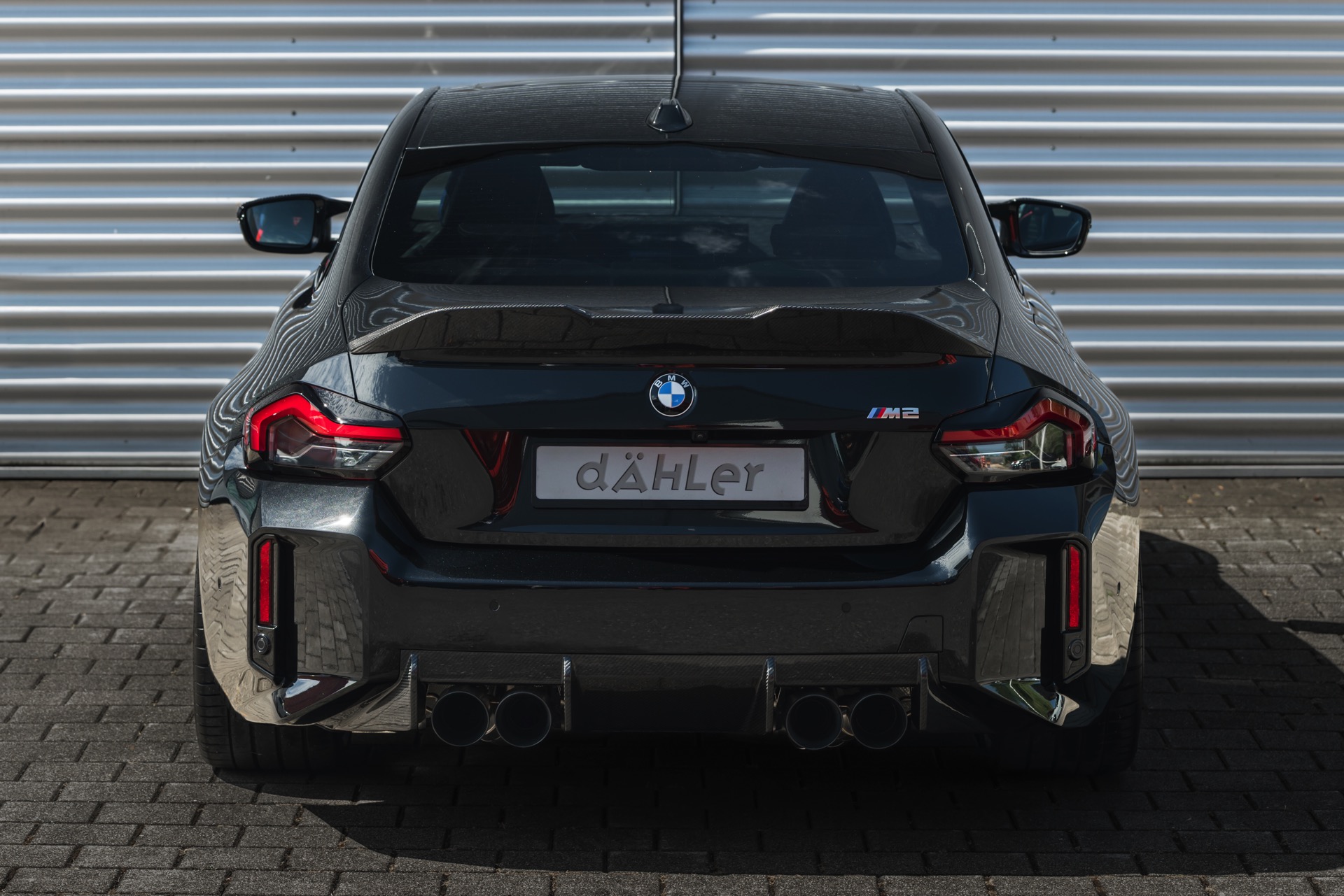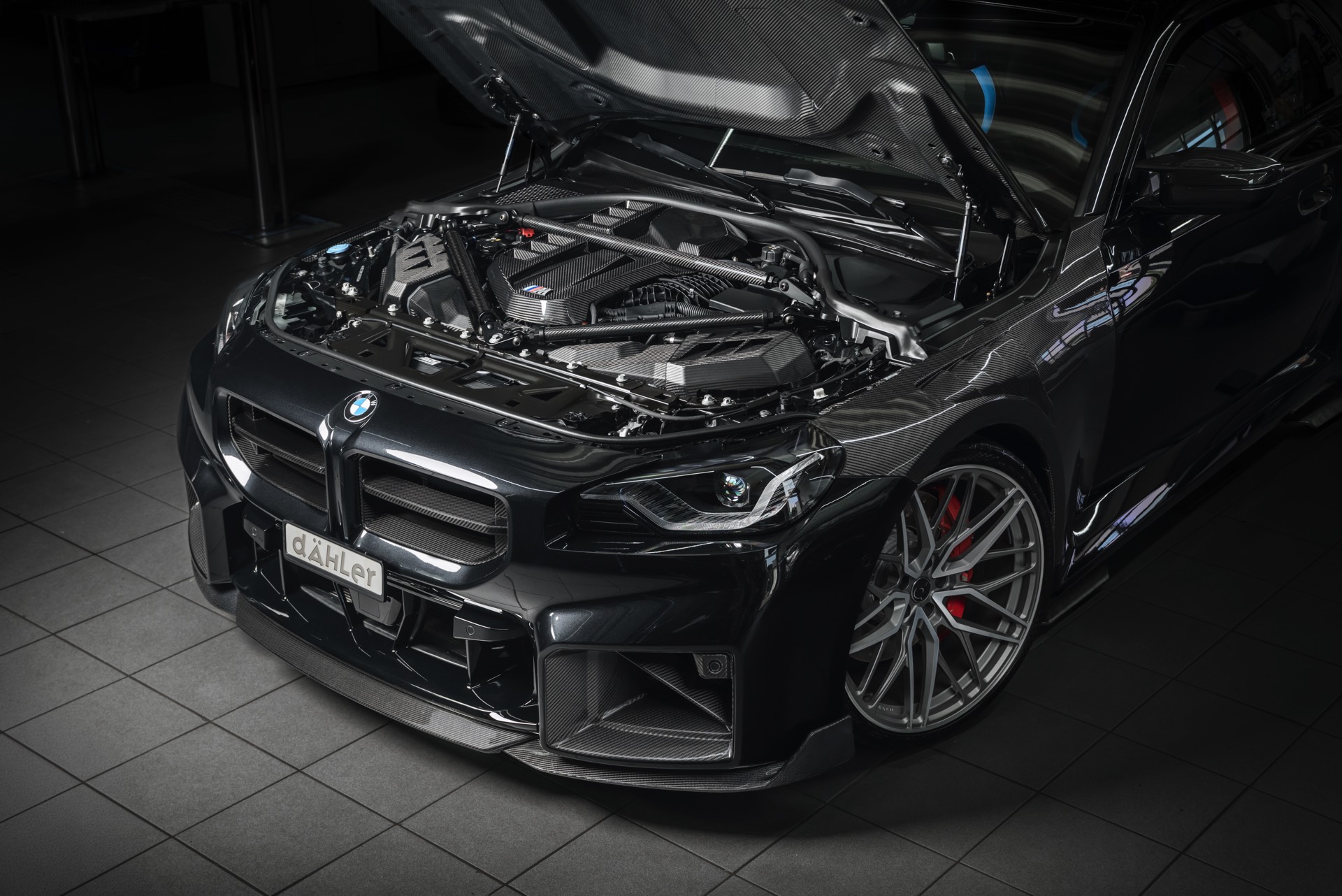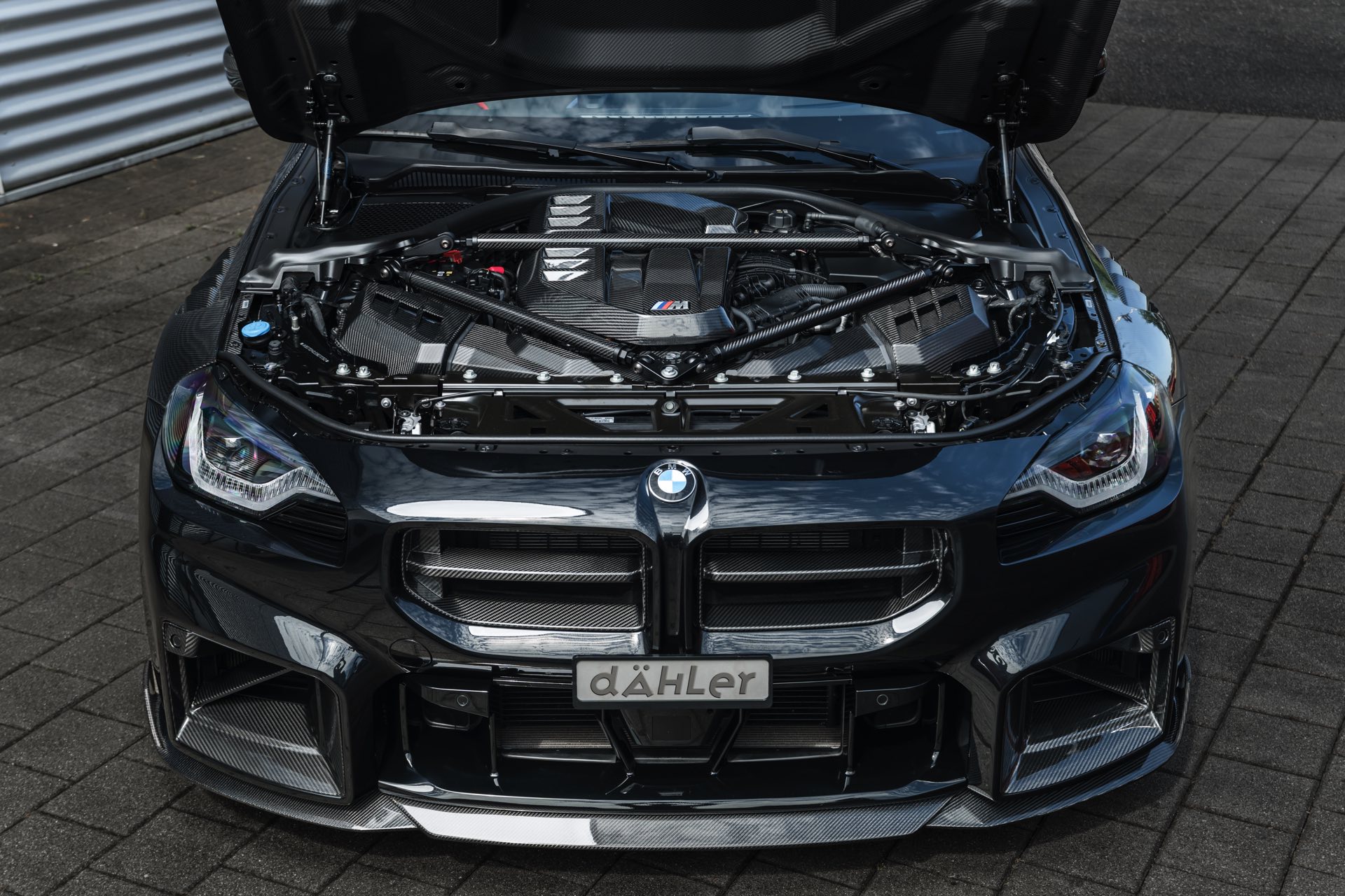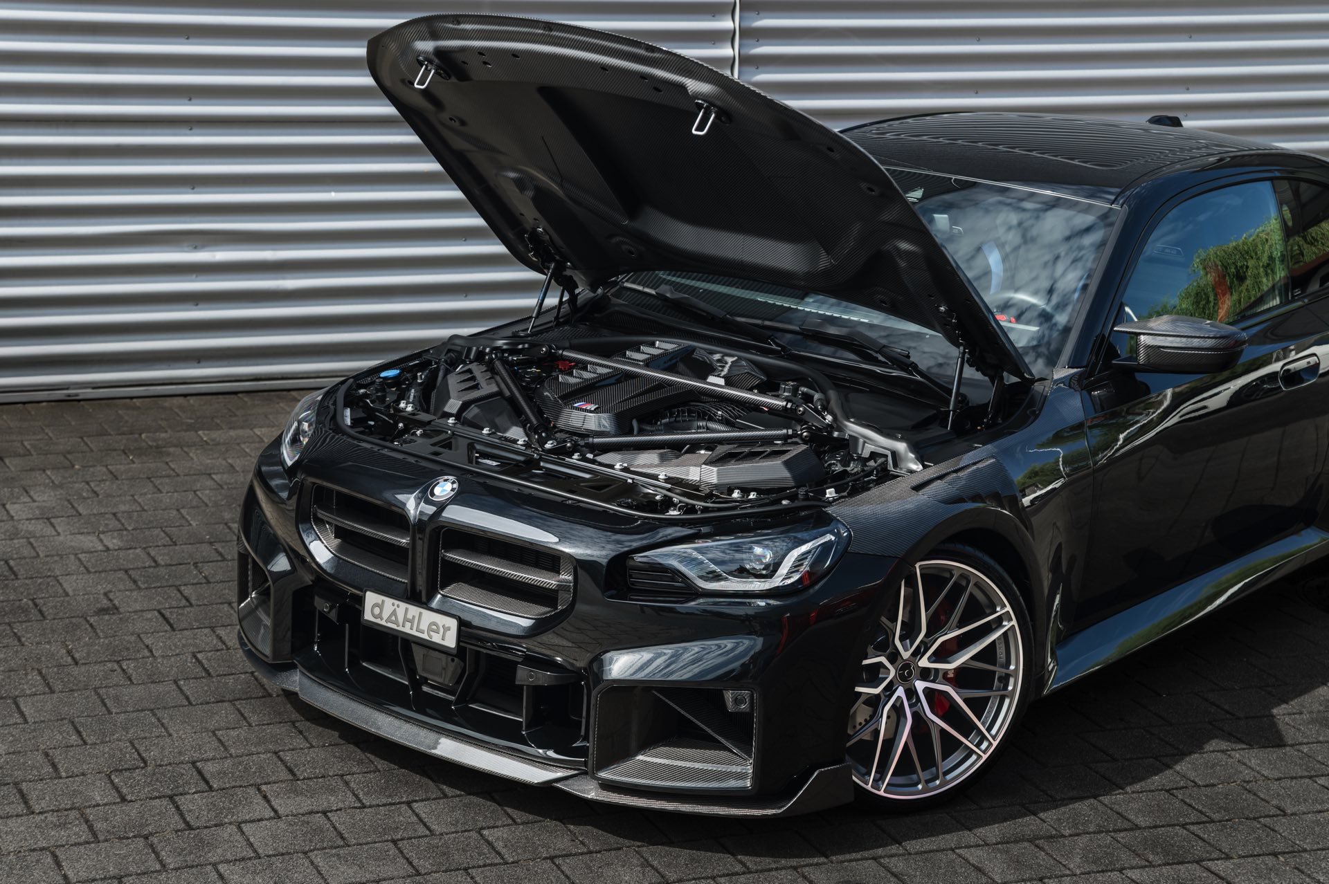 Wenn die Karosserie-Teile in Sicht-Carbon statt mit Lackierung in Wagenfarbe bestellt werden, bescheren sie dem BMW M2 (G87) echtes Rennsport-Flair. Passend dazu fällt auch die Leistung des Biturbo-Reihensechszylinders S58 aus, denn dessen serienmäßige 460 oder 480 PS rücken mit dem Stage 2-Tuning in weite Ferne: 638 PS und 780 Newtonmeter Drehmoment verspricht Dähler und stellt damit auch das 530 PS starke Topmodell M2 CS klar in den Schatten.