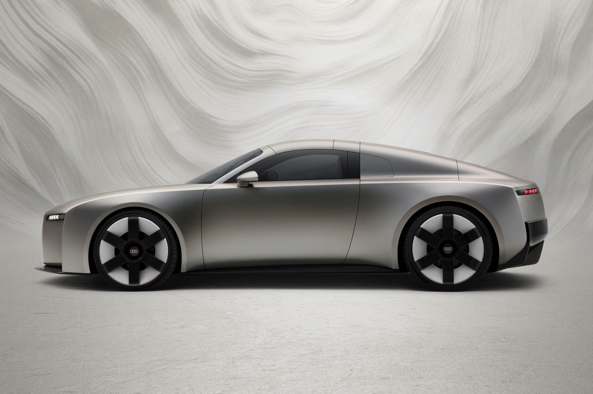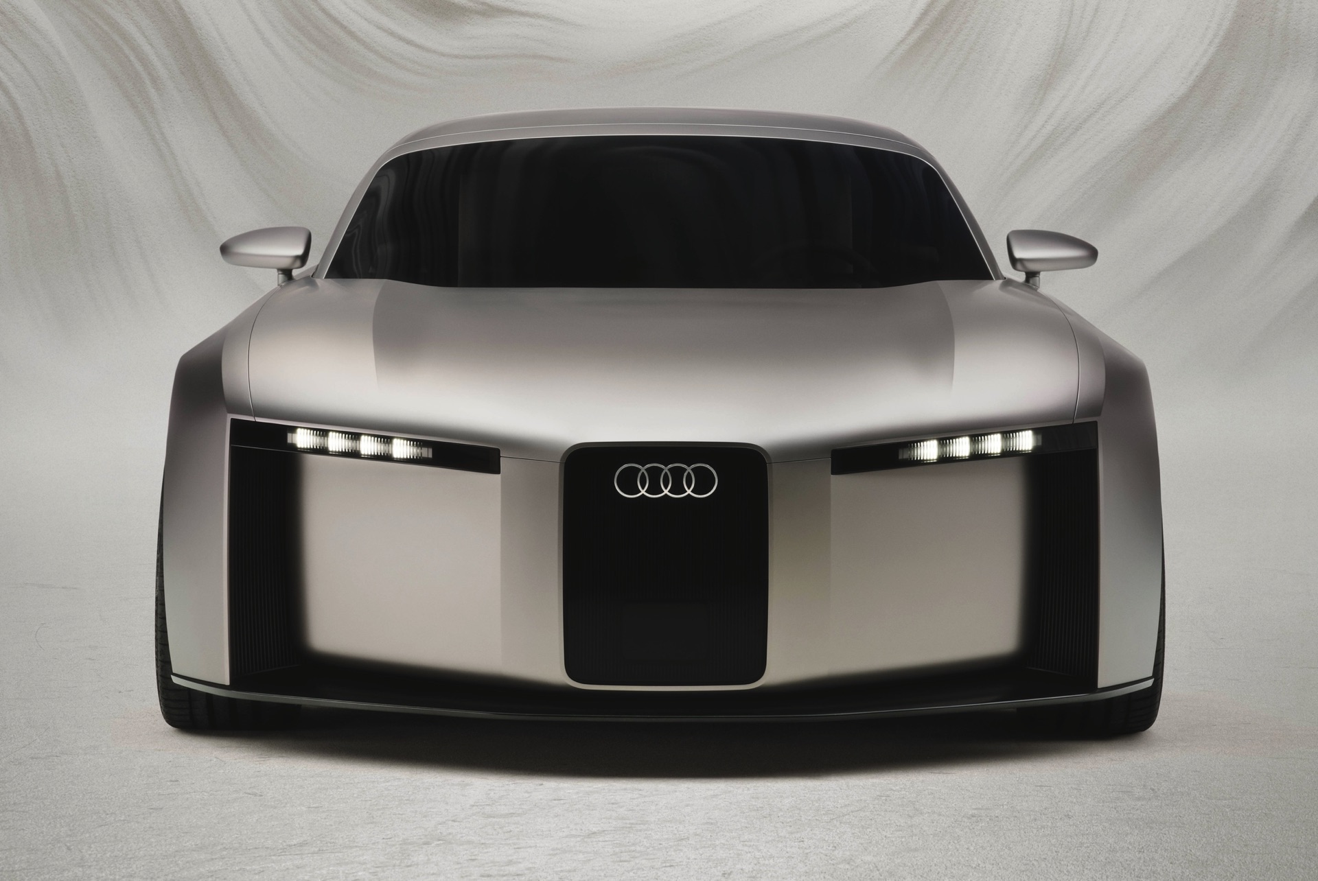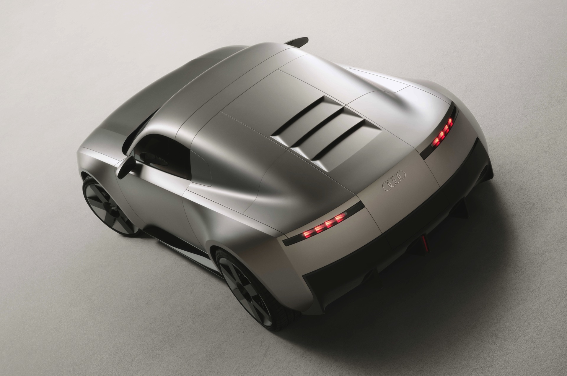 Flankiert wird der vertikale Grill von schmalen Scheinwerfern und monolithischen Flächen, die in Wagenfarbe lackiert sind. Audi selbst spricht von ‘athletischem Minimalismus’ und zeigt diesen auch aus allen anderen Perspektiven: Der Concept C verzichtet in beinahe radikaler Konsequenz auf jede unnötige Linie im Blech und wirkt so wie ein aus dem Vollen gefrästes Kunstwerk. Nicht ohne Grund sprechen die Verantwortlichen von “einer neuen Ära der Klarheit”, die sie mit dem Elektro-Sportwagen einläuten wollen. "