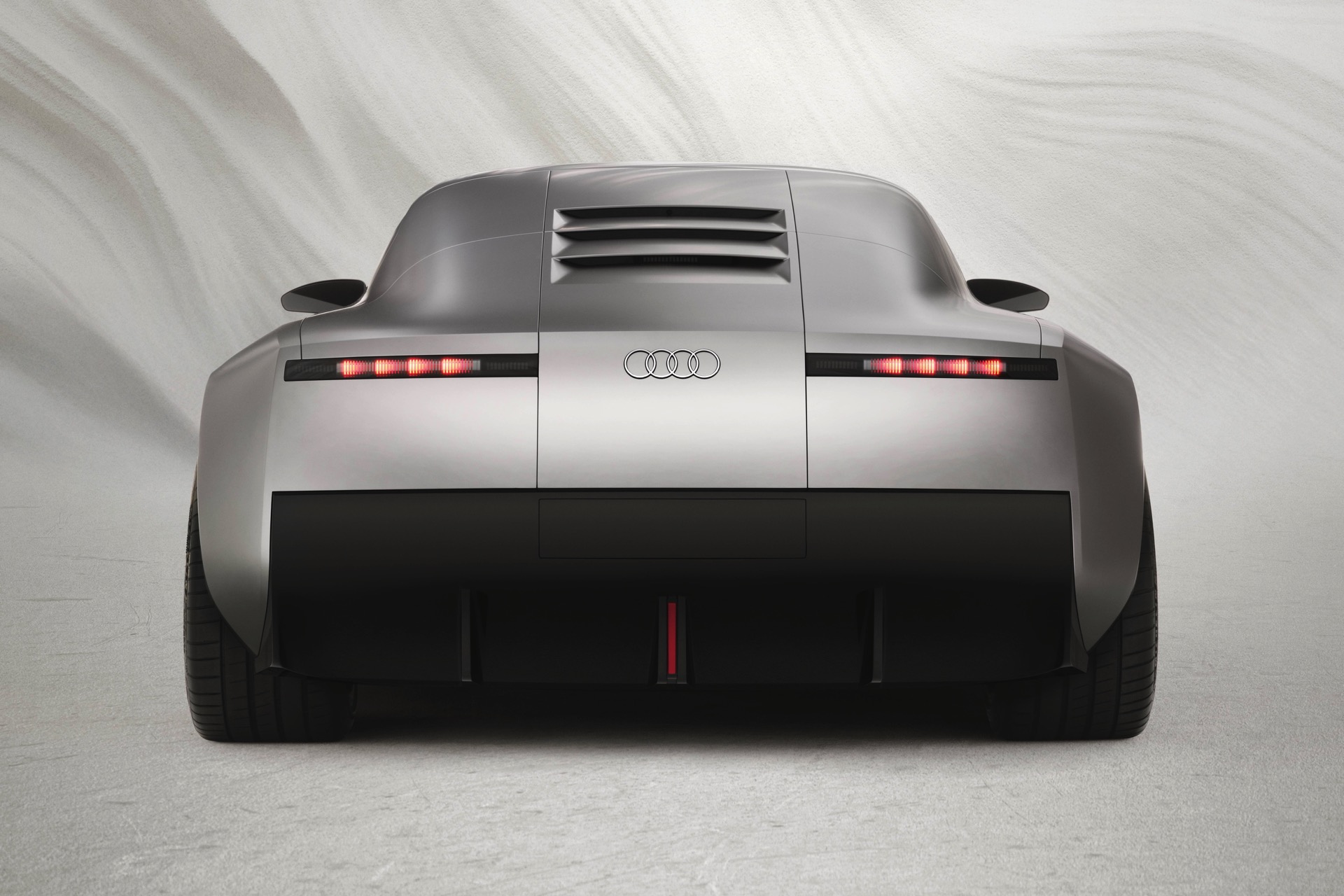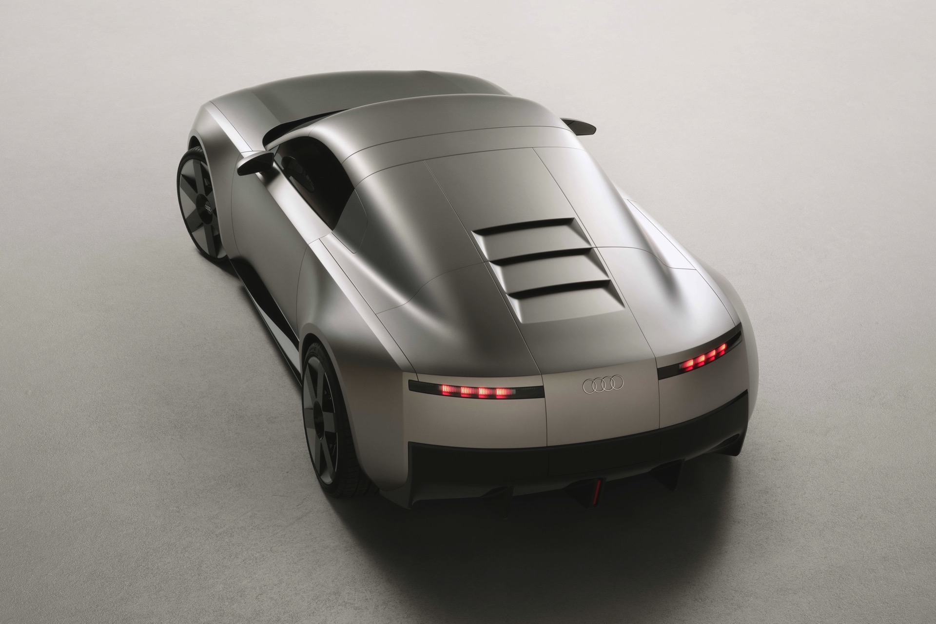 Am Heck kommt der Audi Concept C mit zwei flachen Rückleuchten, abgesehen davon dominieren auch hier glatte Oberflächen. Für den Blick nach hinten bleiben den Insassen nur drei schmale Entlüftungsschlitze, denn über eine klassische Heckscheibe verfügt die TT-Vision nicht – um so erstaunlicher, dass die Studie bei allem Futurismus ganz konventionelle Außenspiegel trägt und hier kein Kamerasystem nutzt, wie es Audi bei manchen Modellen längst in Serie anbietet.