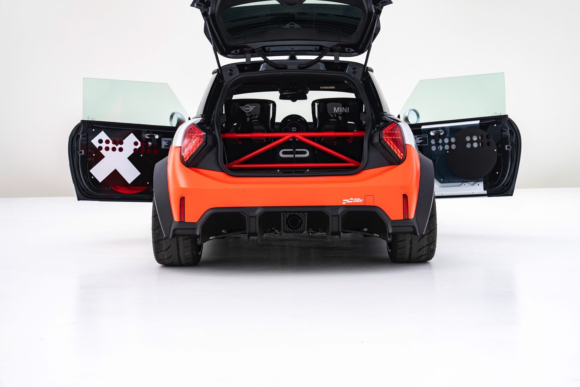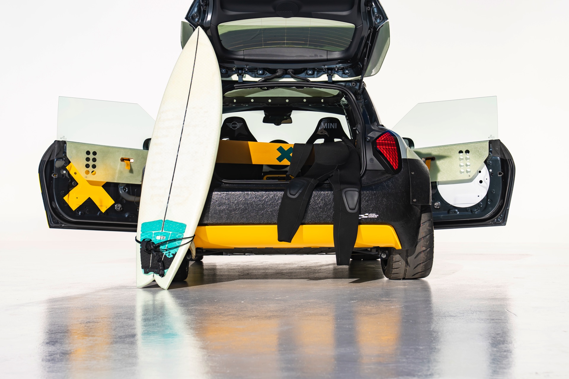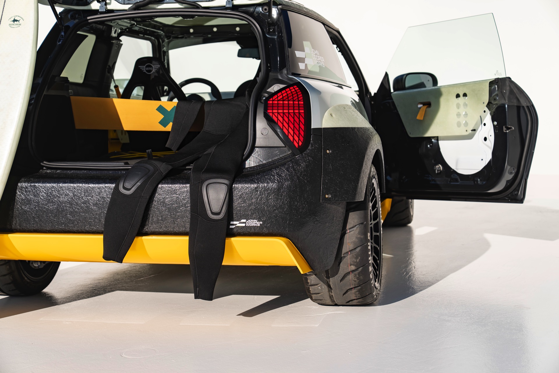 Mehr Details als die Fotos mit beiden Fahrzeugen liefern die Einzel-Galerien zum elektrischen MINI JCW J01 ‘The Skeg’: