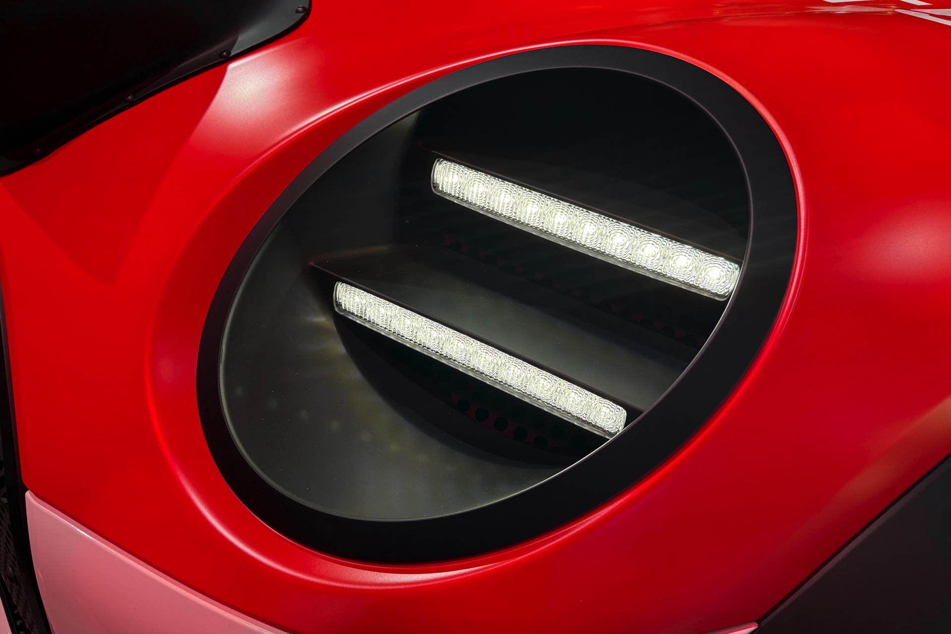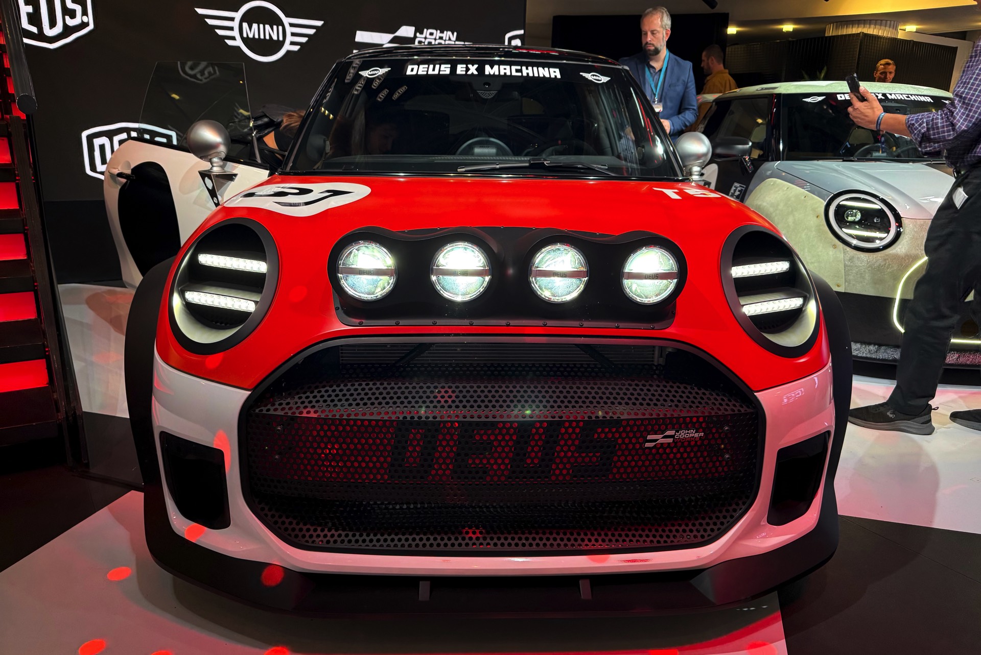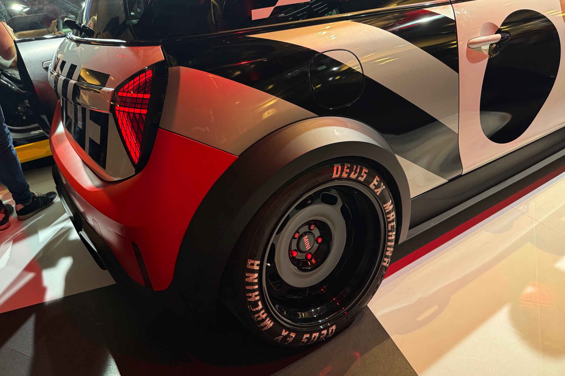 Für Rennsport-Fans ist vor allem der in Rot, Weiß und Schwarz gehaltene ‘The Machina’ von Interesse: Basierend auf dem aktuellen MINI John Cooper Works (F66) haben die Designer von MINI und DEUS ein Fahrzeug kreiert, das aus jeder Perspektive satte Performance verspricht und mit zahlreichen Details begeistert, die direkt Lust auf eine Ausfahrt machen. Zu den Highlights zählen die Scheinwerfer, die als funktionale Lufteinlässe ausgeführt sind: Nur zwei schmale LED-Streifen sorgen für den eigentlichen Hauptjob, rundherum sind die Scheinwerfer kreisrunde Lufteinlässe zur Kühlung von Motorraum und Bremsen. Möglich ist diese Lösung auch, weil ‘The Machina’ über vier Zusatz-Scheinwerfer im Rallye-Stil verfügt. "
