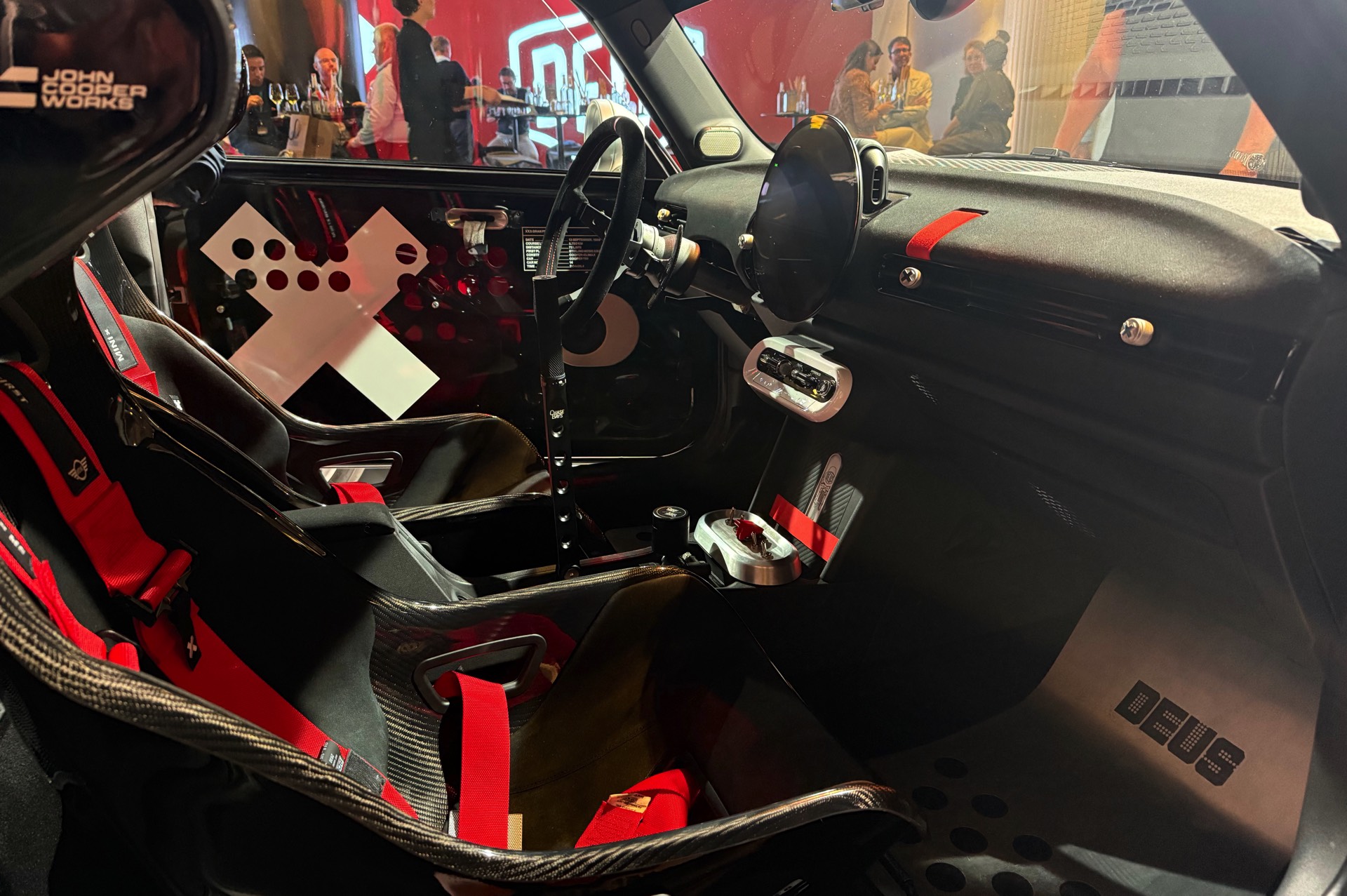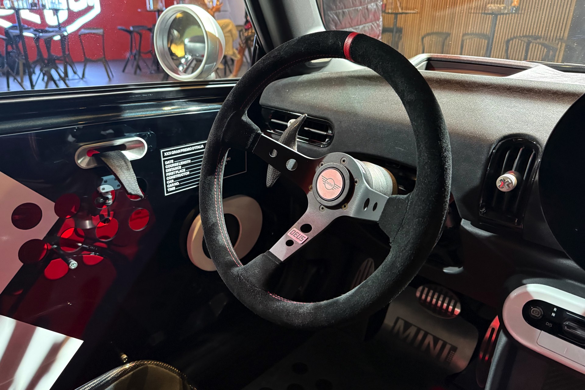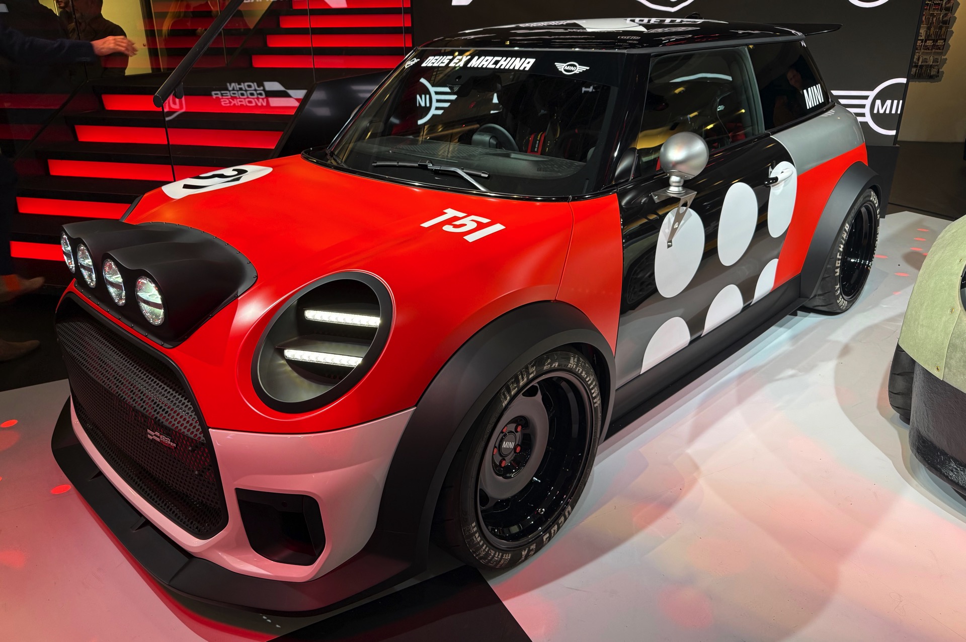 Für Rennsport-Fans ist vor allem der in Rot, Weiß und Schwarz gehaltene ‘The Machina’ von Interesse: Basierend auf dem aktuellen MINI John Cooper Works (F66) haben die Designer von MINI und DEUS ein Fahrzeug kreiert, das aus jeder Perspektive satte Performance verspricht und mit zahlreichen Details begeistert, die direkt Lust auf eine Ausfahrt machen. Zu den Highlights zählen die Scheinwerfer, die als funktionale Lufteinlässe ausgeführt sind: Nur zwei schmale LED-Streifen sorgen für den eigentlichen Hauptjob, rundherum sind die Scheinwerfer kreisrunde Lufteinlässe zur Kühlung von Motorraum und Bremsen. Möglich ist diese Lösung auch, weil ‘The Machina’ über vier Zusatz-Scheinwerfer im Rallye-Stil verfügt. "