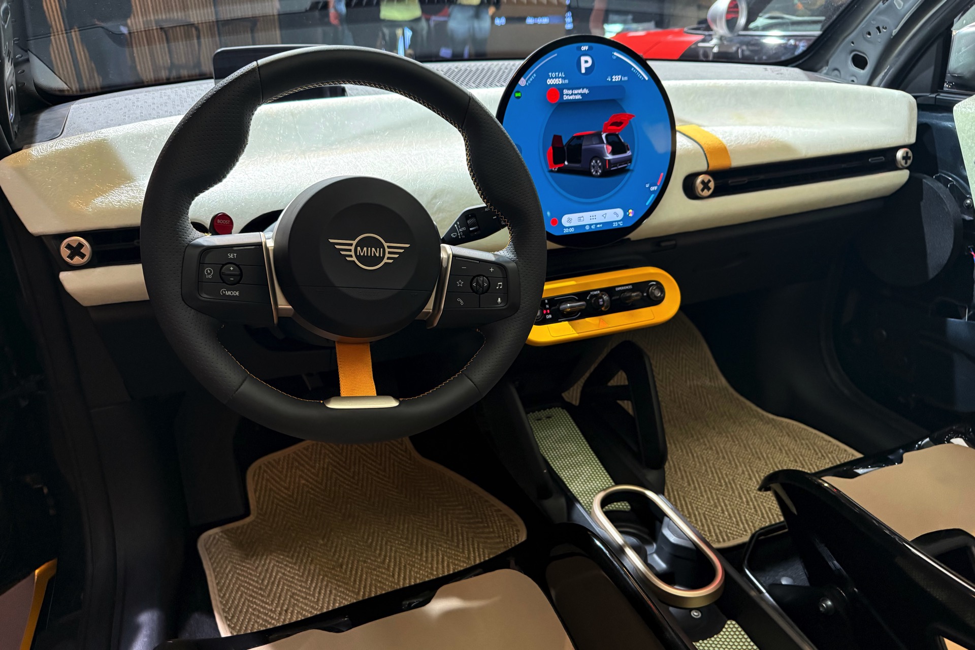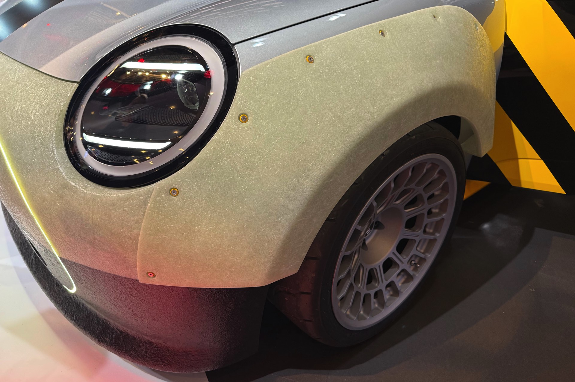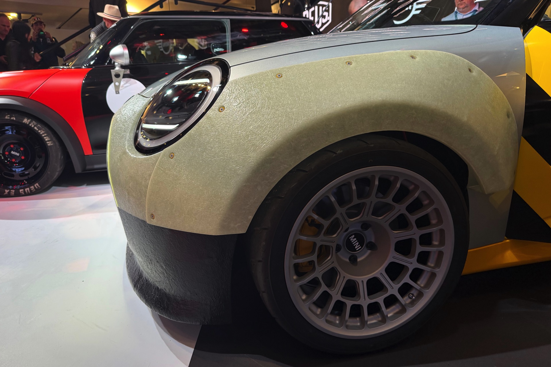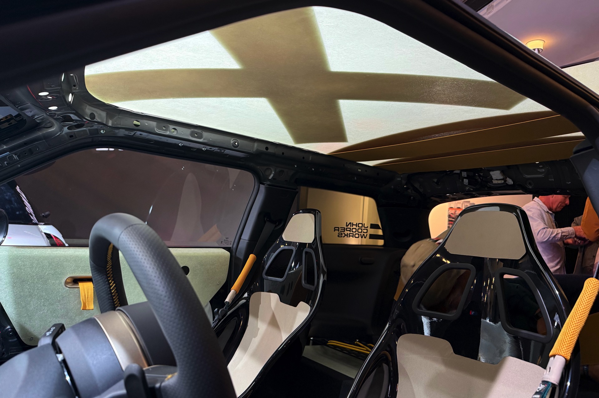 Eine ganz andere Ausprägung des aktuellen MINI Cooper zeigt ‘The Skeg’, der sich spezielle an Surfer richtet und den elektrischen MINI John Cooper Works (J01) als Basis nutzt. Zahlreiche halb-transparente Fiberglas-Elemente sorgen für einen direkten Bezug zum Surfsport und prägen mit ihren charakteristischen Oberflächen den Auftritt des Power-Kleinwagens. Auch ‘The Skeg’ kommt mit deutlich verbreiterten Kotflügeln und einem entkernten Interieur, unumstrittenes Highlight ist aber die Einheit von Fiberglas-Dach und Fiberglas-Heckspoiler: