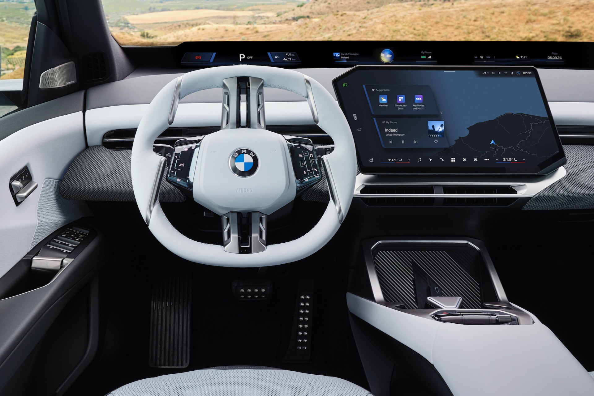 Im Innenraum könnten die Ansätze kaum unterschiedlicher sein: Während BMW auf ein reduziertes Design mit vergleichsweise kleinen Displays setzt, kommt im GLC das bisher größte Display in einem Serien-Mercedes zum Einsatz: Das praktisch komplett als Display ausgeführte Hyperscreen-Armaturenbrett kommt auf eine Bildschirmdiagonale von 39,1 Zoll. Im BMW iX3 gibt es als Haupt-Display “nur” einen 17,9-Zoll-Touchscreen, dazu kommen das flache Panoramic Vision Display auf voller Breite der Frontscheibe und das Head-up-Display für den Fahrer. Auf die Hintergründe dieses Konzepts sind wir im iDrive X-Interview mit Dr. Jörn Freyer eingegangen.