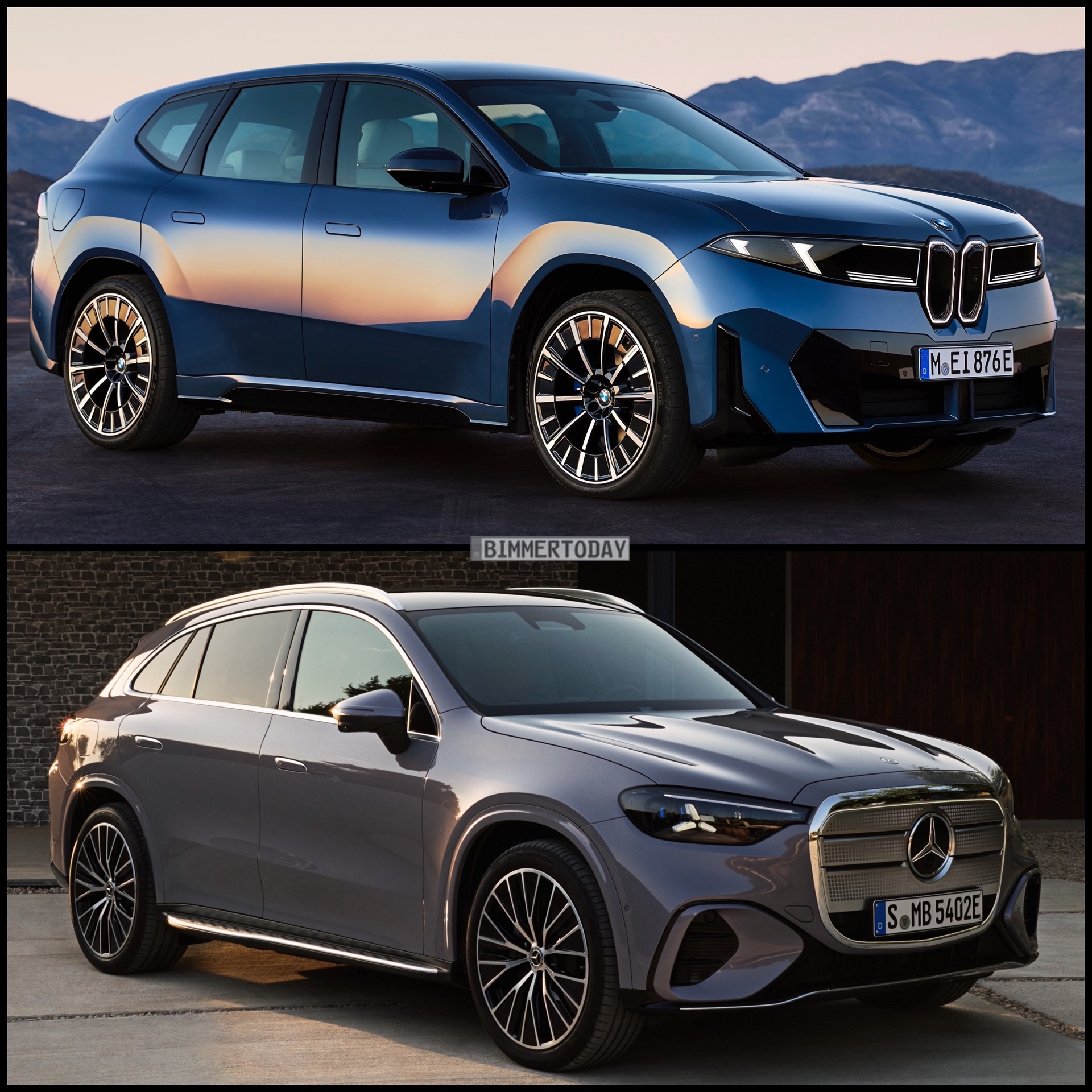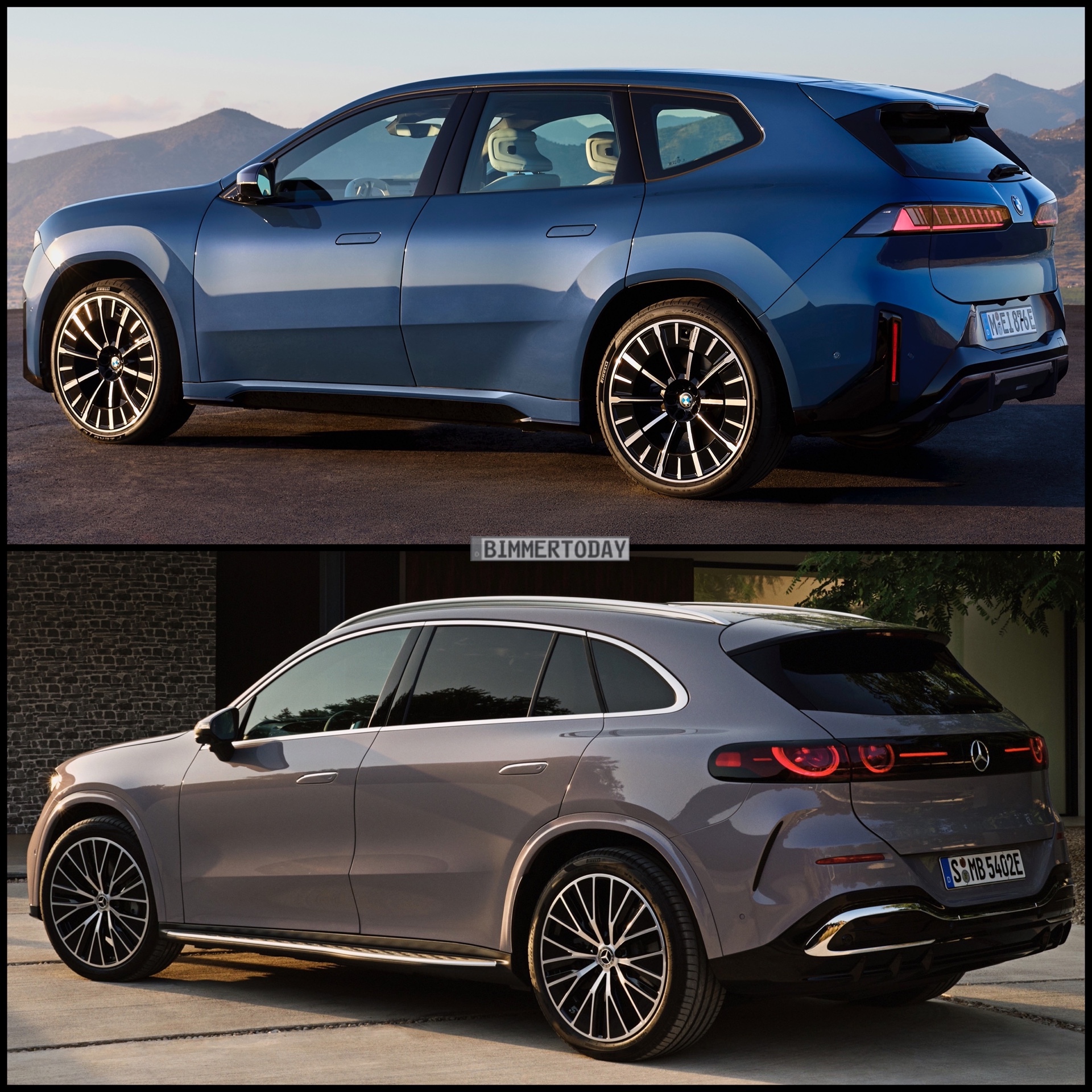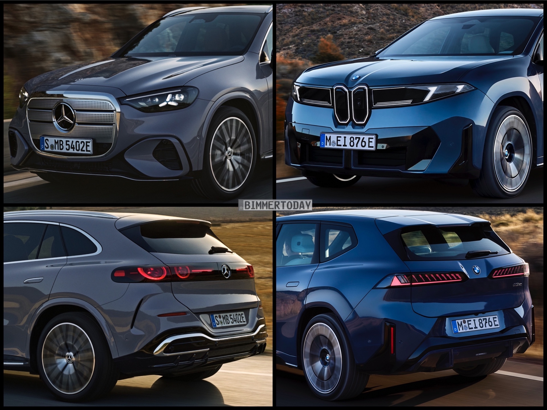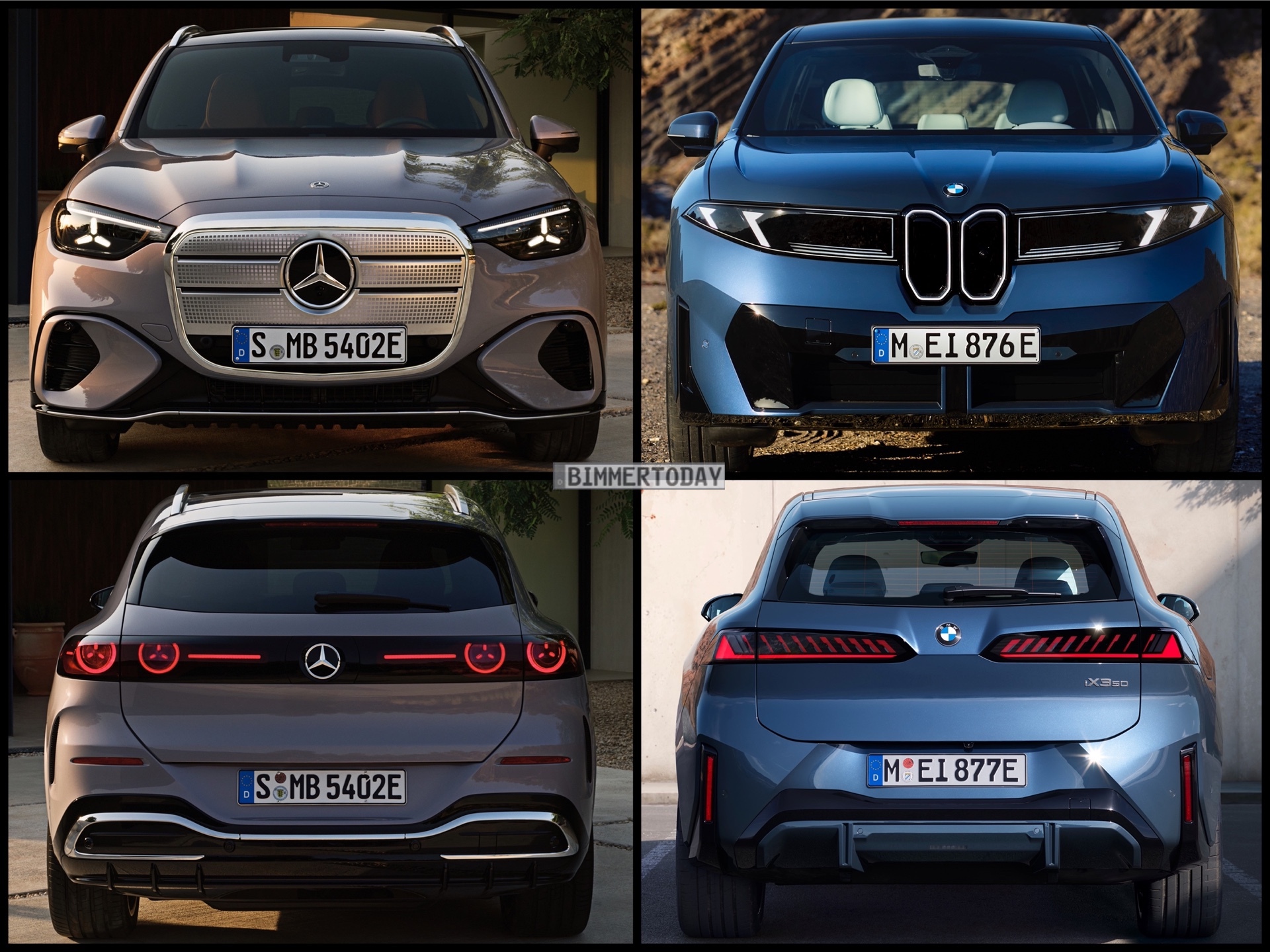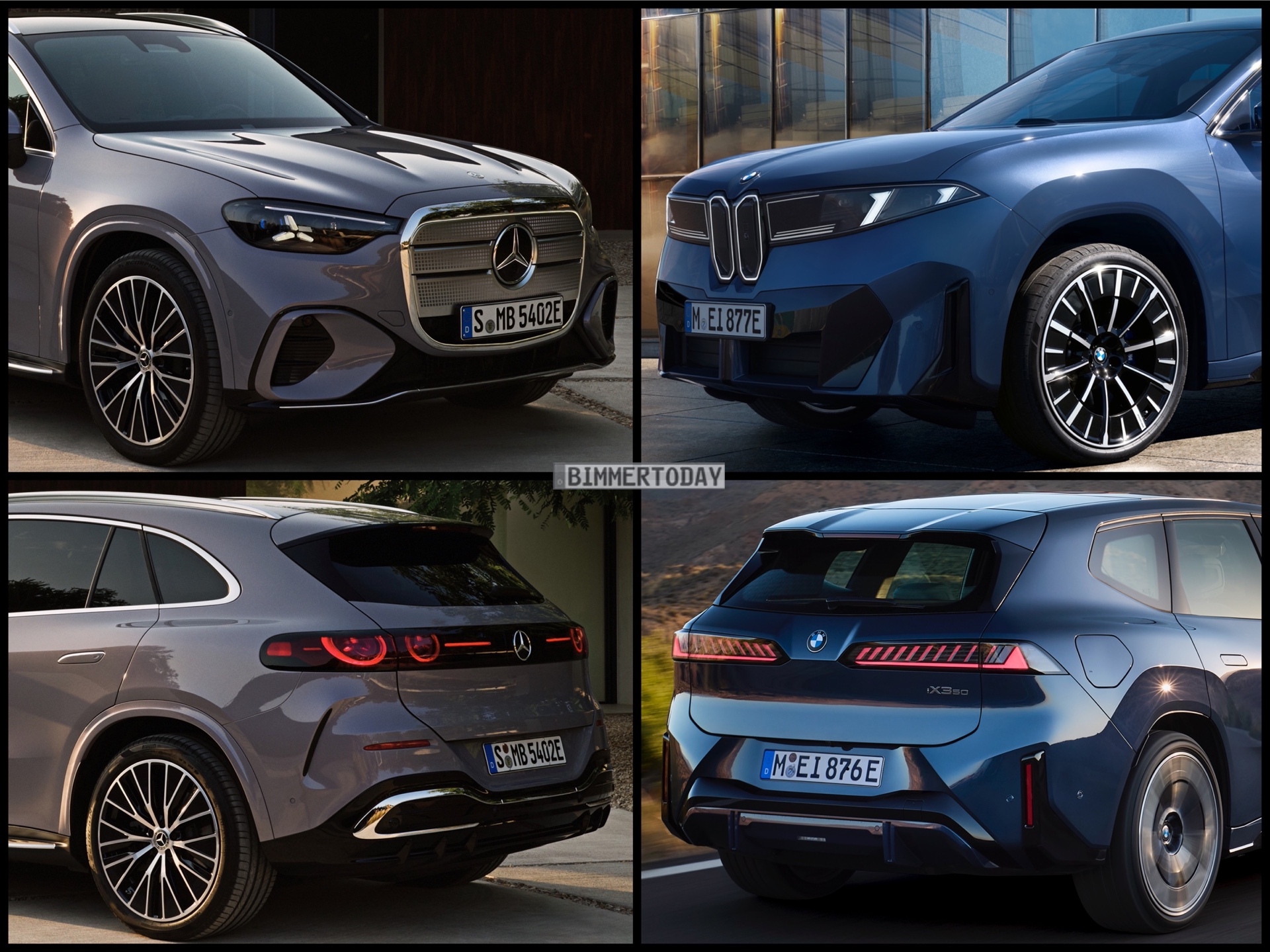 Einer der wichtigsten Rivalen des neuen BMW iX3 (NA5) feiert seine Weltpremiere in Form des neuen Mercedes GLC ebenfalls auf der IAA 2025. Nur wenige hundert Meter vom mit Spannung erwarteten Debüt-Modell der Neuen Klasse entfernt soll der elektrische GLC alles besser machen als der letztlich weitgehend erfolglose und geräuschlos vom Markt genommene Mercedes EQC. In unserem Bild-Vergleich stellen wir die beiden mit großen Zielen und Hoffnungen startenden Mittelklasse-SUV direkt gegenüber und zeigen, wie sie aus unterschiedlichen Perspektiven wirken. Auf ein neues Design setzen dabei beide, wobei beim Mercedes vor allem der neu gestaltete Grill ins Auge fällt.