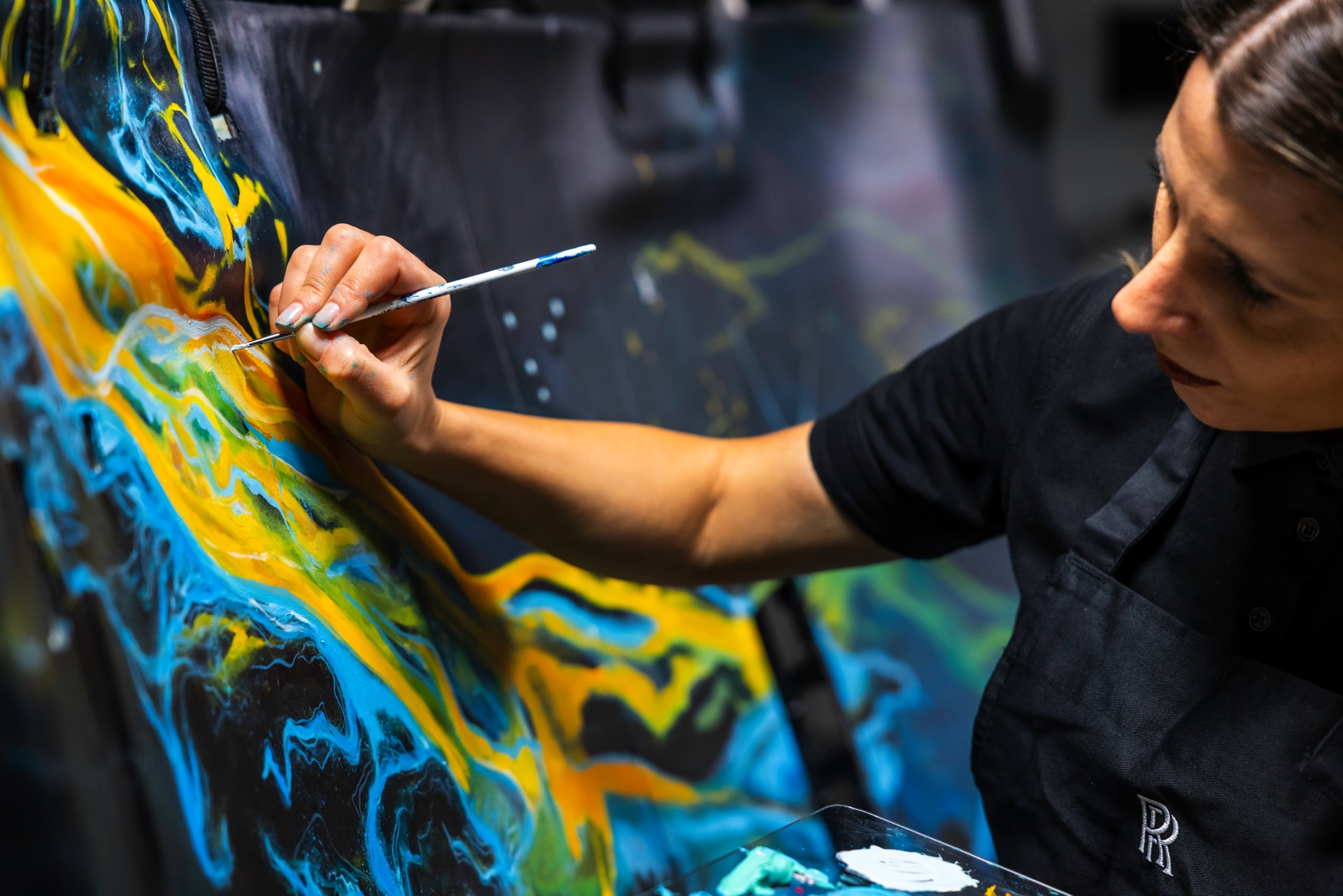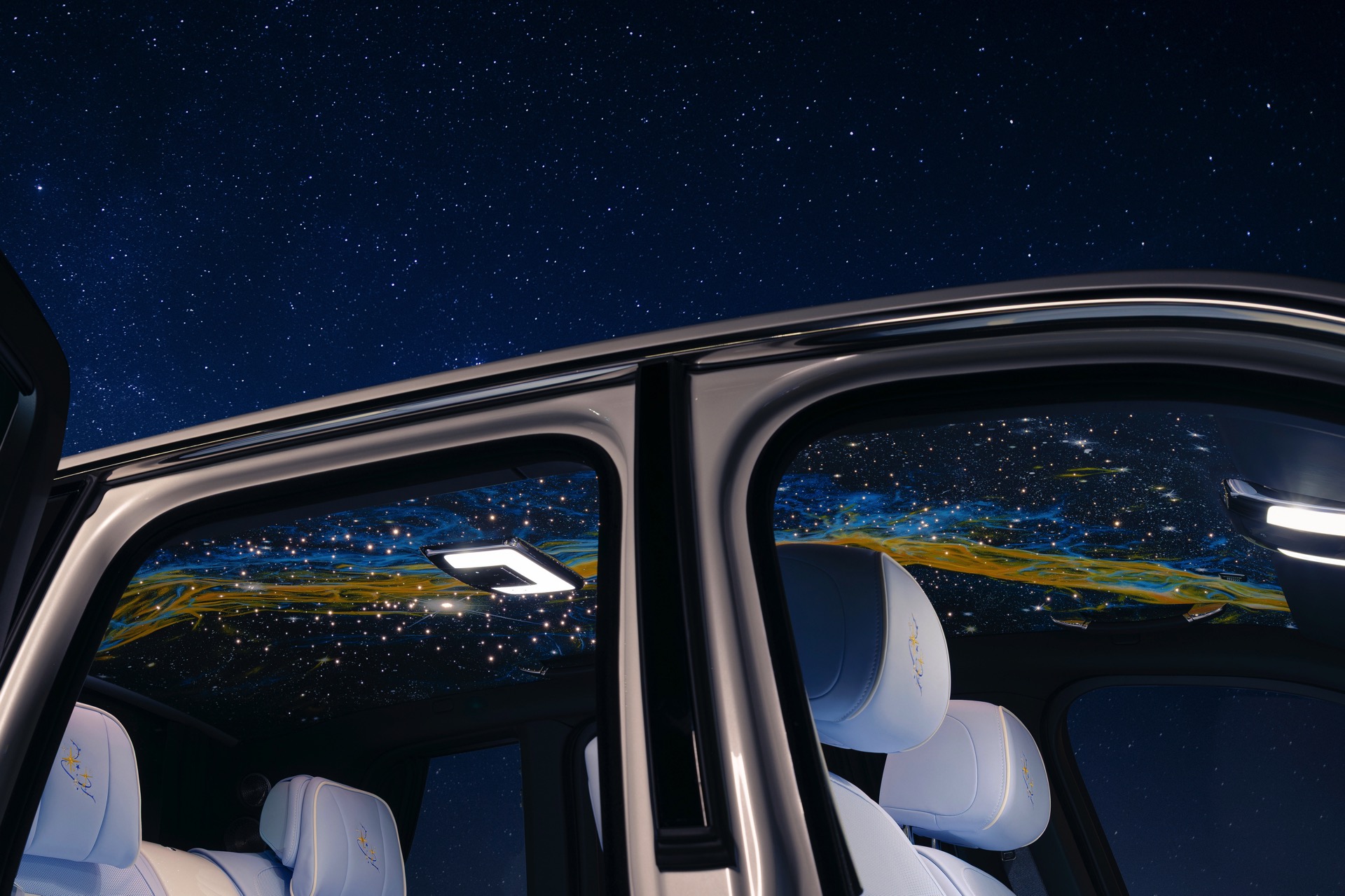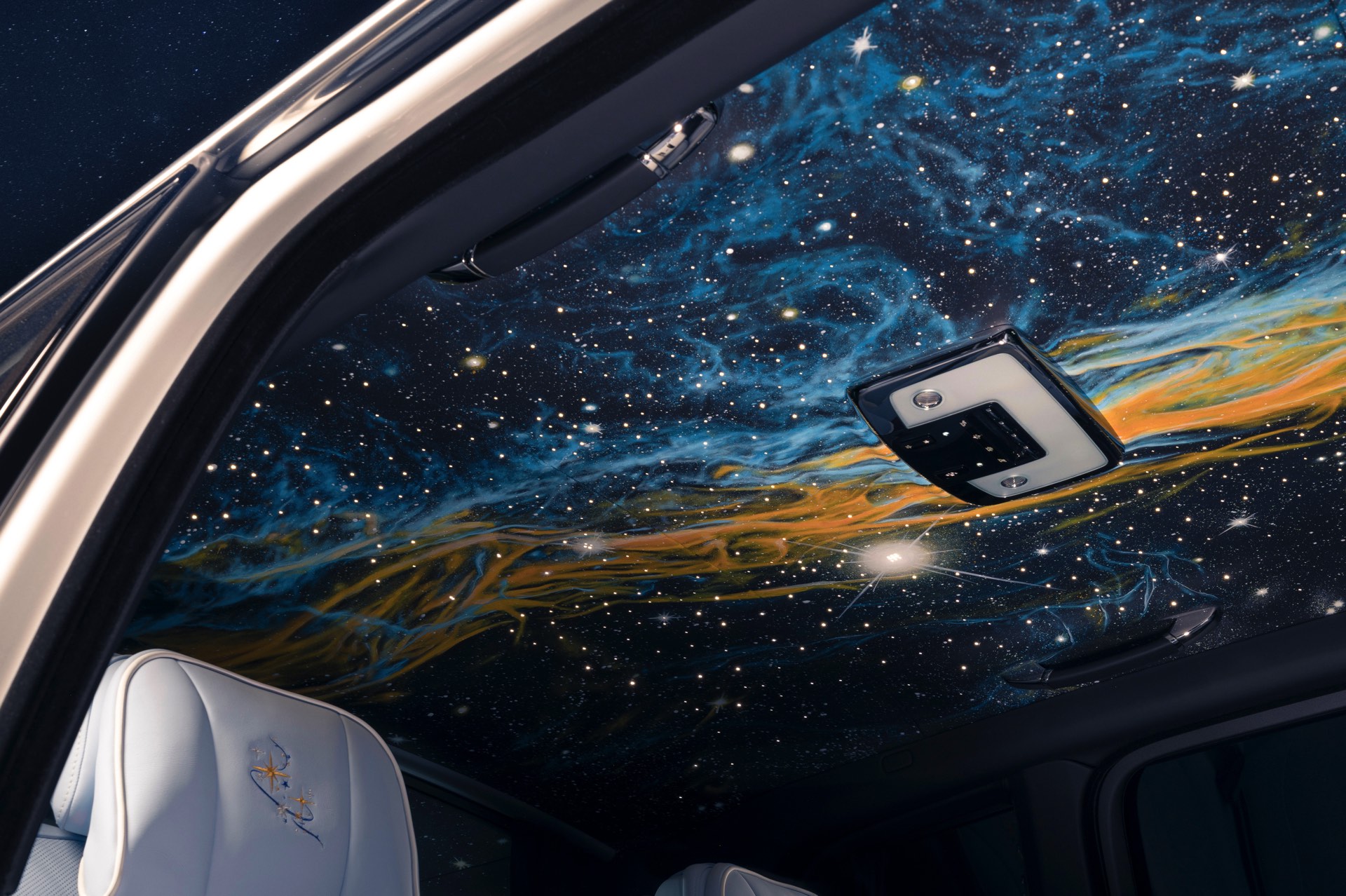 Mit einem absoluten Unikat debütiert eine neue Variante des Starlight Headliner, der seit vielen Jahren den Innenraum aktueller Rolls-Royce-Modelle prägt: An Bord des Cullinan Cosmos wird der Dachhimmel nicht nur mit hunderten Lichtpunkten verziert, sondern erstmals auch mit einer von Hand bemalten Oberfläche. Mehr als 160 Stunden investierte einer der Künstler aus dem Team von Rolls-Royce Bespoke für eine einzigartige Interpretation der Milchstraße, die uns immer wieder die Winzigkeit unserer Erde vor Augen führt.