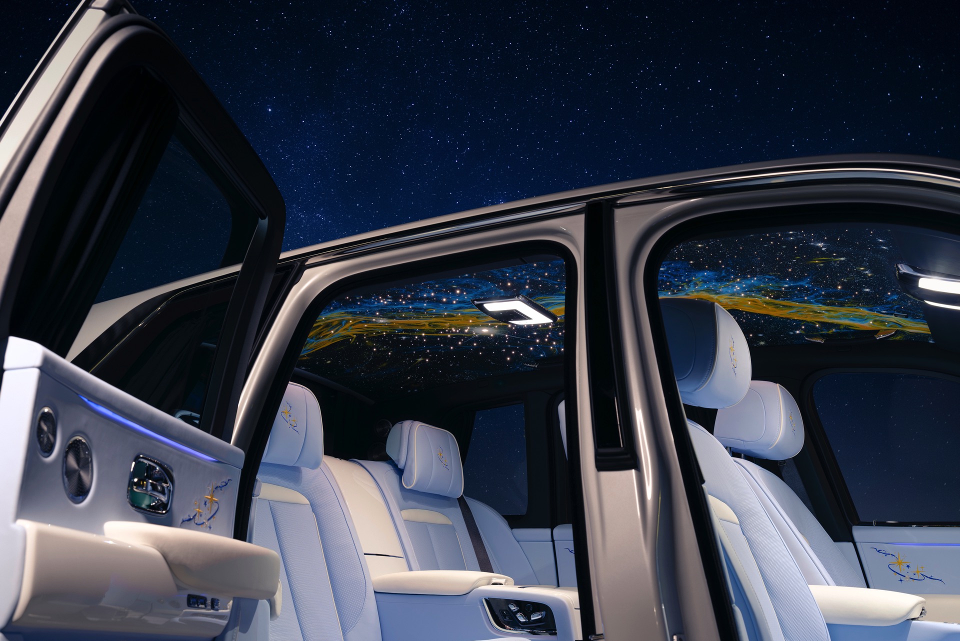 Realisiert wurde das Einzelstück auf Basis des Rolls-Royce Cullinan Series II im Auftrag eines Kunden aus dem arabischen Raum, der seine Wünsche bei Rolls-Royce Dubai platzierte. Die Familie und der vierjährige Sohn des Kunden sind offenbar derart vom Weltraum begeistert, dass sie auch in wolkigen Nächten nicht auf den Anblick des Nachthimmels verzichten wollen.