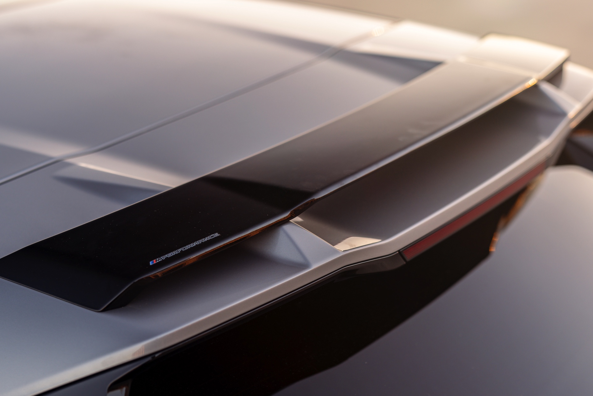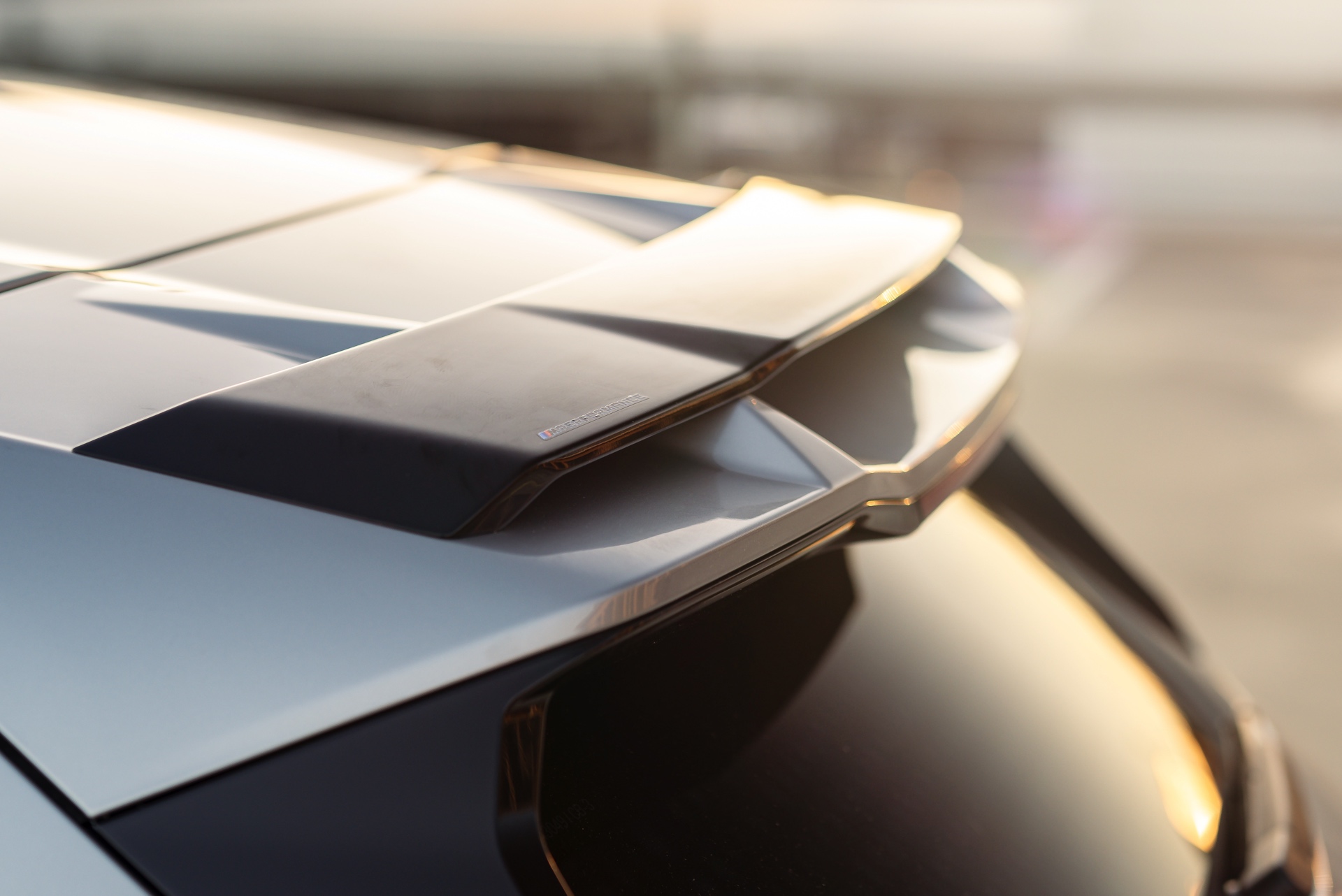 Für aerodynamischen und optischen Feinschliff gibt es zunächst drei Optionen von BMW M Performance: Im Bereich des zentralen Lufteinlasses unterhalb von Nieren und Scheinwerfern sehen wir den Frontaufsatz in Schwarz hochglänzend, der aufgrund des senkrechten Doppelstegs in der Mitte der M-Frontschürze mehrteilig ausgeführt ist. Am Heck sehen wir einerseits einen Diffusor-Einsatz in glänzendem Schwarz, der größere Hingucker ist aber ohne Frage der auf dem regulären Dach-Abschluss platzierte Heckspoiler in schwarzer Kontrastfarbe. "