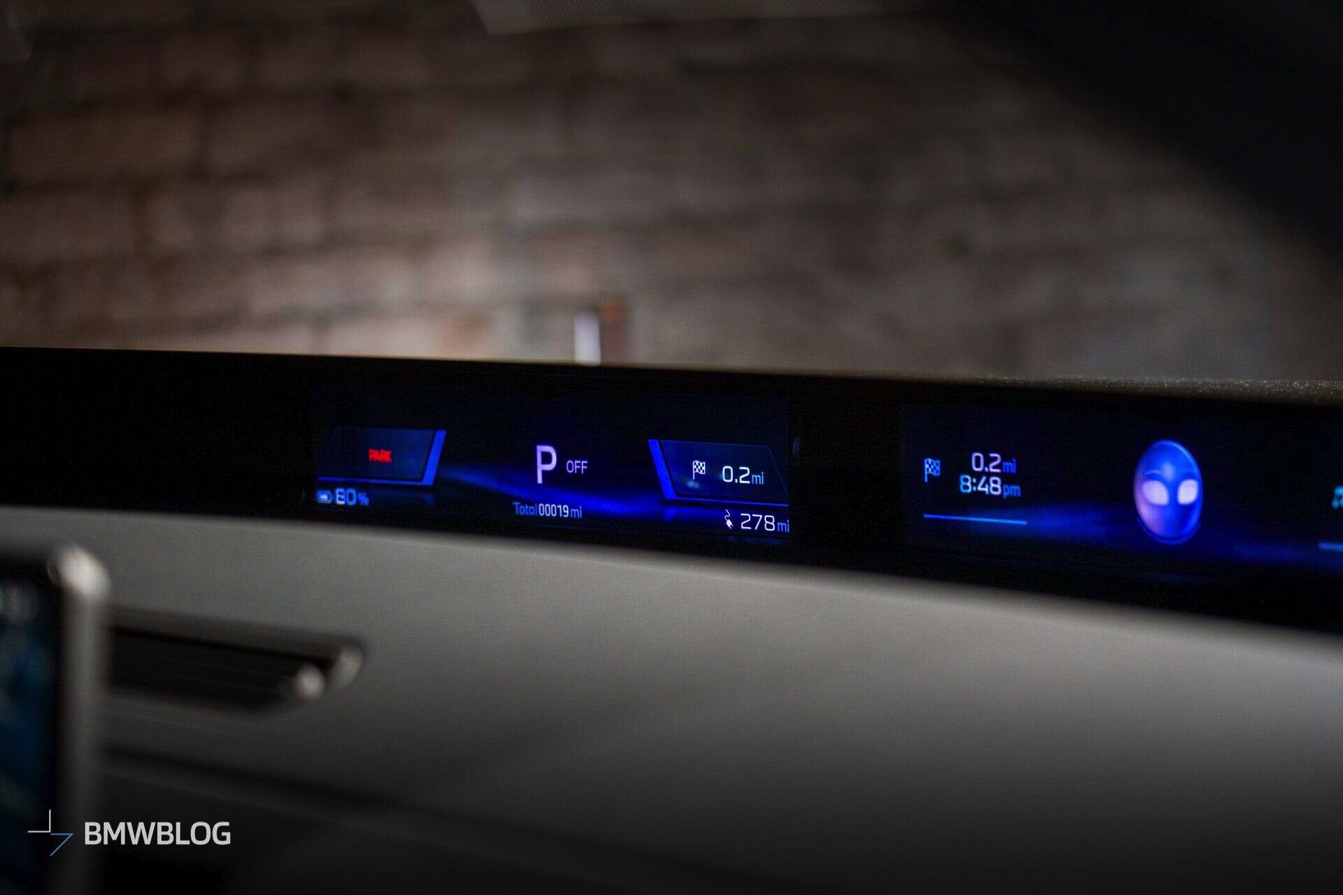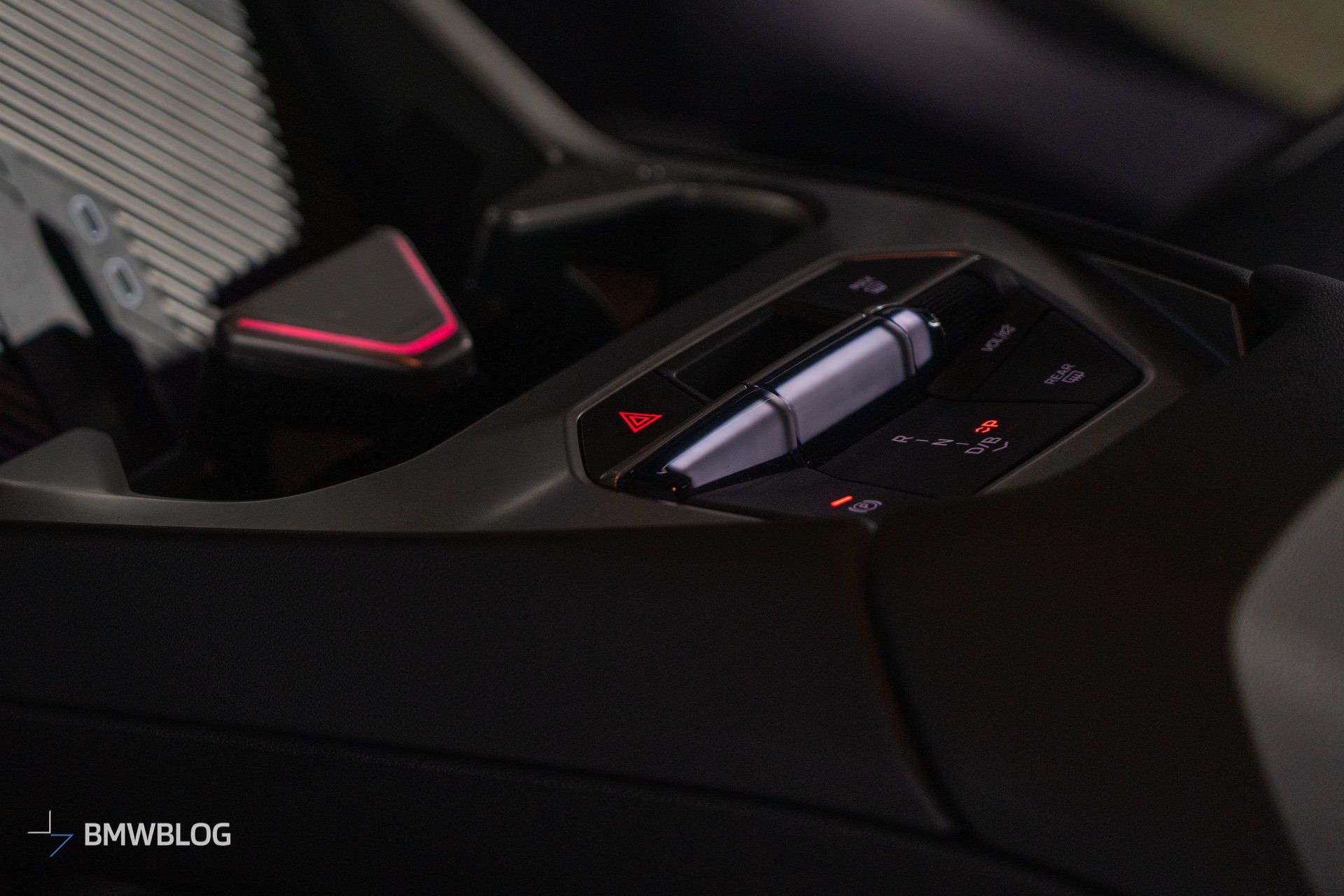 Beim Blick in den Innenraum fällt sofort das M Sportlenkrad ins Auge, dessen Formen sich grundlegend vom Serien-Lenkrad mit seiner zusätzlichen Doppelspeiche im oberen Bereich unterscheiden. Dass die schwarze Interieur-Ausführung zudem deutlich alltagstauglicher als das bei der Weltpremiere präsentierte Digital White sein wird, steht nicht zur Debatte.