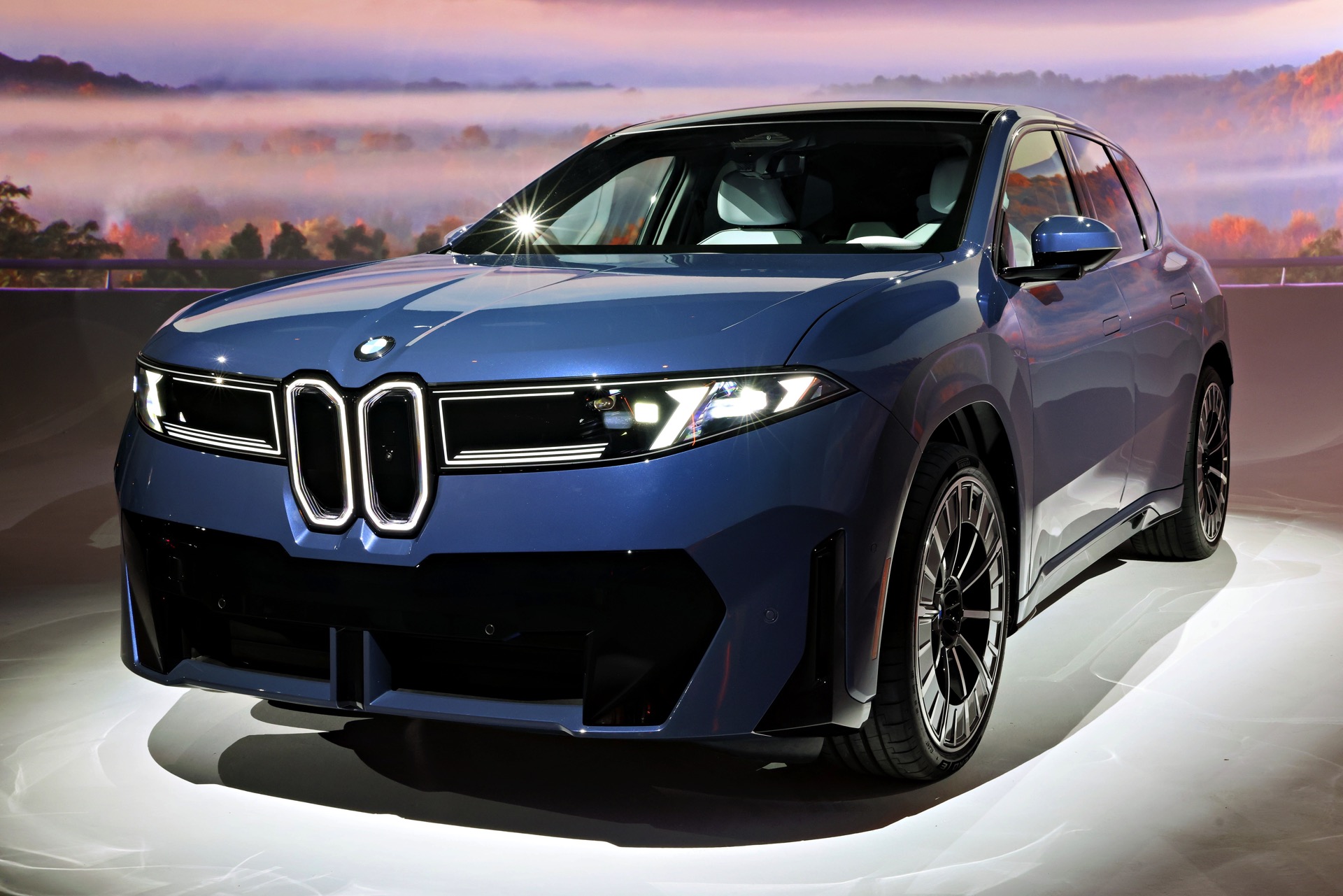 Wer passend zur Technik lieber ein futuristischeres Felgen-Design haben will, darf sich vor allem bei den größeren Rädern mit 21 oder 22 Zoll über verschiedene Optionen freuen. Dass es sich beim gezeigten BMW iX3 in Schwarz um die US-Version handelt, zeigt sich wie gewohnt am Fehlen des Front-Kennzeichens und natürlich an den orangenen Reflektoren vor den Vorderrädern. "