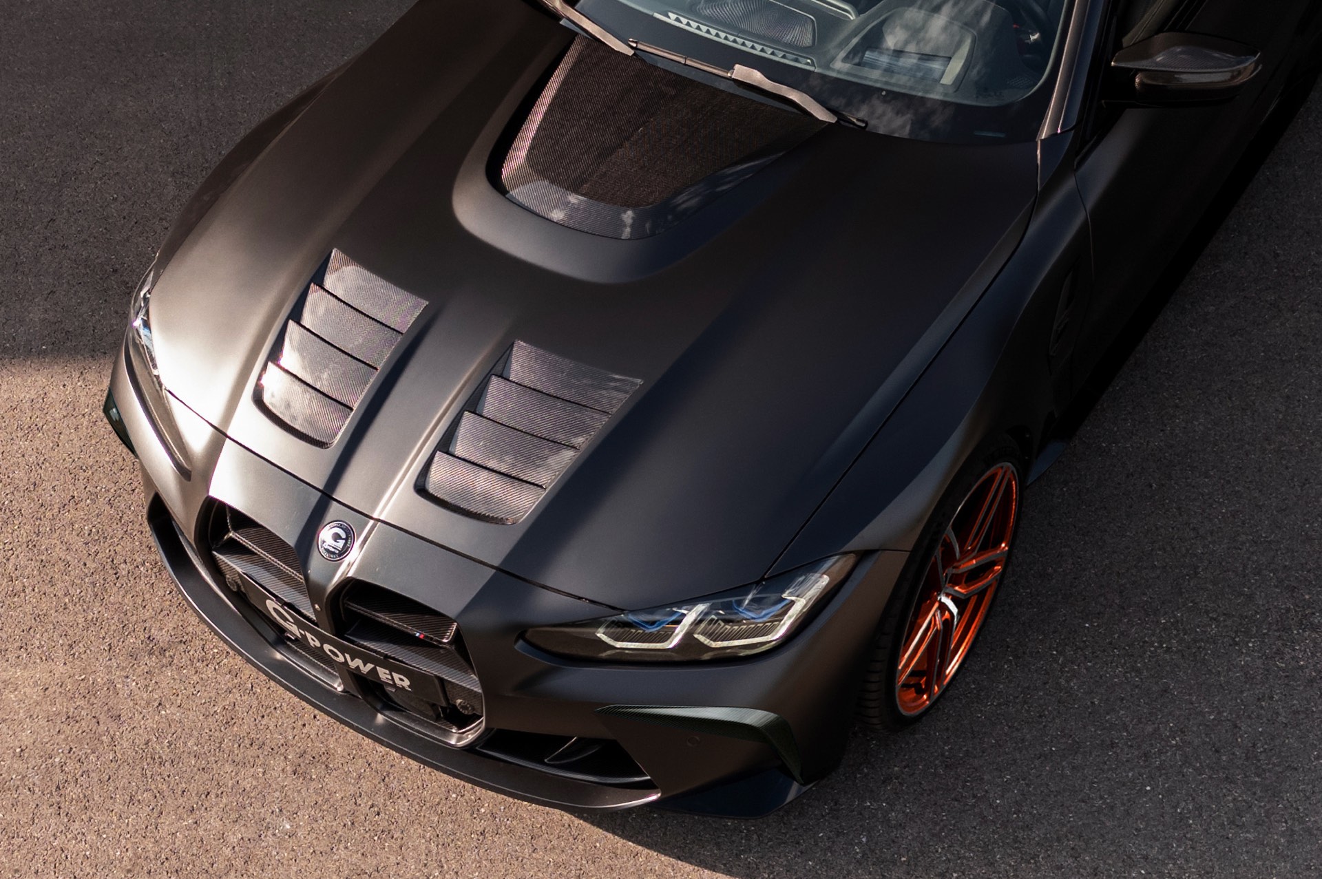 Für die optische Differenzierung von der Serie setzt G-Power auf jede Menge kohlefaserverstärkten Kunststoff: Hingucker Nummer 1 ist die Venturi RR genannte Carbon-Motorhaube mit zusätzlichen Entlüftungsöffnungen, die selbstverständlich auch einem Euro NCAP-Crashtest unterzogen wurde und daher StVZO-konform gefahren werden kann. Dazu gibt es auf Wunsch eine Carbon-Niere, Carbon Frontcorner-Aufsätze und natürlich vier Carbon-ummantelte Endrohre am Heck.
