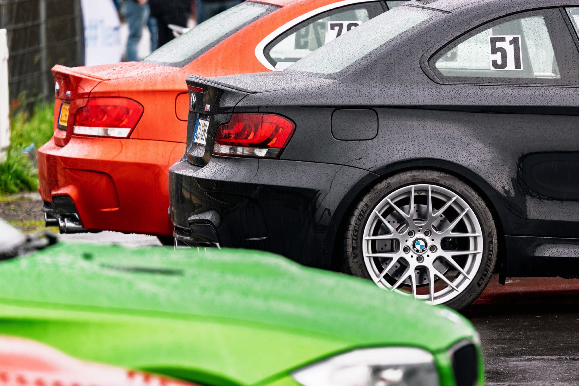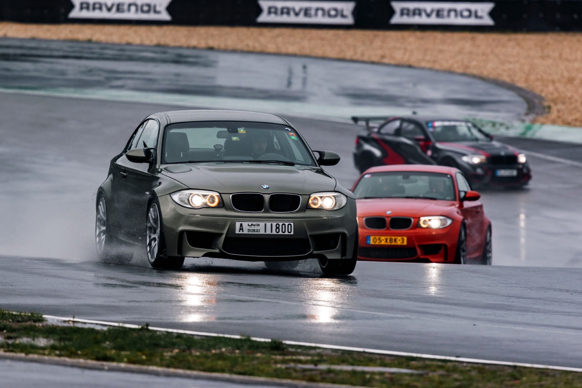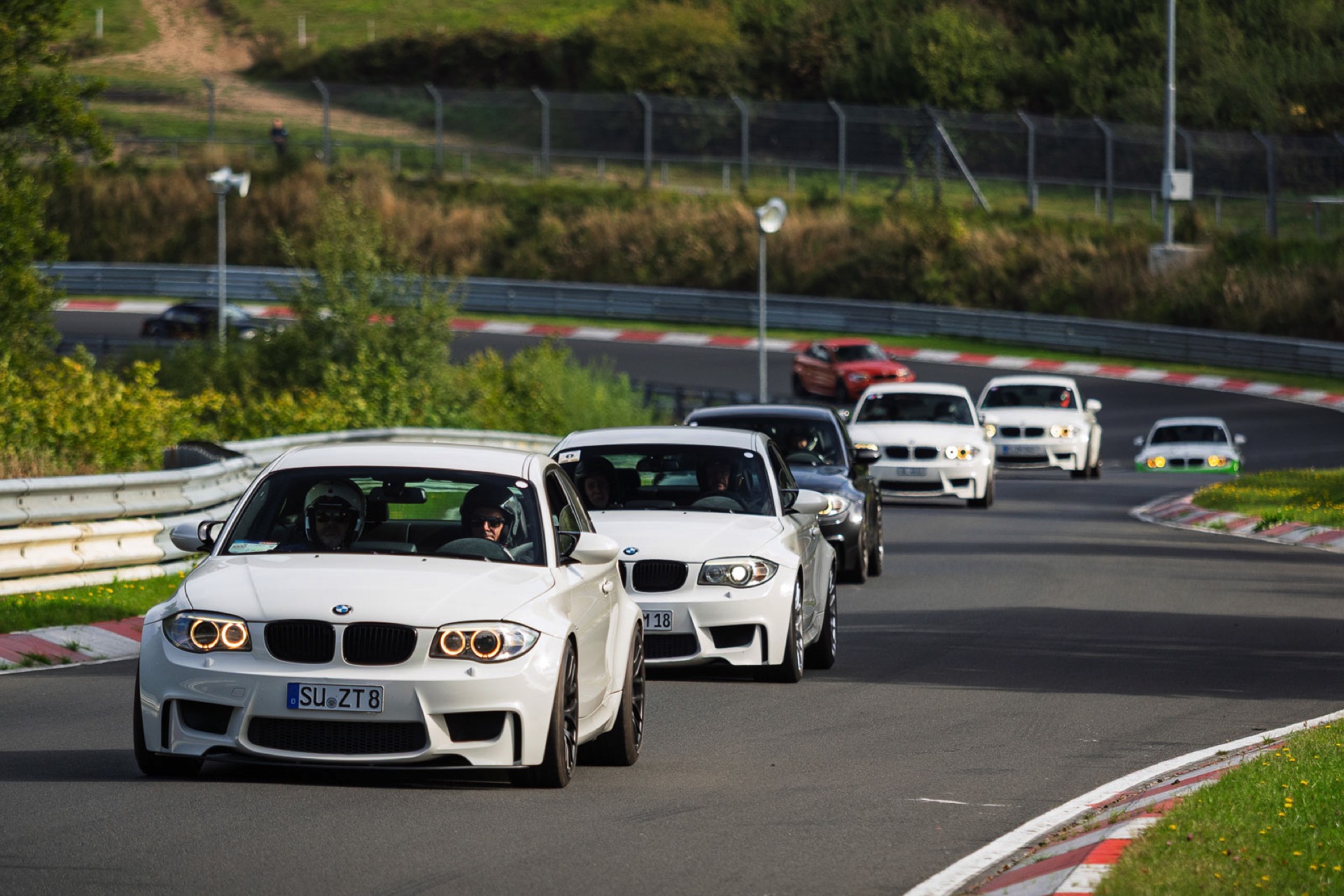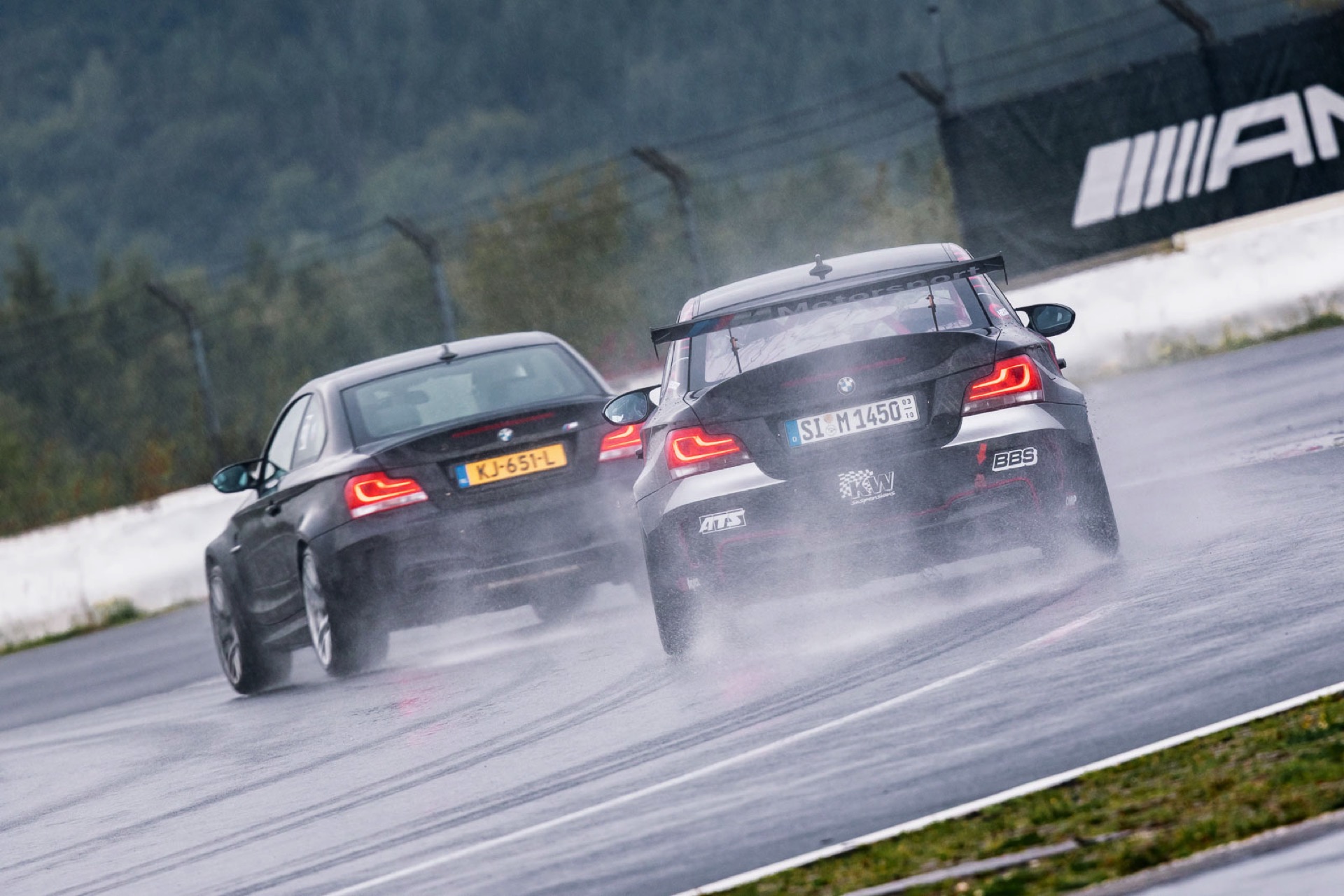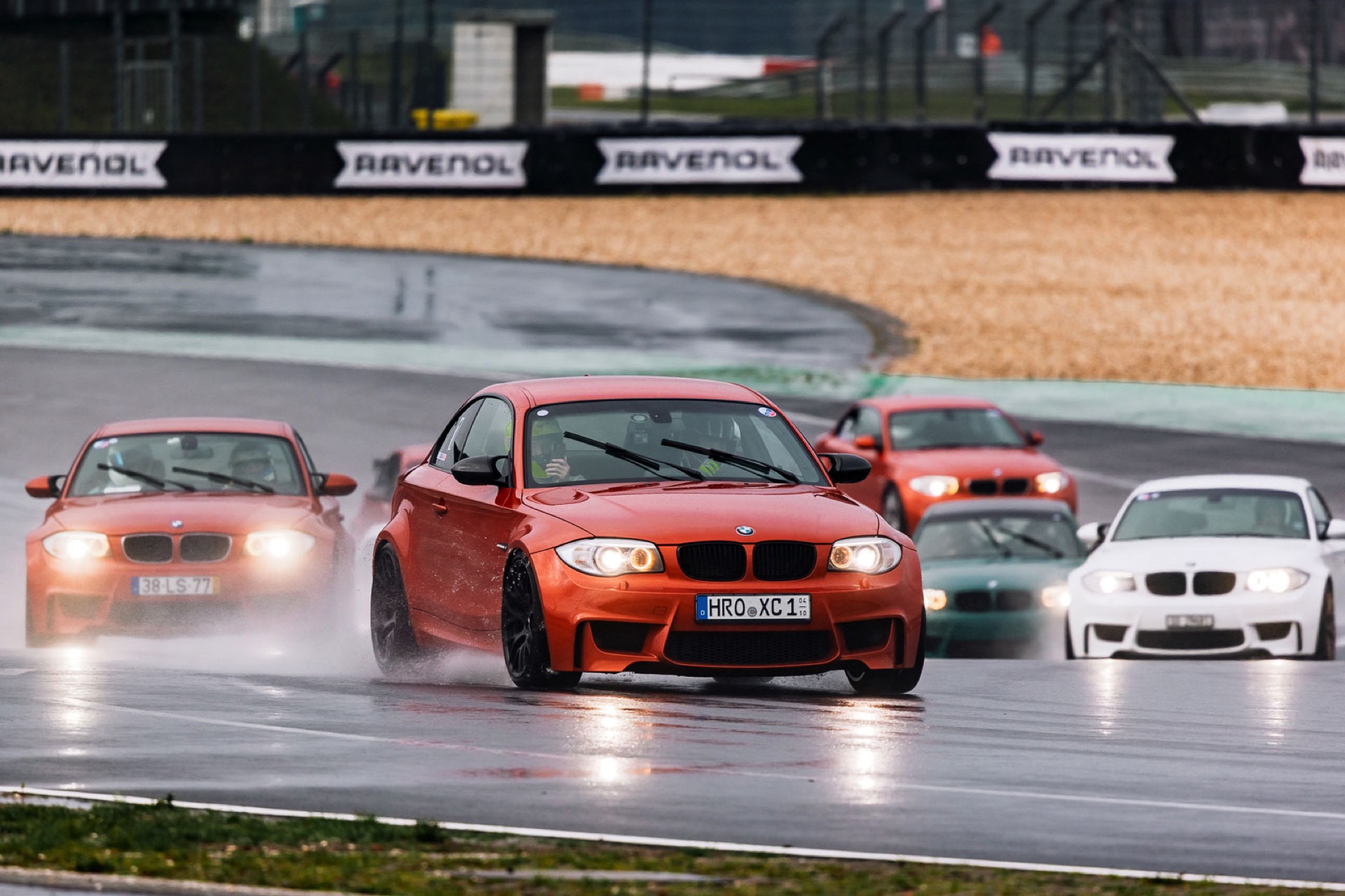 Nachdem die Nordschleife am Samstag bei schönstem Spätsommer-Wetter befahren werden konnte, wartete am Sonntag der Nürburgring GP-Kurs auf die Teilnehmer. Zwar hatte der Regen in der Zwischenzeit für nassen Asphalt gesorgt, aber die Fahreigenschaften des Kompaktsportlers begeistern bekanntlich auch in Verbindung mit niedrigem Reibwert: Die in diesem Format einzigartige Kombination aus 340 PS starkem Reihensechszylinders mit ausgeglichener Gewichtsverteilung, viel Fahrwerks-Technik aus dem damaligen M3 und natürlich BMW-typischem Hinterradantrieb macht bis heute die Faszination des 1er M Coupé aus.