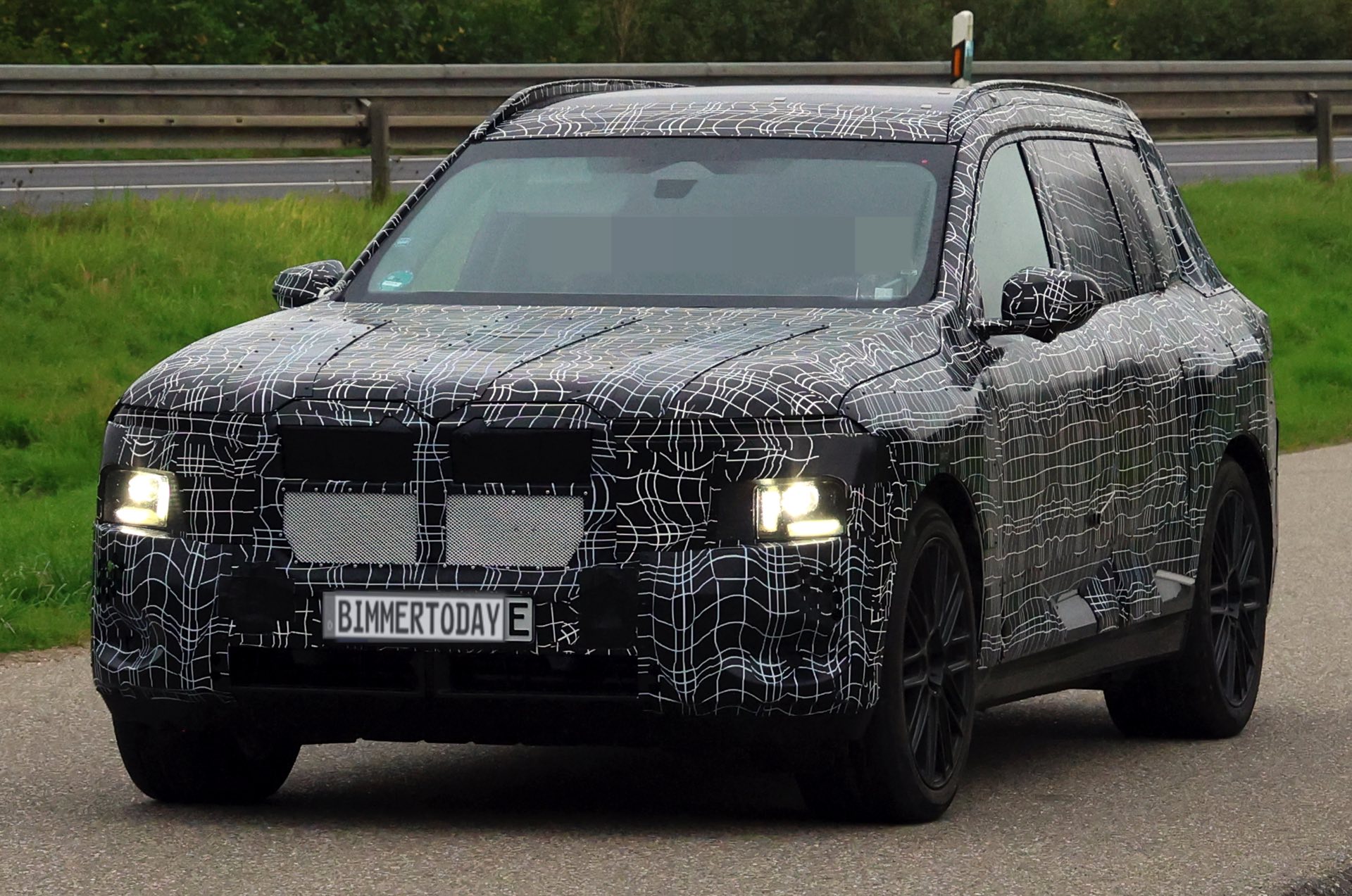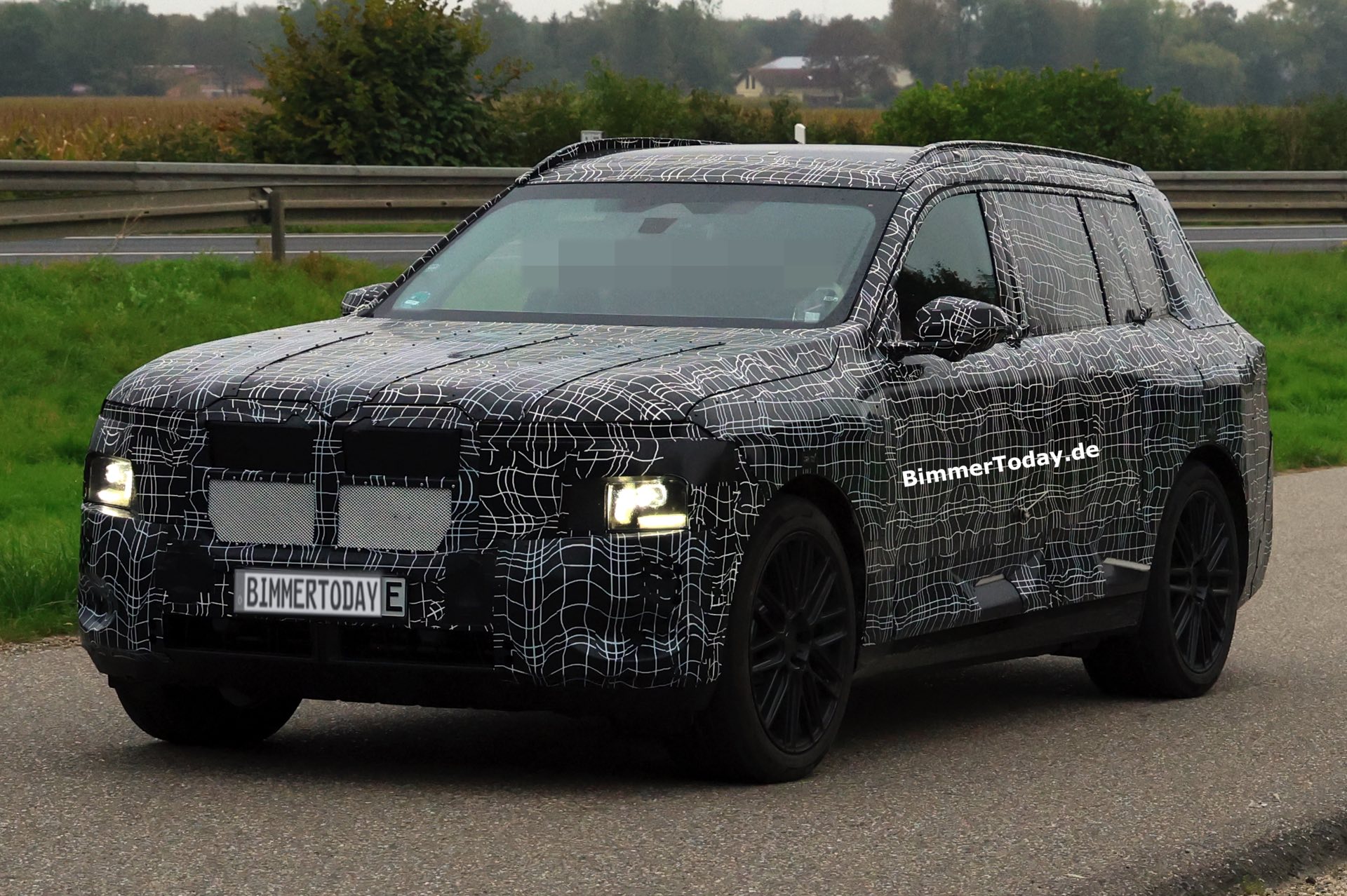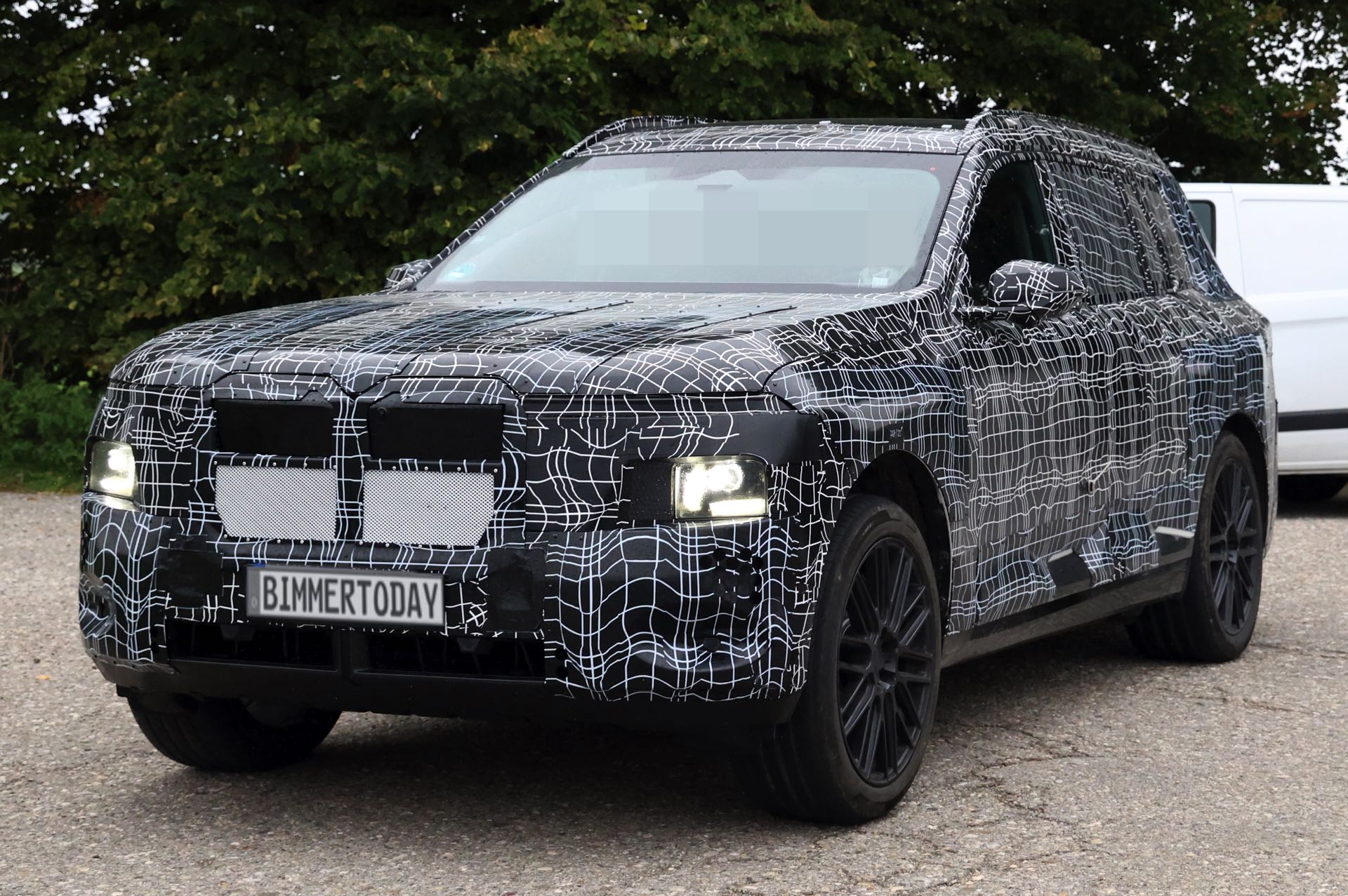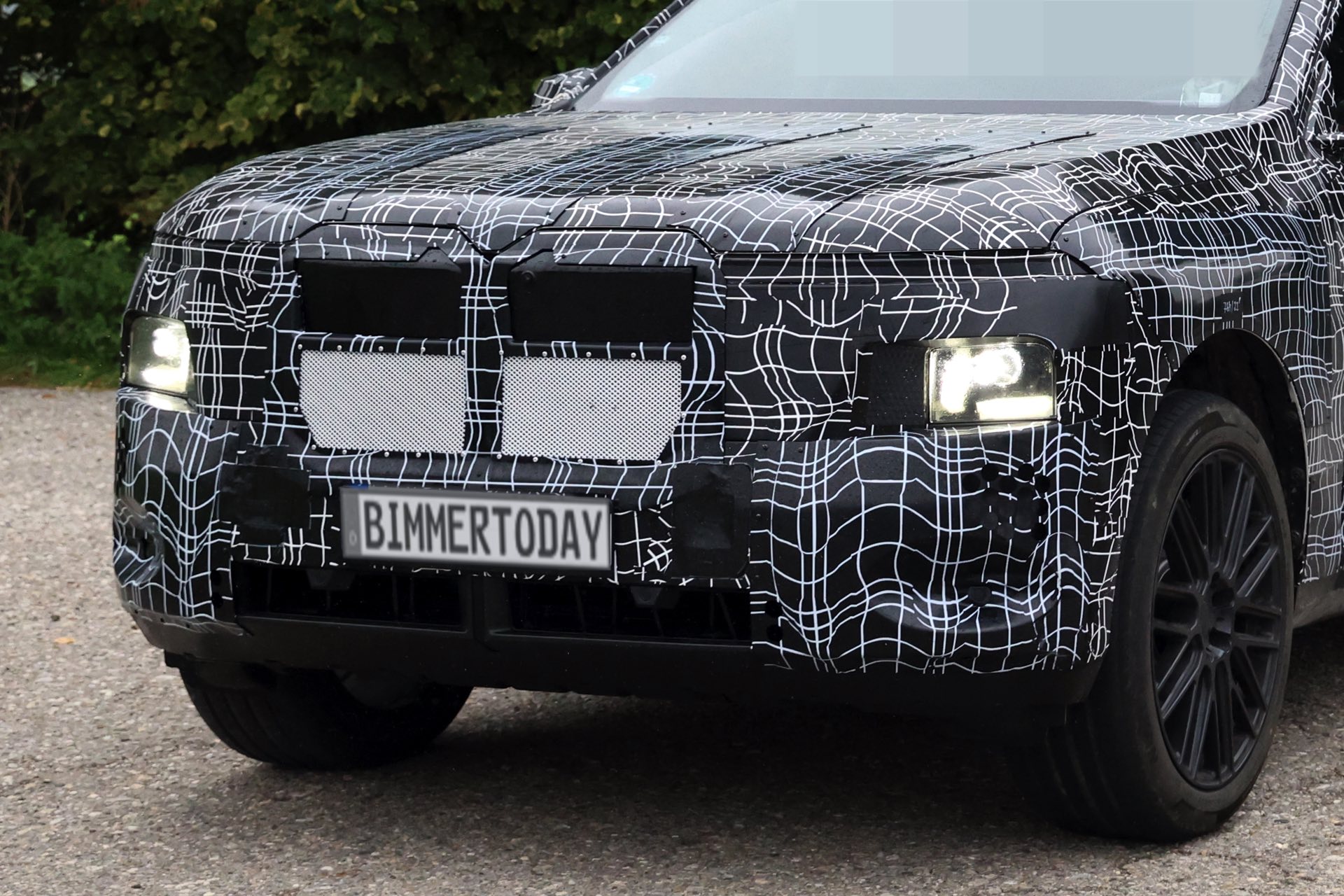 Zwar kann die derzeit noch sehr üppige Tarnung in gewissen Grenzen in die Irre führen, aber die tiefe Position der Haupt-Scheinwerfer ist unter normalen Umständen ein unmissverständliches Zeichen. Der jetzt erwischte BMW iX7-Erlkönig scheint darüber außerdem schmale Streifen für ein Leuchtenband zu besitzen. Außerdem zeichnet sich unter der Tarnung deutlich eine wesentlich größere Niere ab, was den X7 auch vom kommenden BMW X5 & iX5 (G65) abheben wird. "