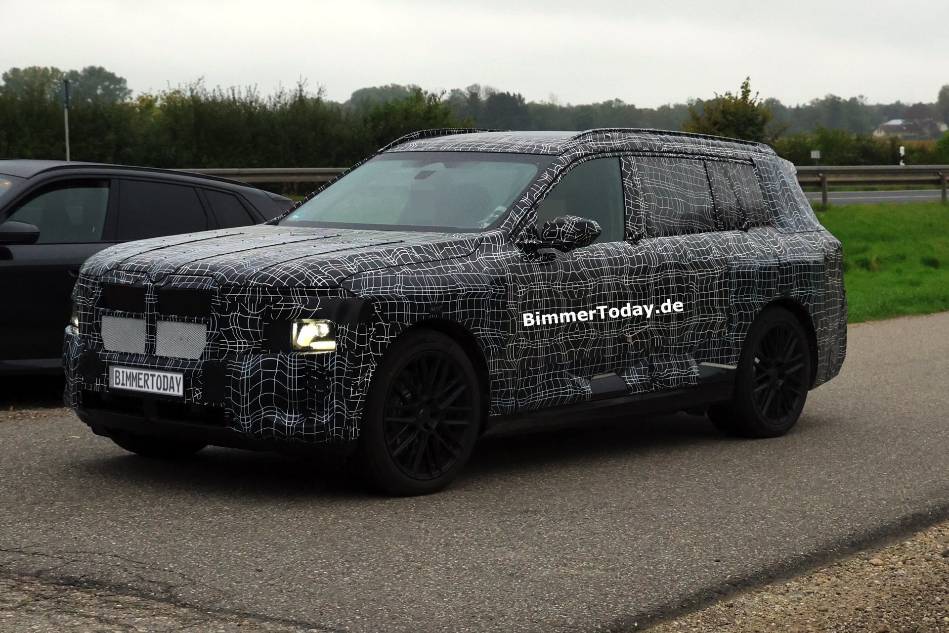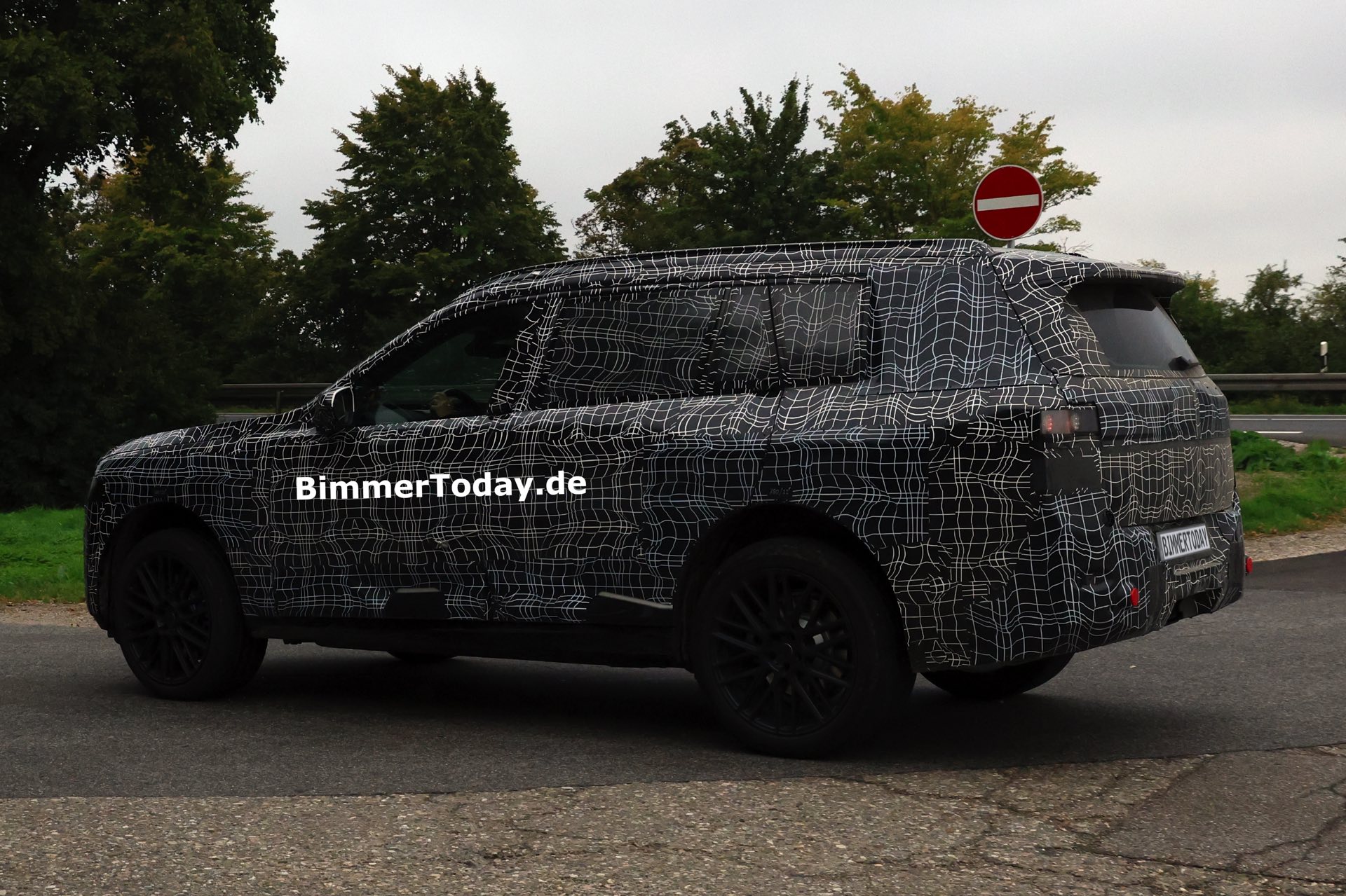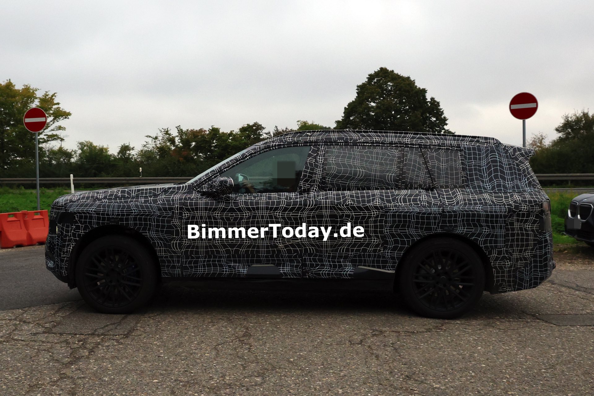 In der Seitenansicht sorgen nicht nur die Dimensionen des BMW X7 für eine klare Abgrenzung von den kleineren Baureihen, auch die kaum abfallende Dachlinie und die beinahe senkrecht stehende Heckscheibe deuten auf die Bemühungen für einen möglichst großen Innenraum hin – bis hin zur Kopffreiheit in der dritten Sitzreihe. Am Heck erlaubt die starke Tarnung nur wenige Rückschlüsse auf das tatsächliche Design, aber insgesamt zeichnet sich mit Split Headlights und großen Nieren schon jetzt ein eigenständiges Design ab, das wesentlich weniger “Neue Klasse”-Look als andere Erlkönige der letzten Wochen und Monate transportiert.