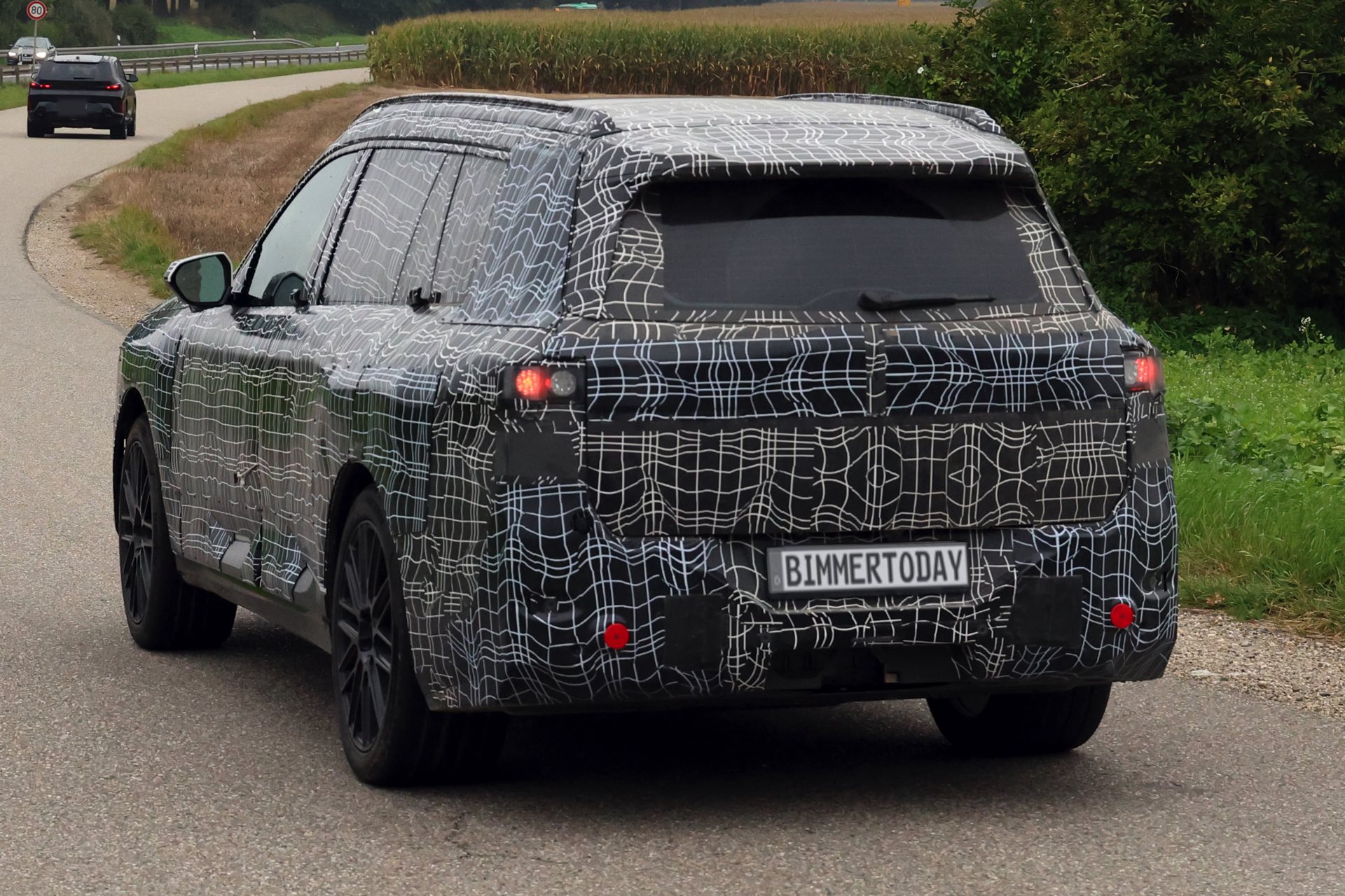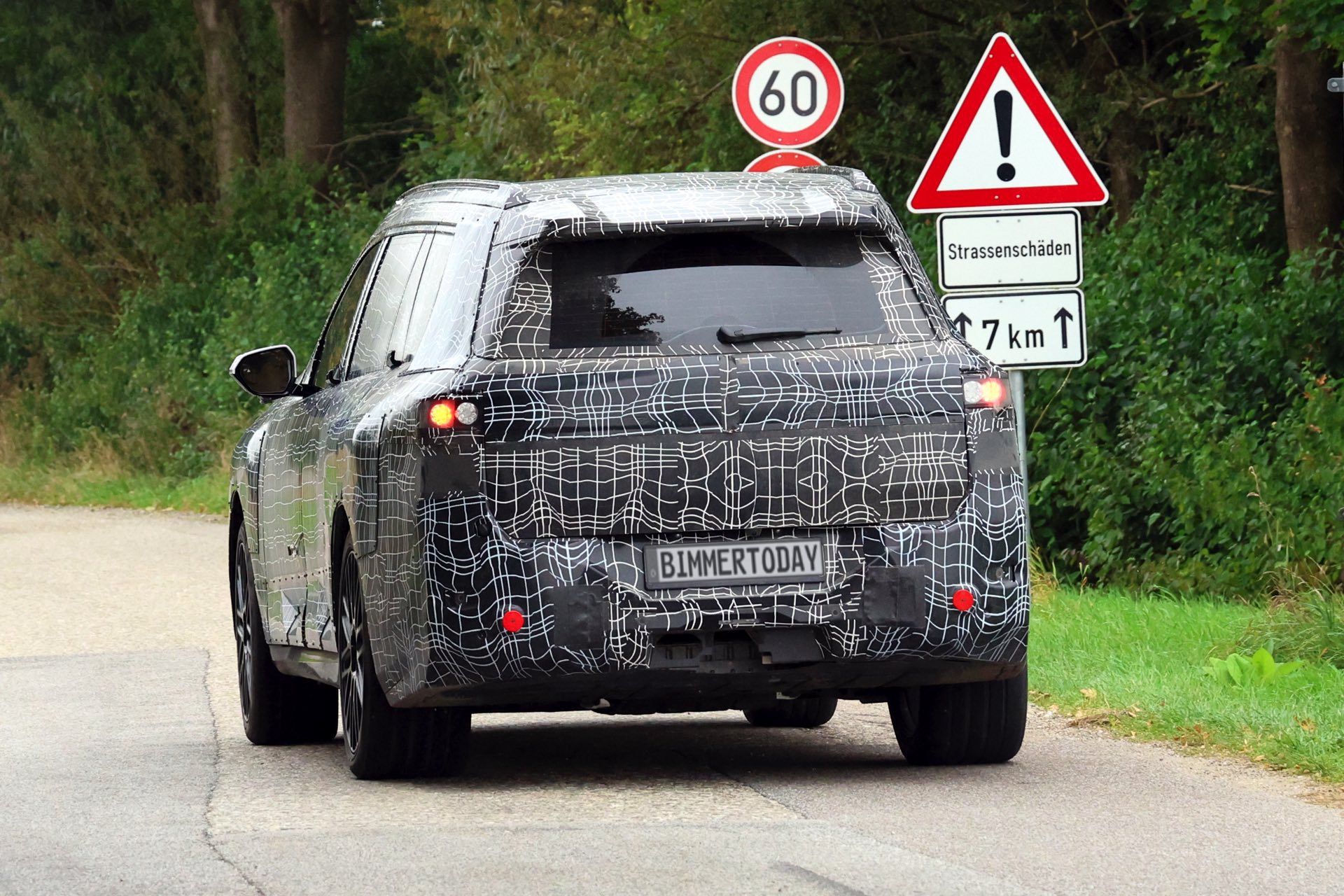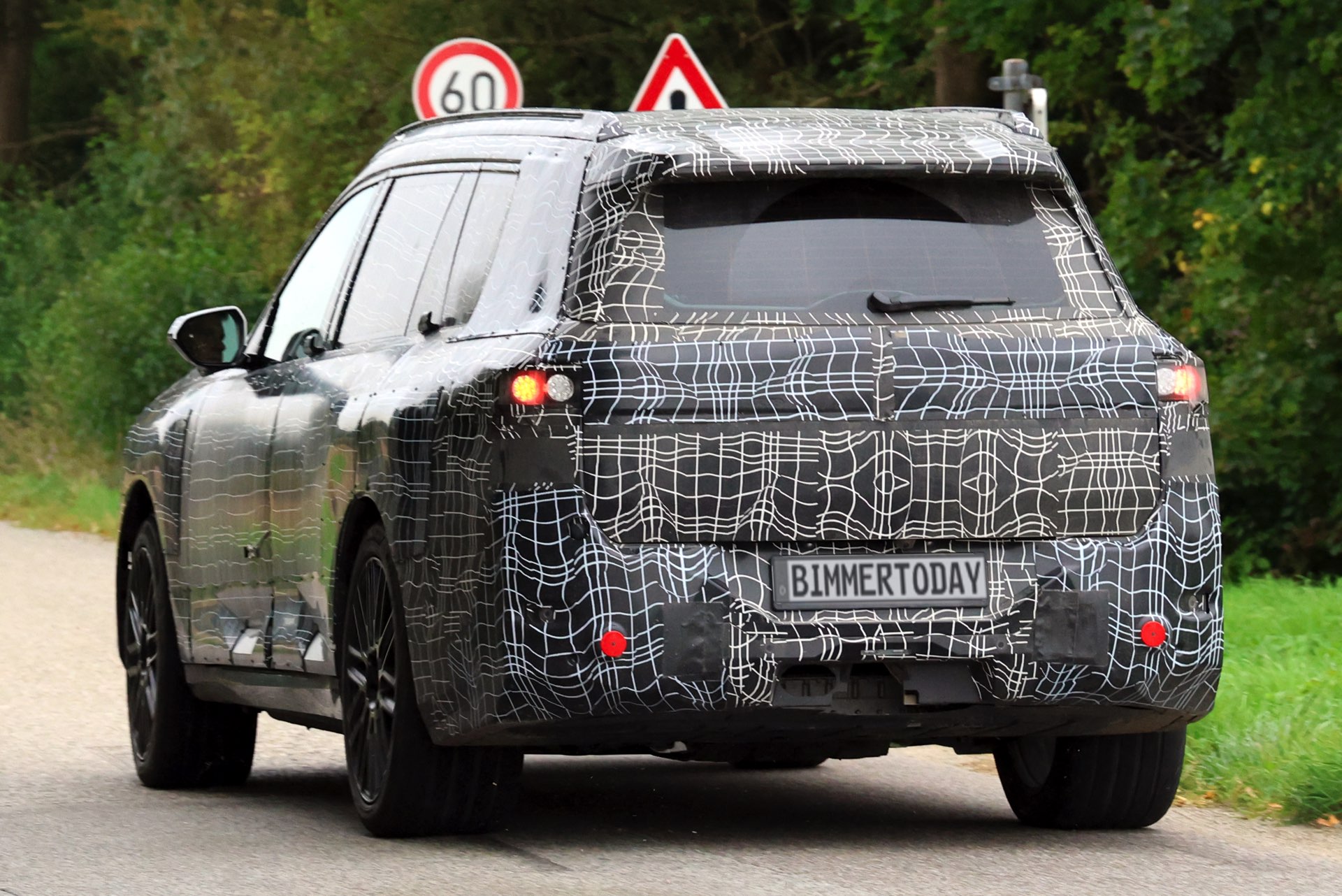 In der Seitenansicht sorgen nicht nur die Dimensionen des BMW X7 für eine klare Abgrenzung von den kleineren Baureihen, auch die kaum abfallende Dachlinie und die beinahe senkrecht stehende Heckscheibe deuten auf die Bemühungen für einen möglichst großen Innenraum hin – bis hin zur Kopffreiheit in der dritten Sitzreihe. Am Heck erlaubt die starke Tarnung nur wenige Rückschlüsse auf das tatsächliche Design, aber insgesamt zeichnet sich mit Split Headlights und großen Nieren schon jetzt ein eigenständiges Design ab, das wesentlich weniger “Neue Klasse”-Look als andere Erlkönige der letzten Wochen und Monate transportiert.