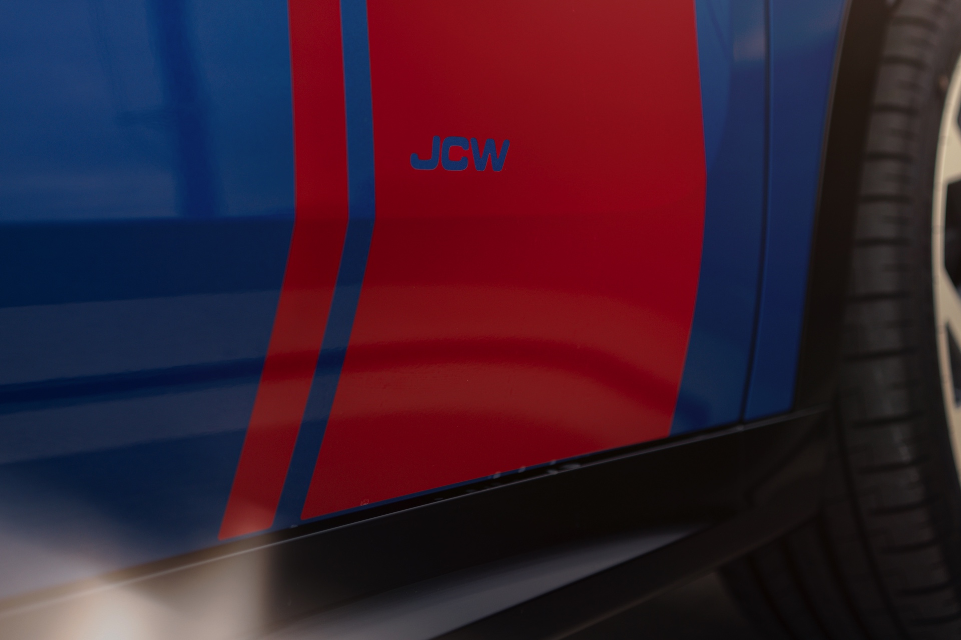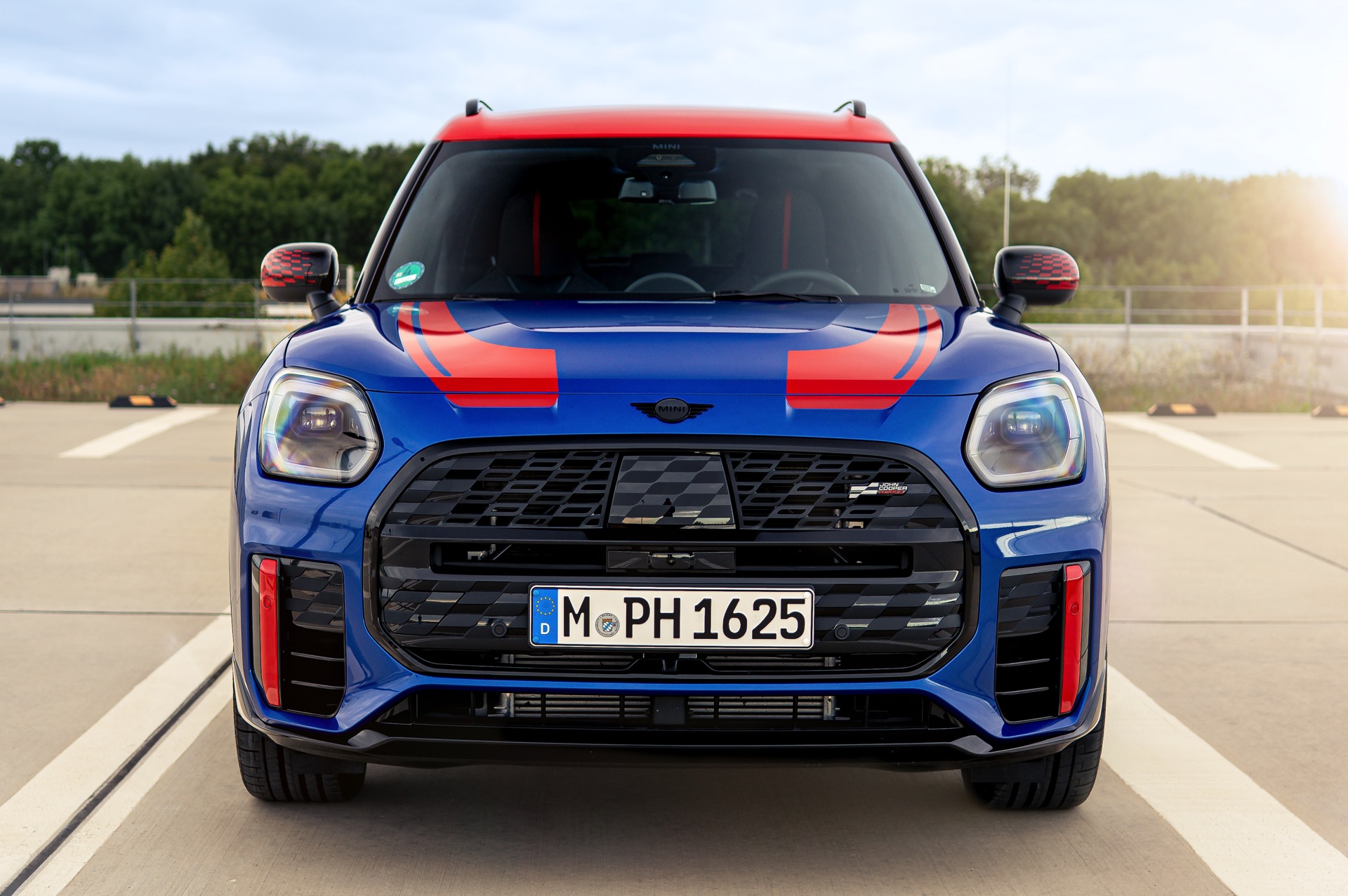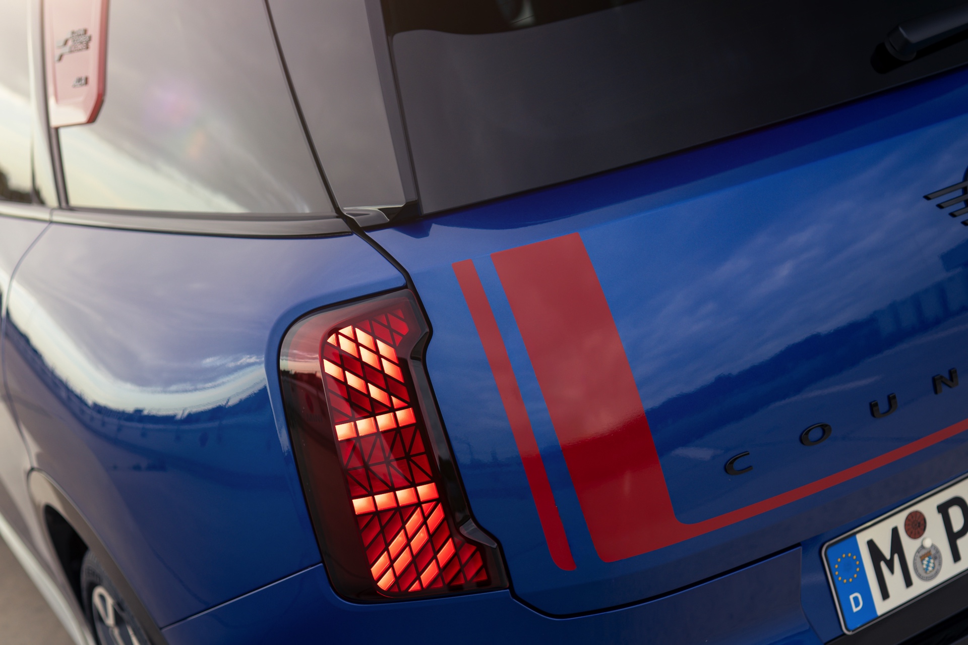 Wenn Superman ein Auto für den Alltag bräuchte, wäre dieser MINI Countryman (U25) die perfekte Wahl: Mit intensivem Blazing Blue und leuchtendem Rot greift er die Farben des berühmten Superman-Anzugs auf, weshalb die Suche nach einem Spitznamen für das Showcar nicht lange gedauert haben dürfte. Bei dem von Haberkorn Photography in Szene gesetzten John Cooper Works sind nicht nur Dach und Spiegelkappen sowie Details wie die senkrechten Air Curtain-Blenden in der Frontschürze in Rot lackiert, auch die Sport Stripes auf der Motorhaube und auf den vorderen Türen leuchten in Rot.