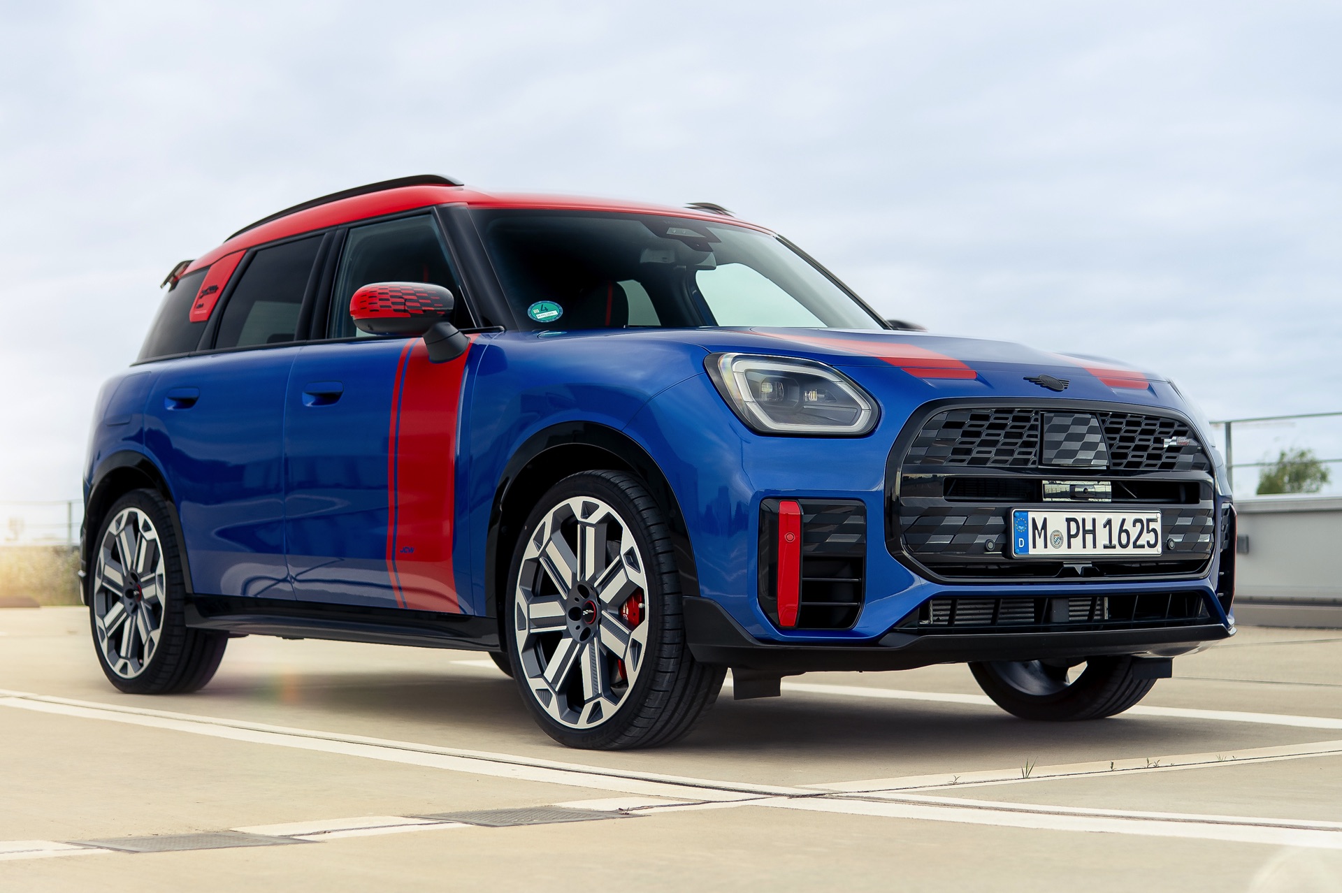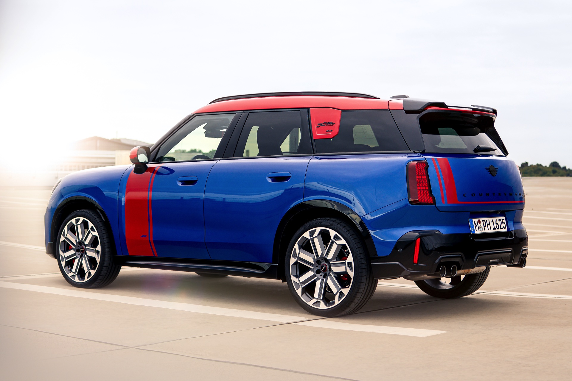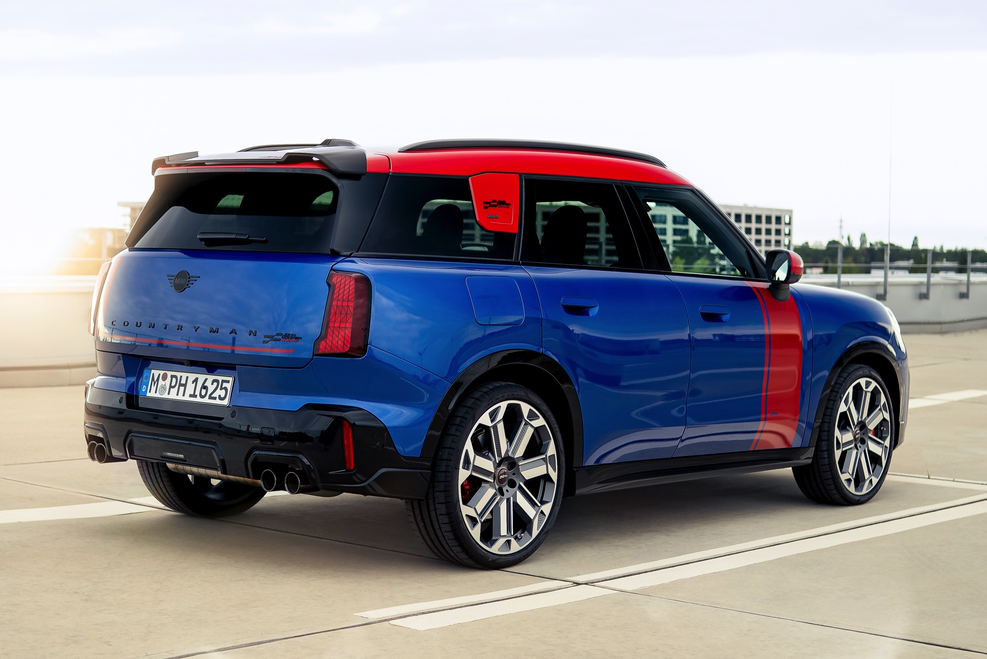 Wenn Superman ein Auto für den Alltag bräuchte, wäre dieser MINI Countryman (U25) die perfekte Wahl: Mit intensivem Blazing Blue und leuchtendem Rot greift er die Farben des berühmten Superman-Anzugs auf, weshalb die Suche nach einem Spitznamen für das Showcar nicht lange gedauert haben dürfte. Bei dem von Haberkorn Photography in Szene gesetzten John Cooper Works sind nicht nur Dach und Spiegelkappen sowie Details wie die senkrechten Air Curtain-Blenden in der Frontschürze in Rot lackiert, auch die Sport Stripes auf der Motorhaube und auf den vorderen Türen leuchten in Rot.