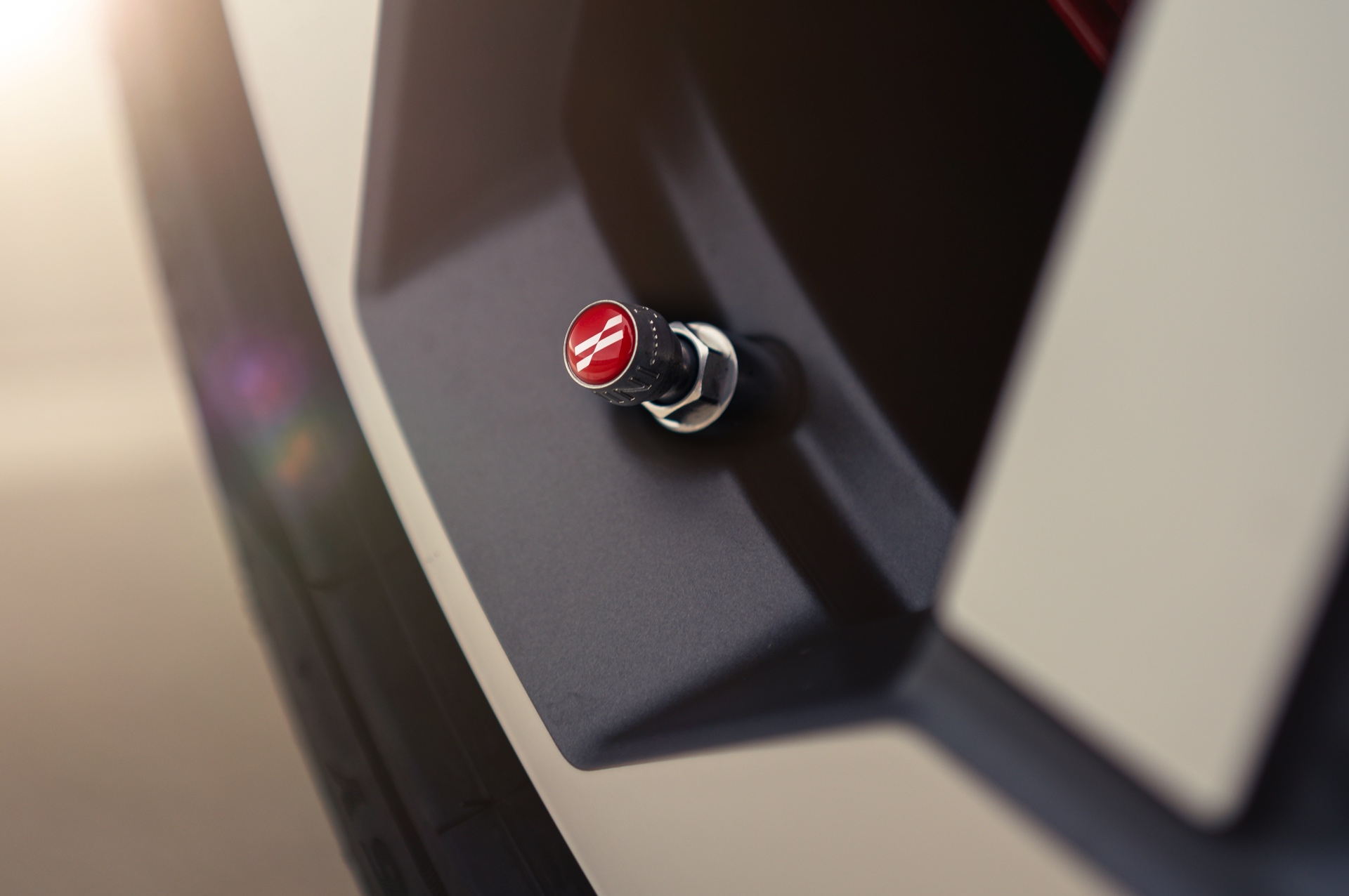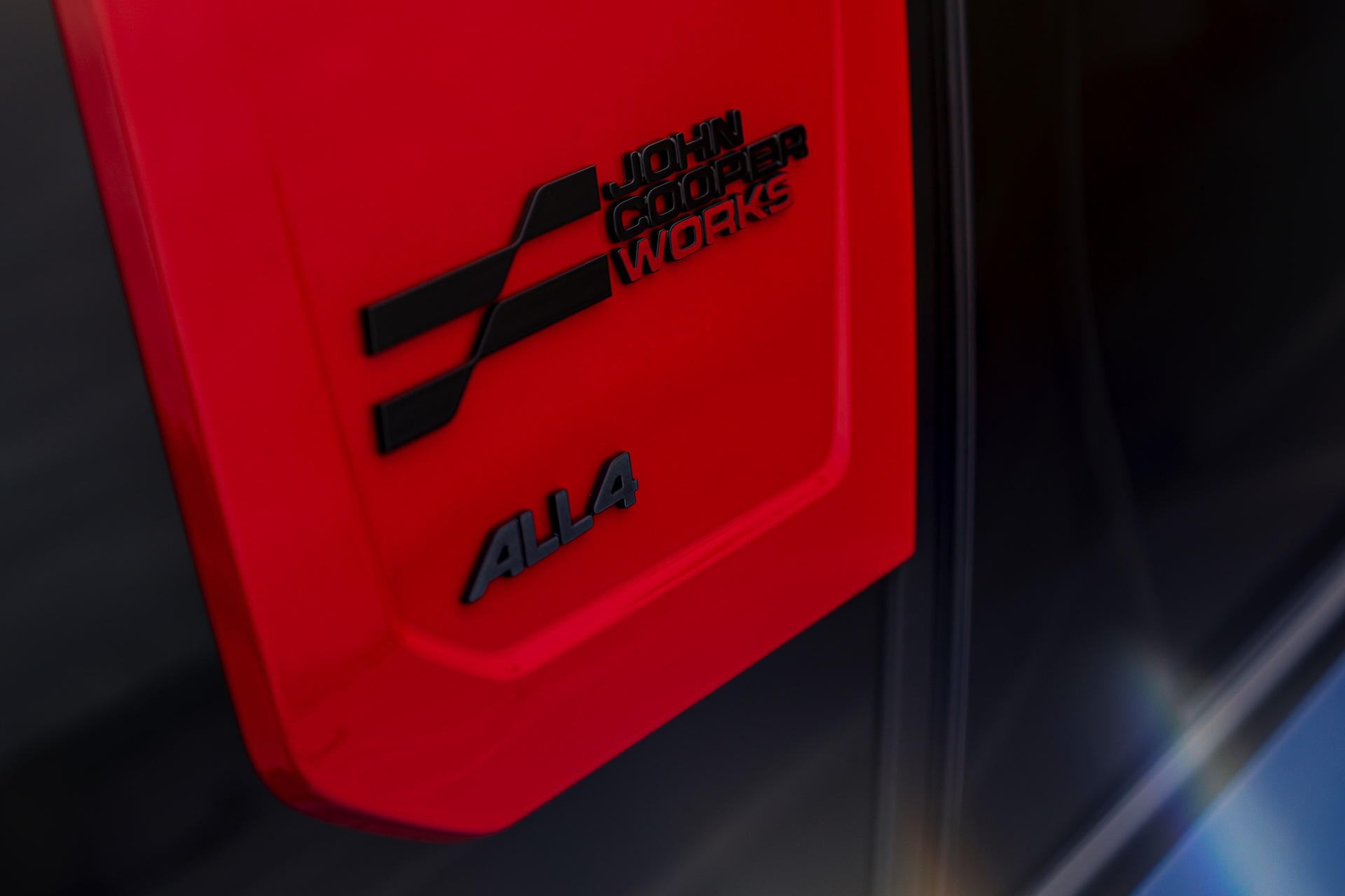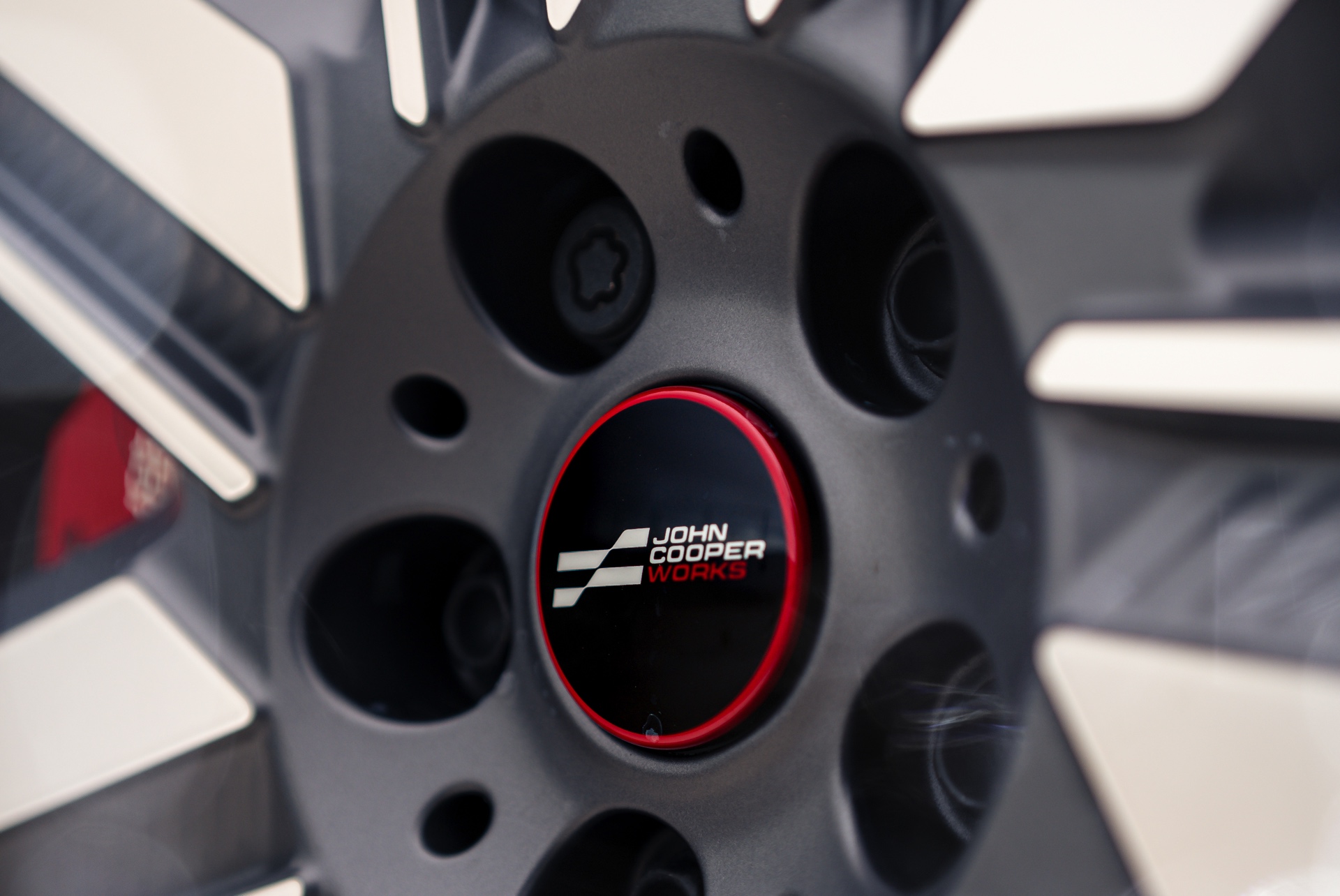 Seine Muskeln stellt der Countryman ebenfalls besonders intensiv zur Schau, denn ergänzend zum markanten Look des 300 PS starken Topmodells trägt er auch einige Komponenten aus dem JCW Tuning-Zubehör. Besonders fallen dabei die 21 Zoll großen Leichtmetallräder JCW Rallye Spoke 950 mit ihrem Bicolor-Finish samt Elementen in Frozen Gunmetal Grey ins Auge. Die John Cooper Works-Felgen sind über das MINI Zubehör als Komplett-Radsatz für 3.950 Euro bestellbar und sind rundum mit Pirelli P-Zero in 245 Millimetern Breite bezogen. Weiter veredeln lassen sich die Räder mit JCW-Ventilkappen, die einen weiteren kleinen Akzent in Rot setzen.