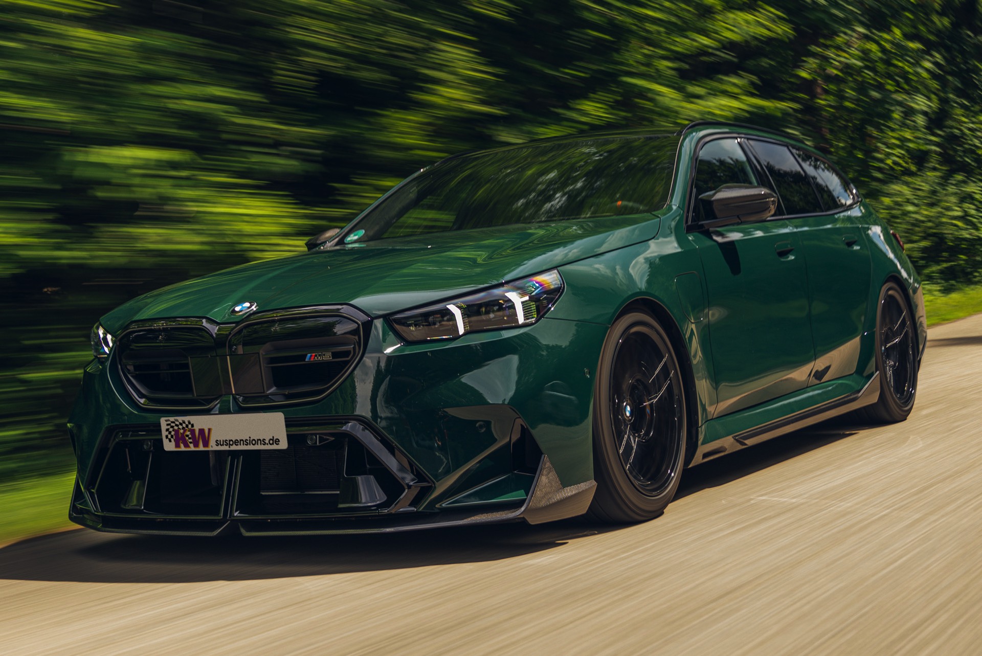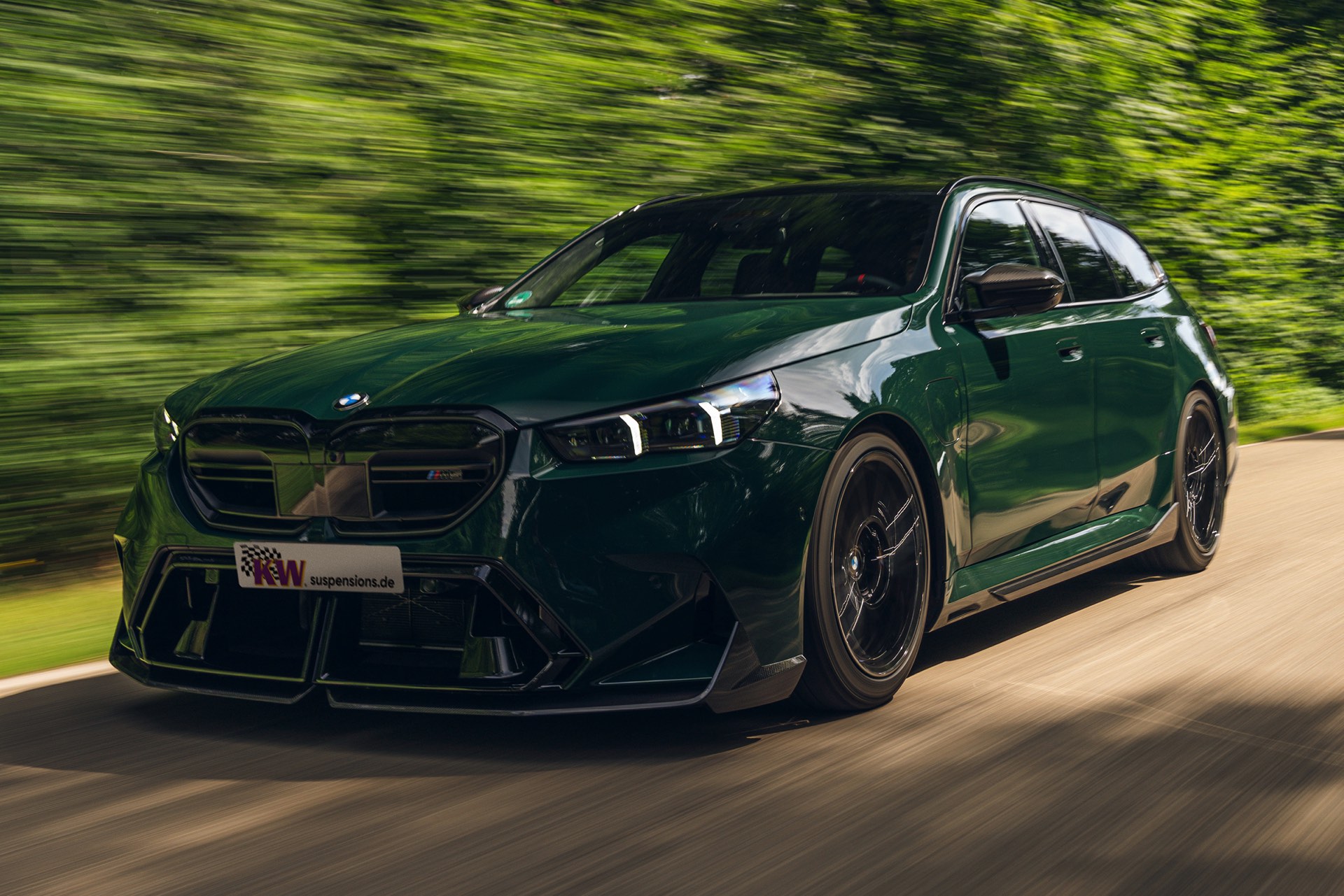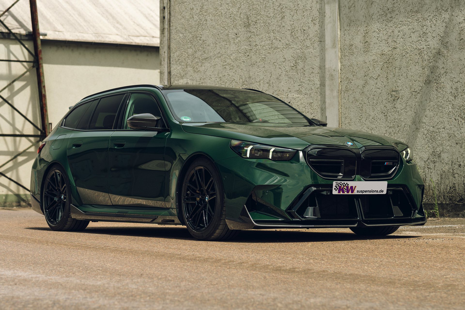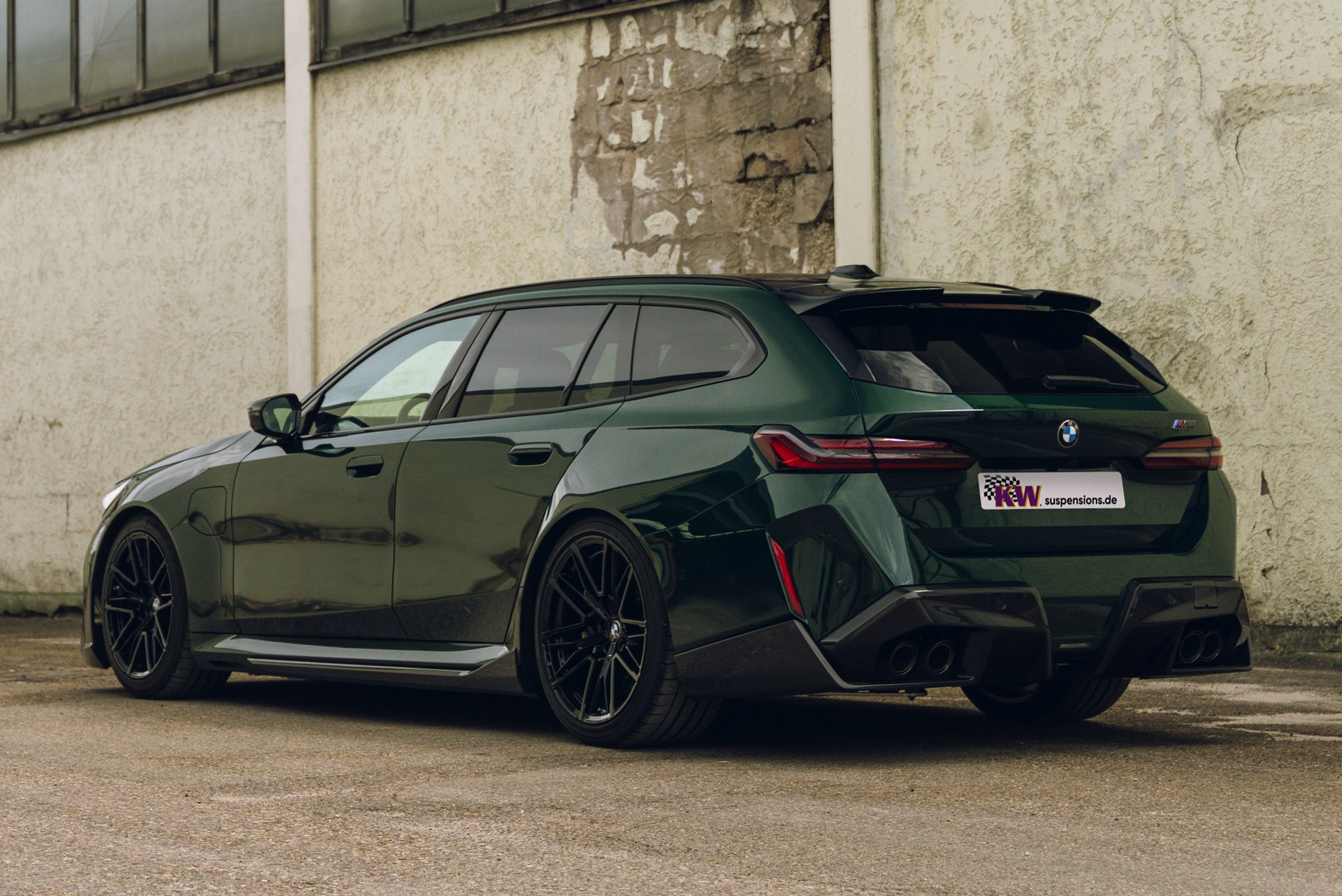 Allein seine imposanten 727 PS und 1.000 Newtonmeter Drehmoment machen den BMW M5 Touring (G99) zu einem absolut atemberaubenden Kombi, aber je nach Konfiguration kann der V8-Hybrid die Sphären gewöhnlicher Kombis noch ein gutes Stück weiter hinter sich lassen. Die Fahrwerks-Experten von KW Automotive zeigen uns den Power-Kombi nun nicht nur mit einem vielfach einstellbaren Gewindefahrwerk vom Typ V4, sondern auch mit einer Individual-Lackierung in British Racing Green (Farbcode 312).