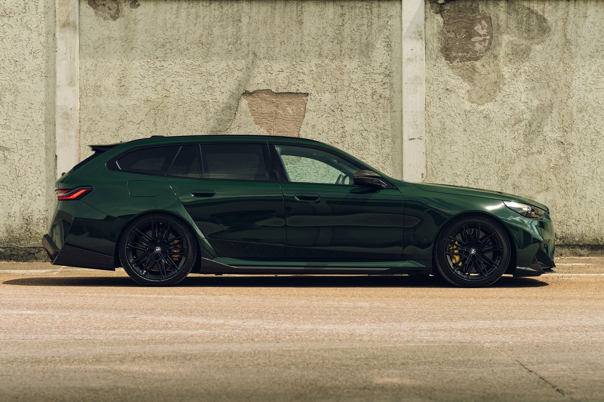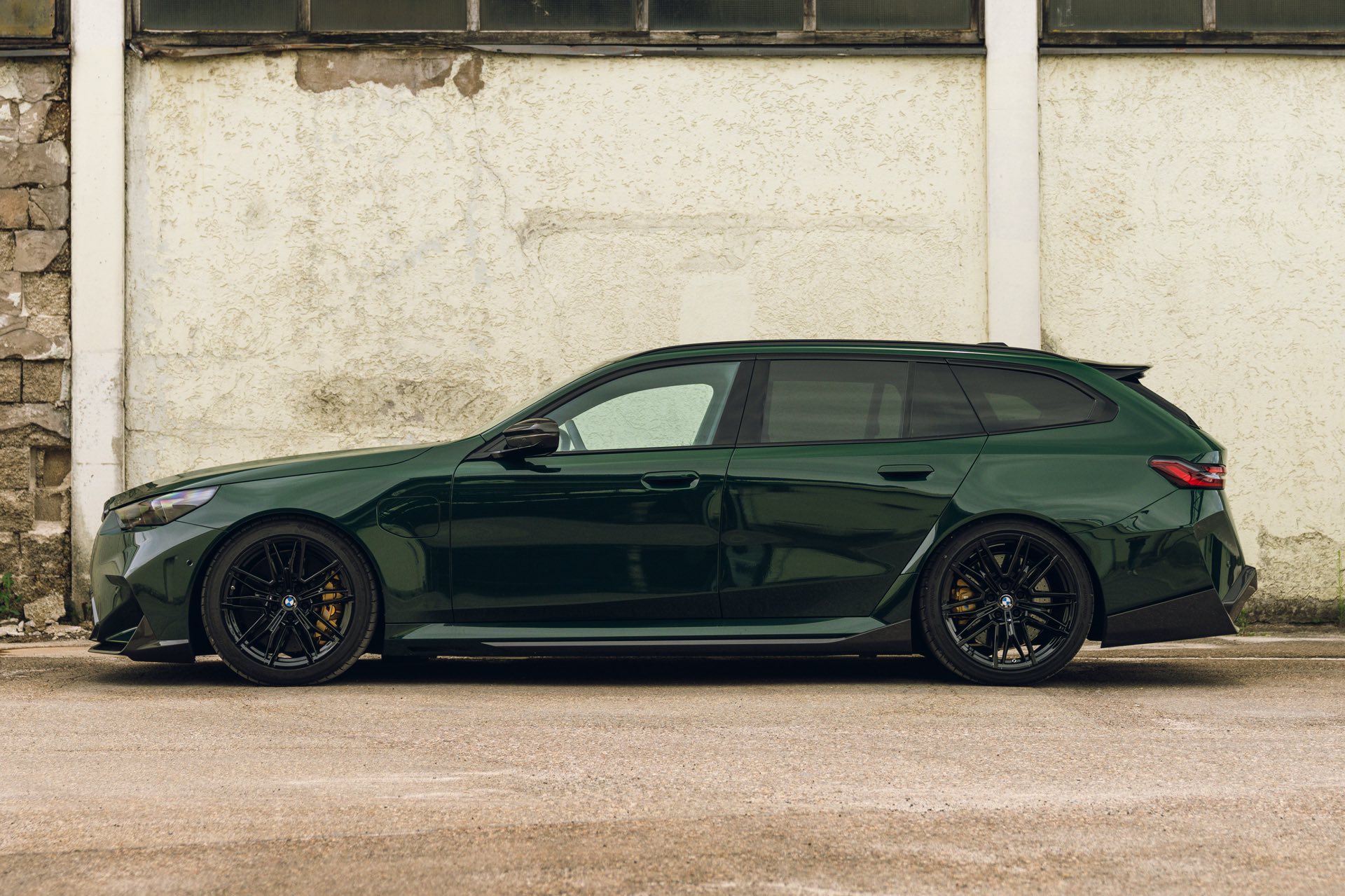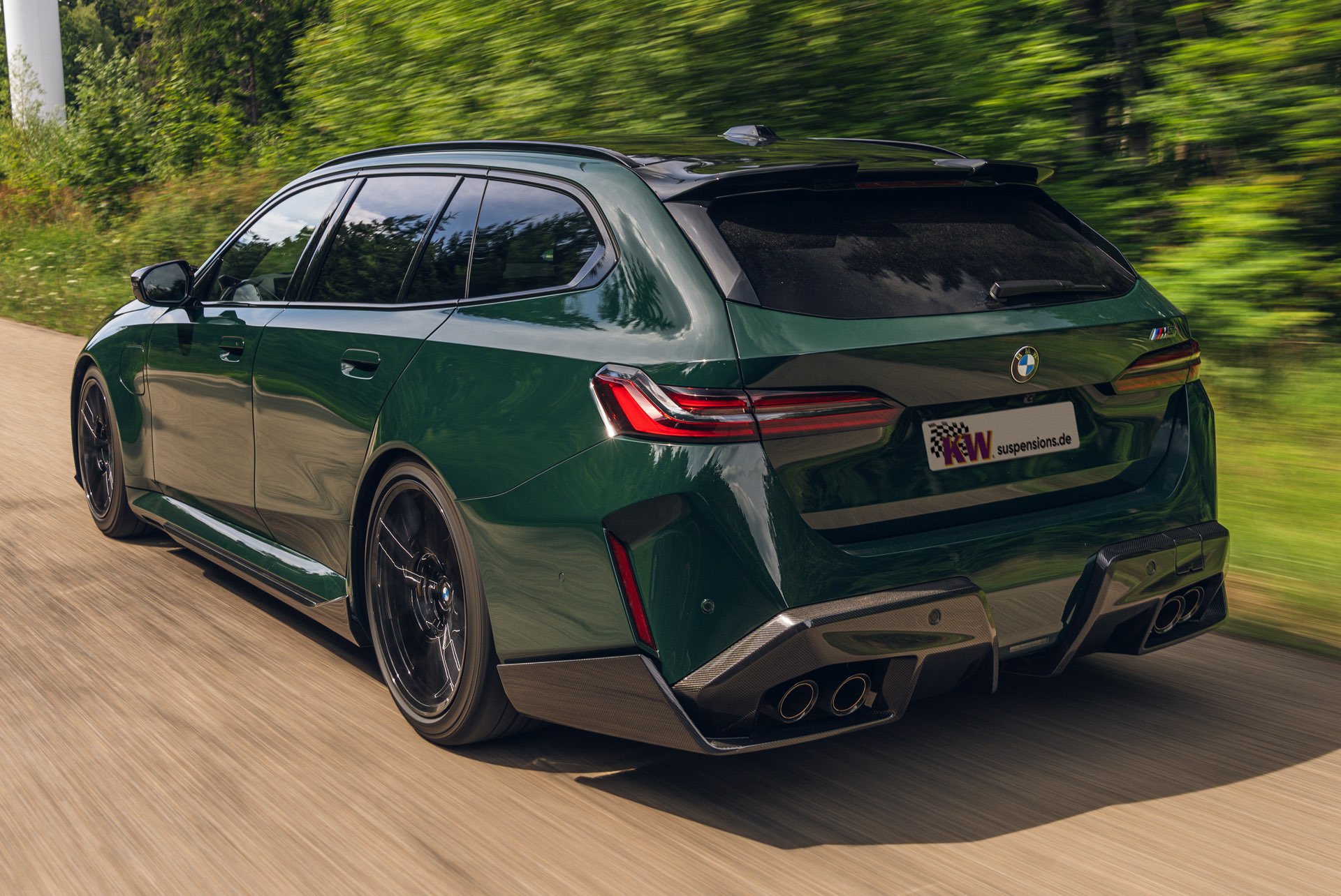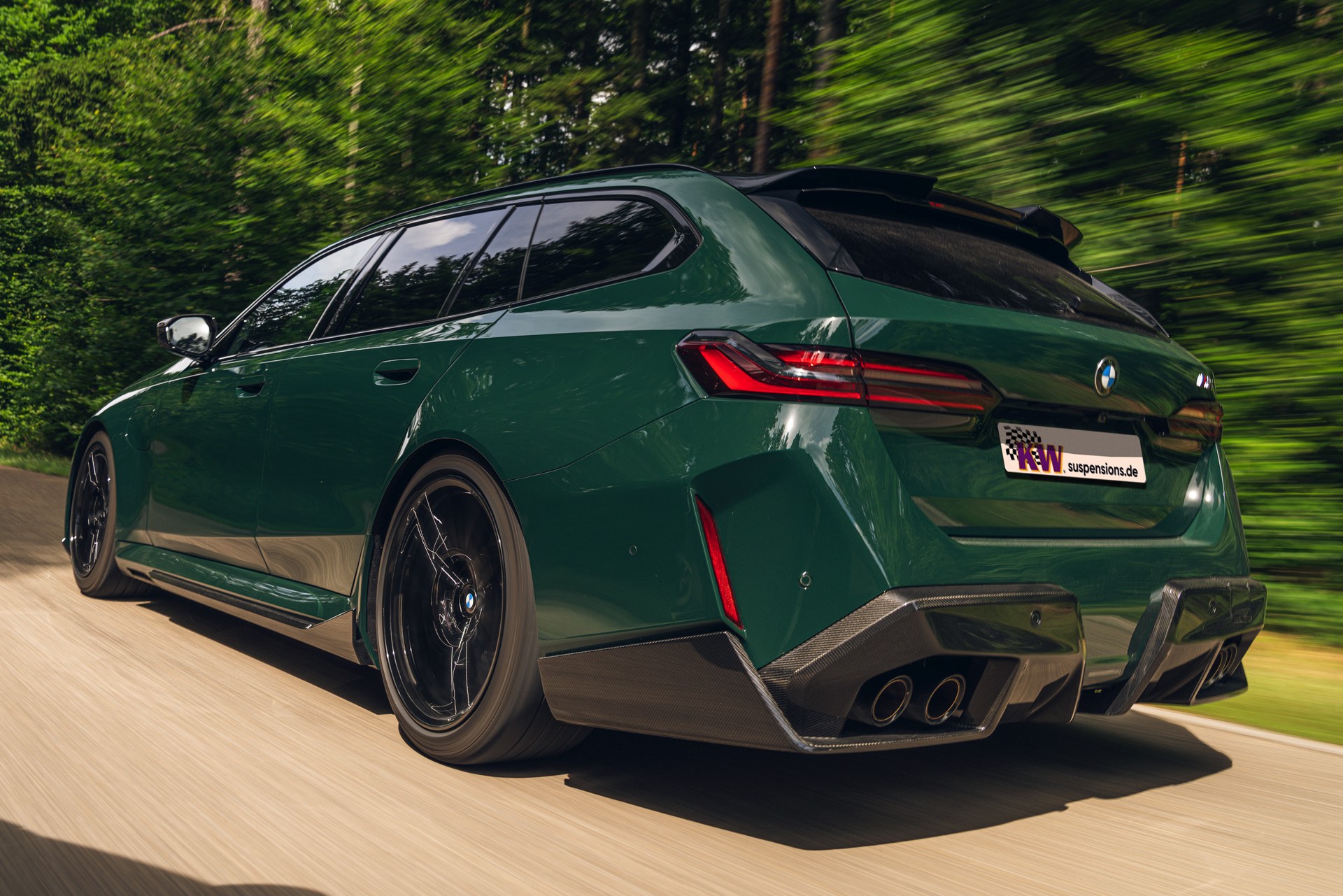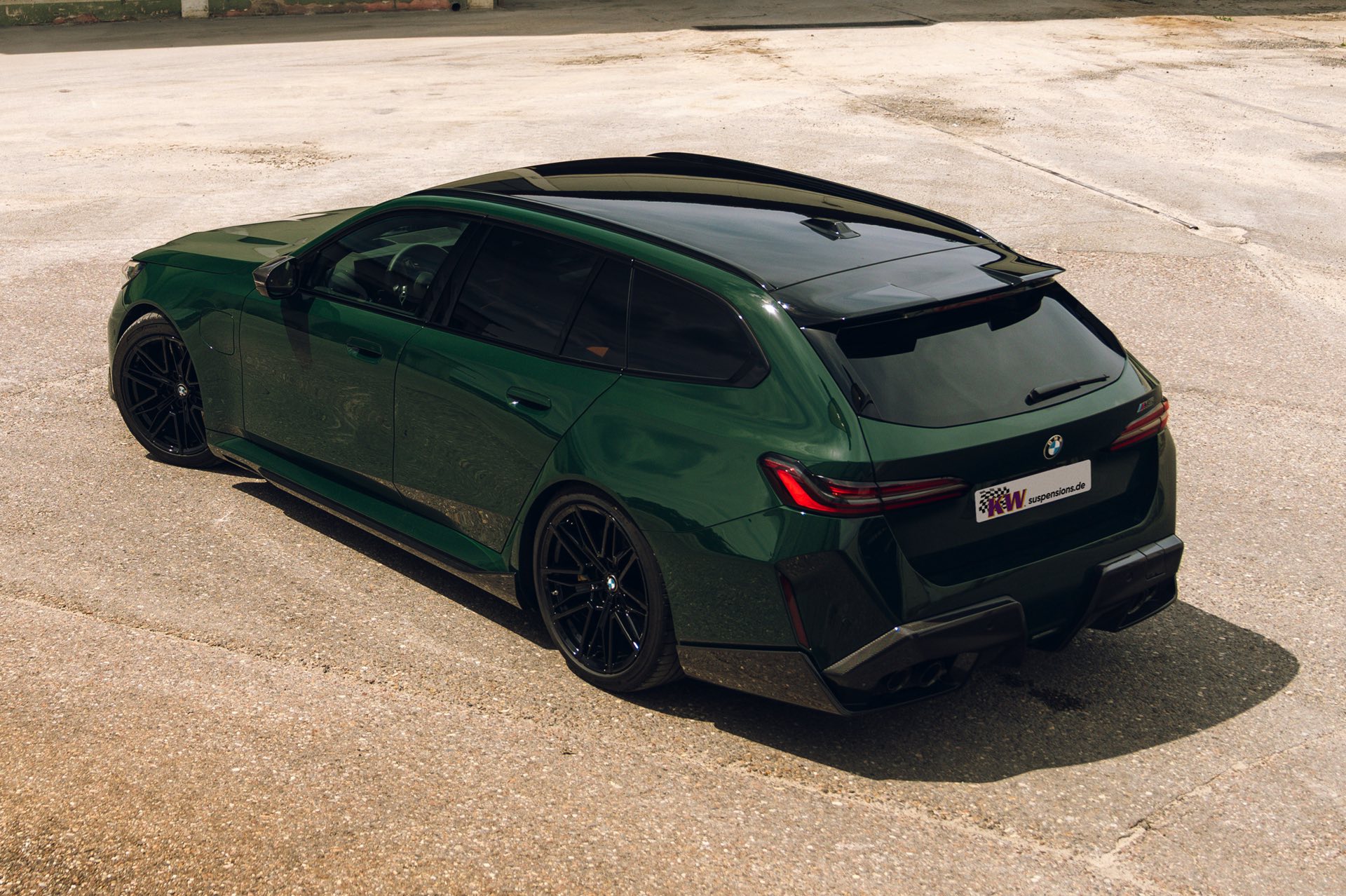 Allein seine imposanten 727 PS und 1.000 Newtonmeter Drehmoment machen den BMW M5 Touring (G99) zu einem absolut atemberaubenden Kombi, aber je nach Konfiguration kann der V8-Hybrid die Sphären gewöhnlicher Kombis noch ein gutes Stück weiter hinter sich lassen. Die Fahrwerks-Experten von KW Automotive zeigen uns den Power-Kombi nun nicht nur mit einem vielfach einstellbaren Gewindefahrwerk vom Typ V4, sondern auch mit einer Individual-Lackierung in British Racing Green (Farbcode 312).
