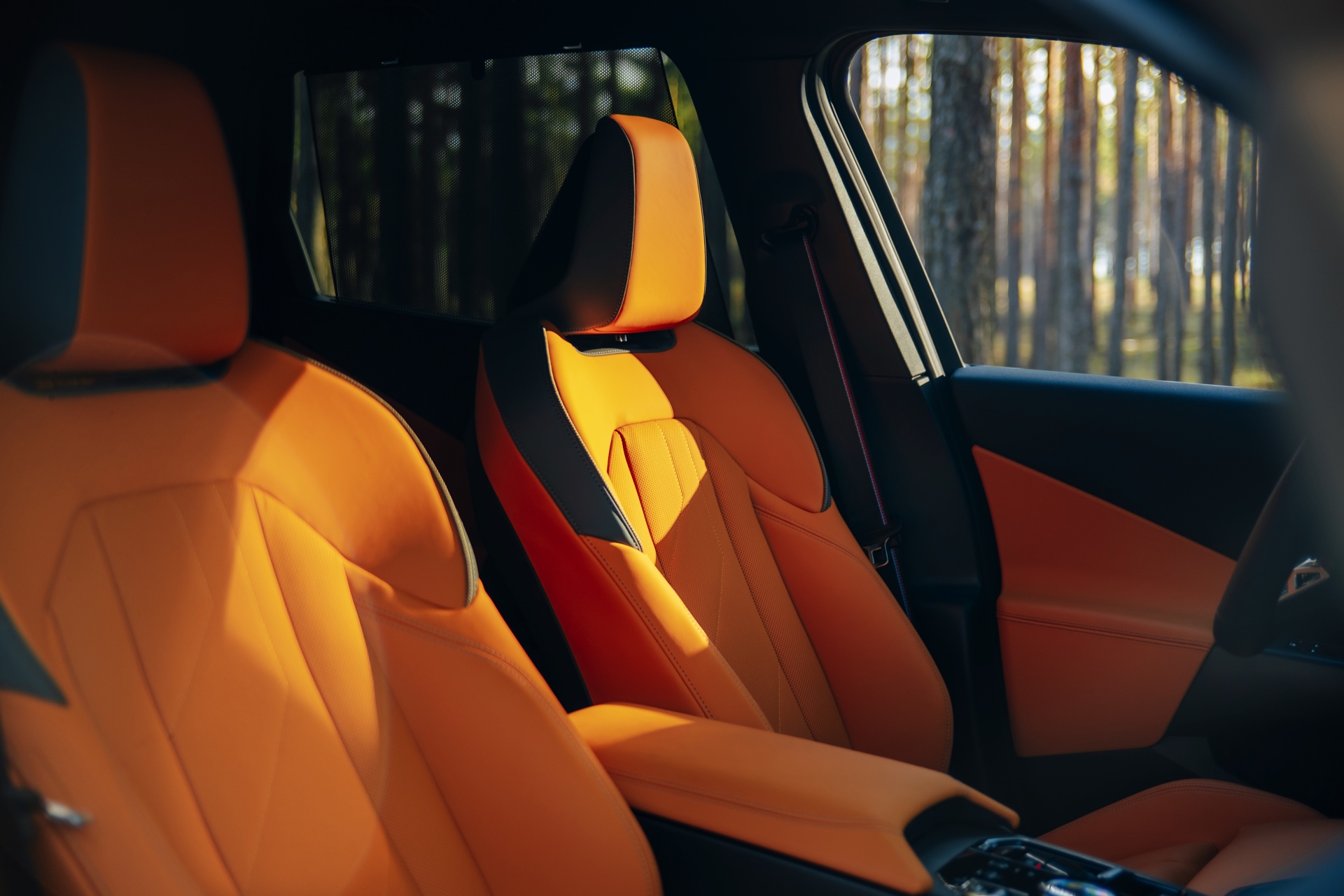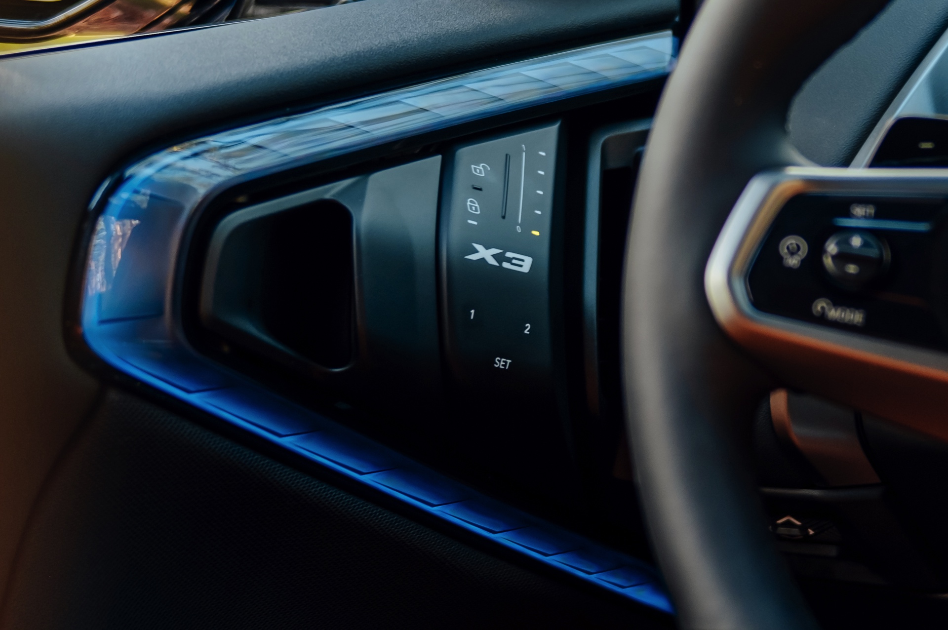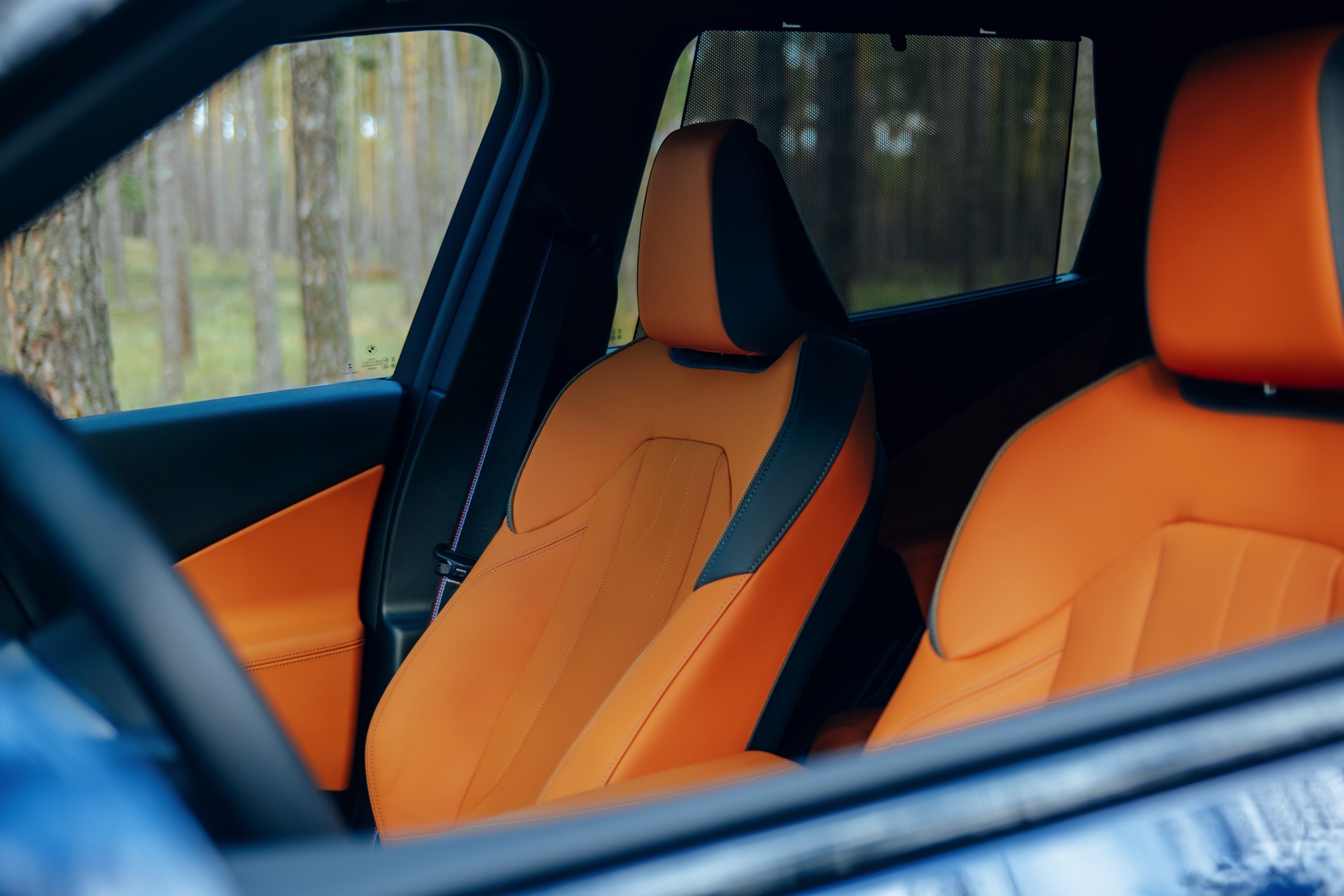 Hochwertig präsentiert sich auch die Innenraum-Konfiguration: Der BMW X3 40d trägt die BMW Individual Bicolor-Leder-Ausstattung ‘Merino’ in warmem Bernstein und Atlasgrau, bei den Interieurleisten sehen wir die dunkle Edelholzausführung Magnolie. Dank Innovations-, Comfort- und Premium-Paket kommt der X3 außerdem mit Aktiver Sitzbelüftung, Harman Kardon Surround Sound System und weiteren hochwertigen Features.