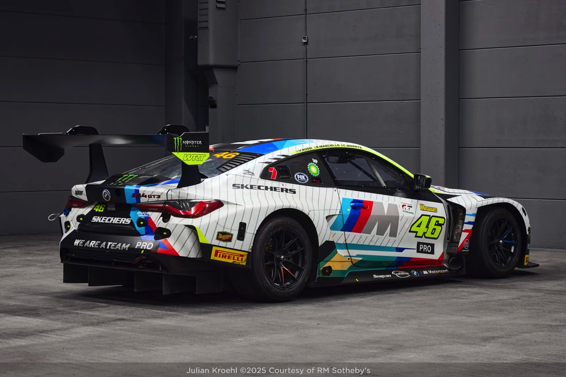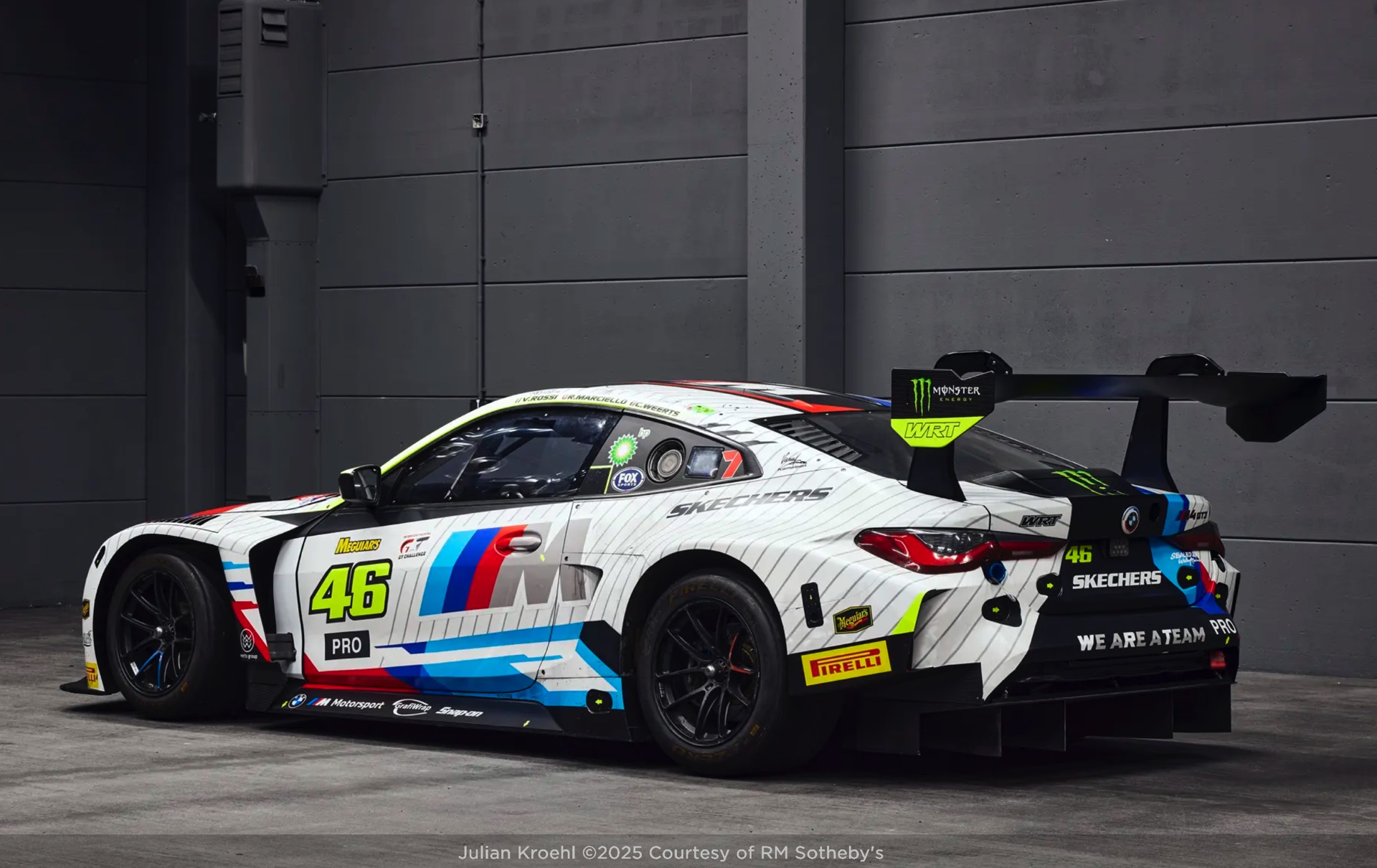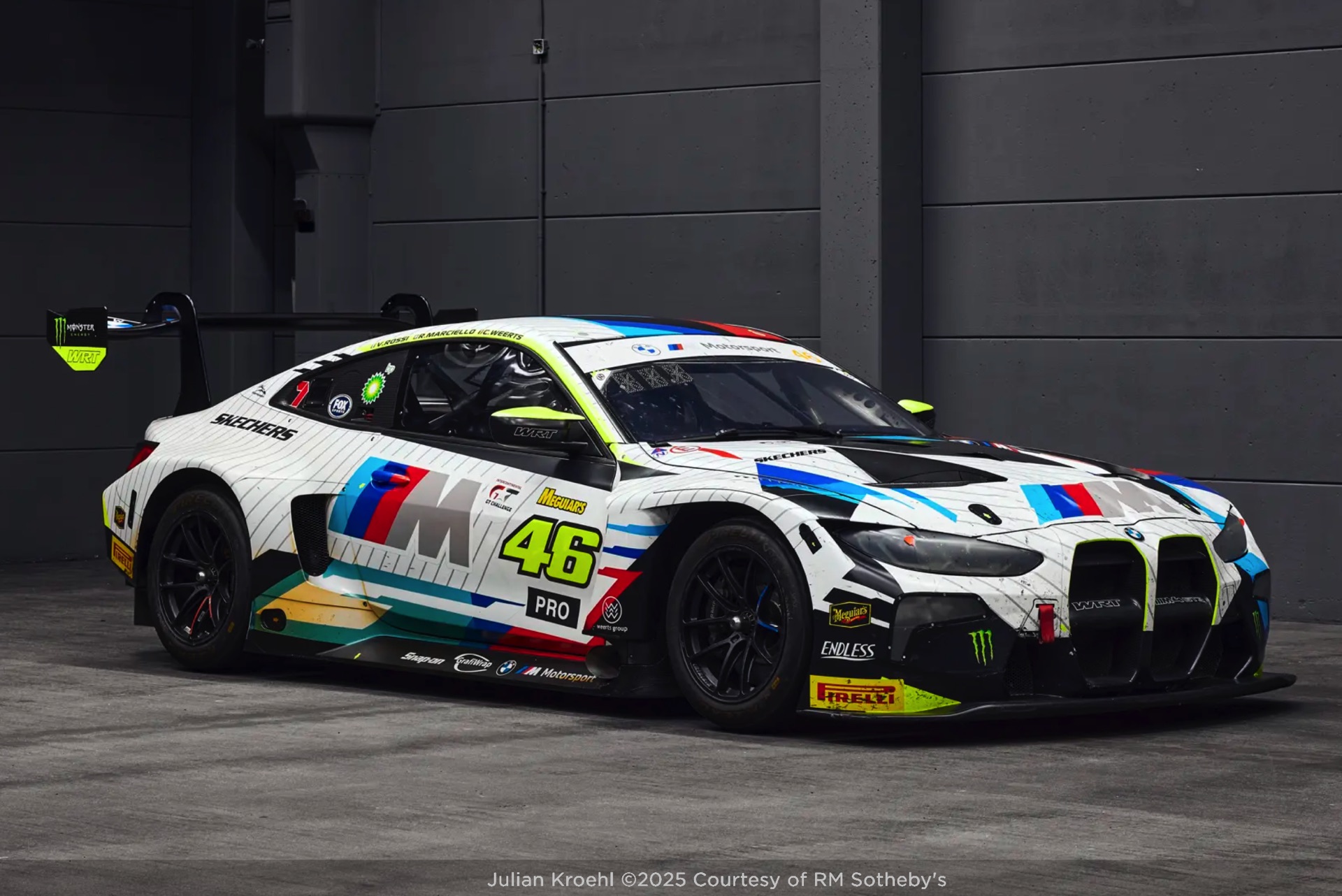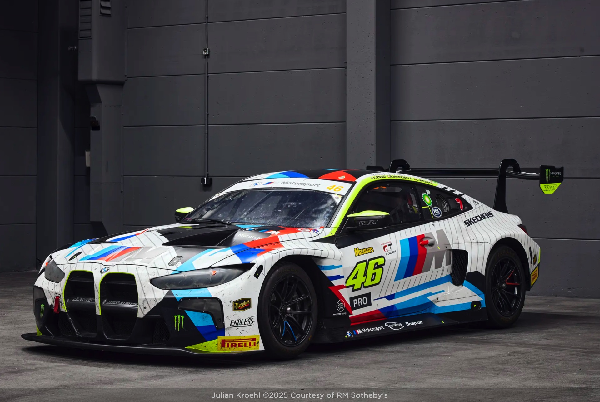 Den Traum vom eigenen Rennwagen haben unzählige Jungs und Mädchen, doch bei den meisten Erwachsenen setzt früher oder später Ernüchterung ein: Ins Cockpit eines BMW M4 GT3 oder vergleichbar scharfer Boliden kommen nur die allerwenigsten, auch wenn der Wunsch noch so stark ist. Noch verwegener wird der Traum, wenn man sich in gewisser Weise ein Cockpit mit einer Rennsport-Legende wie Valentino Rossi teilen will – und doch kann genau dieser Traum bald Realität werden, denn bei der kommenden Münchner Auktion von RM Sotheby’s wird BMW Motorsport einen GT3-Rennwagen mit prominenter Historie versteigern lassen.