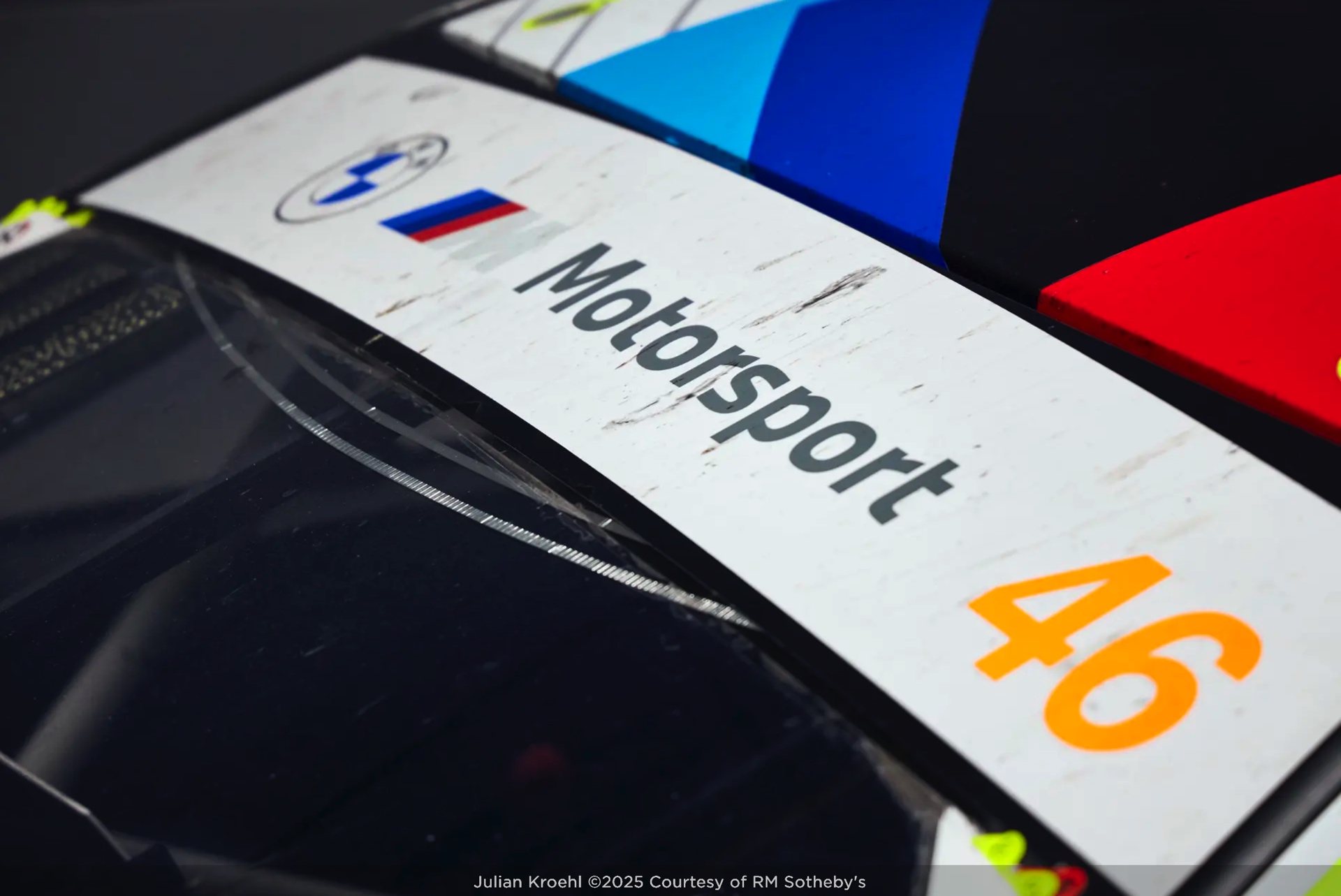 Vom Rennen ‘Down Under’ stammen auch die kleineren Kampfspuren und Verschmutzungen, die der BMW M4 GT3 mit der neongelben Startnummer 46 noch heute trägt: Um das authentische Motorsport-Flair des Boliden zu konservieren, wurde der Rennwagen nach seinem letzten Einsatz von BMW Art Car-Experte Walter Maurer versiegelt. Neben den Unterschriften der Fahrer findet sich deshalb auch Maurers Signet auf dem M4 mit der Chassis-Nummer 22-046.