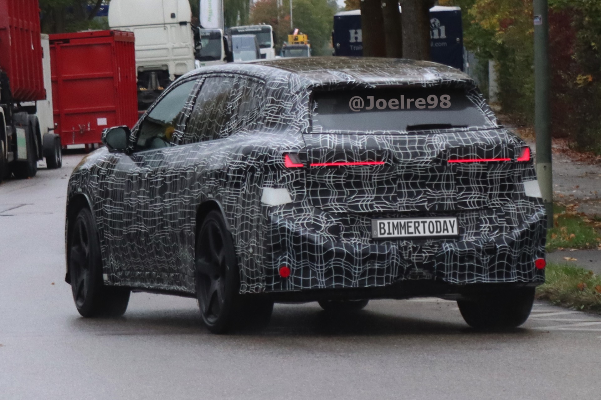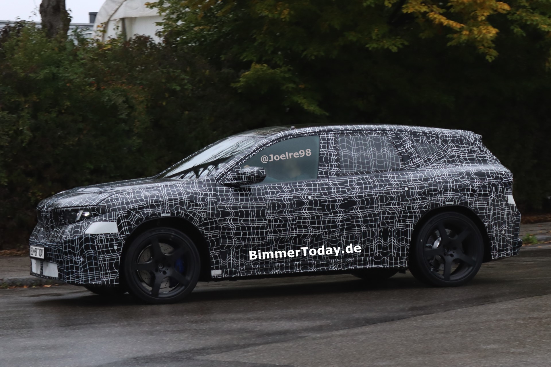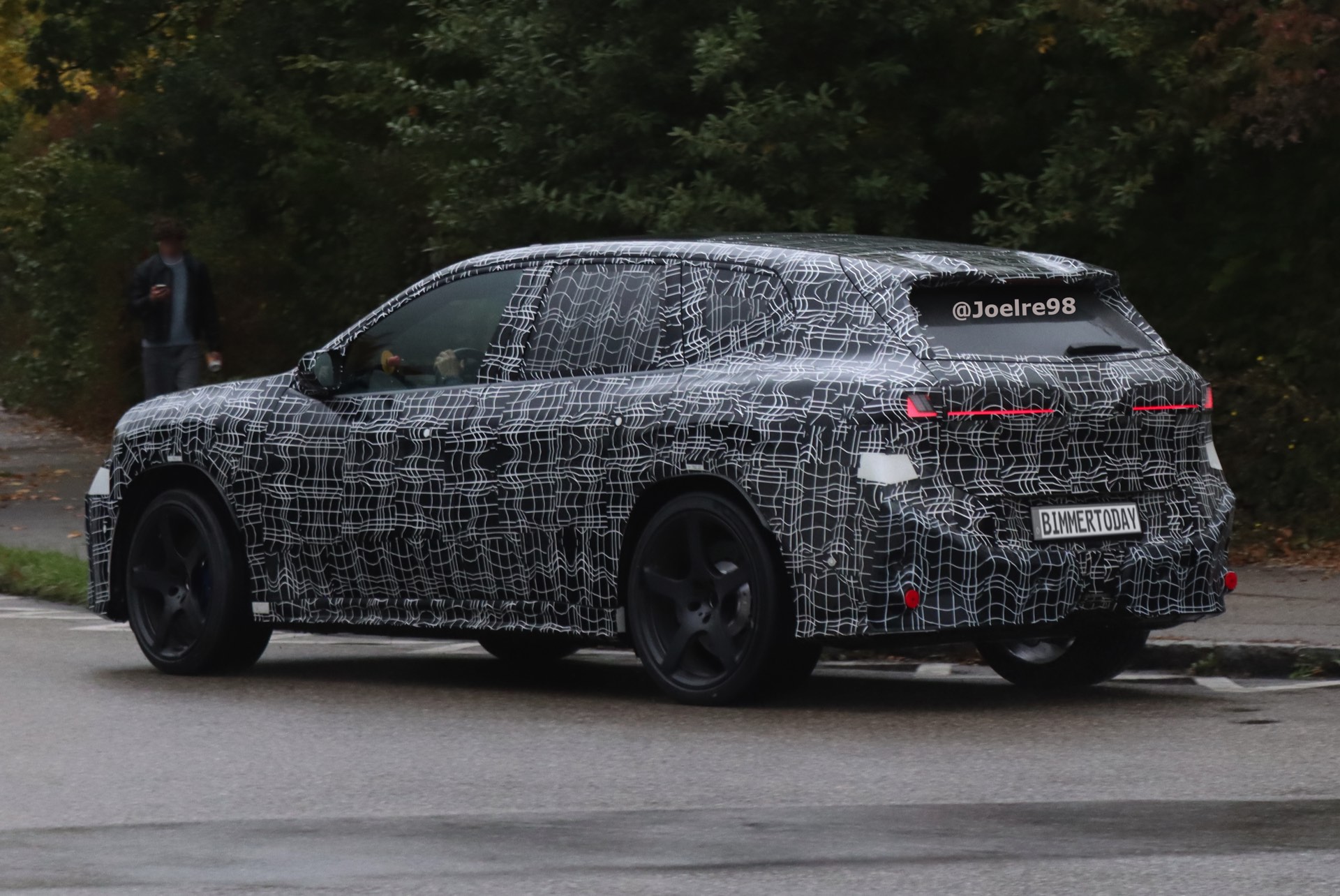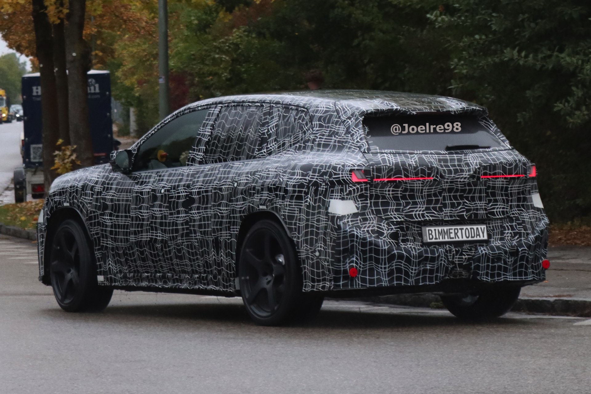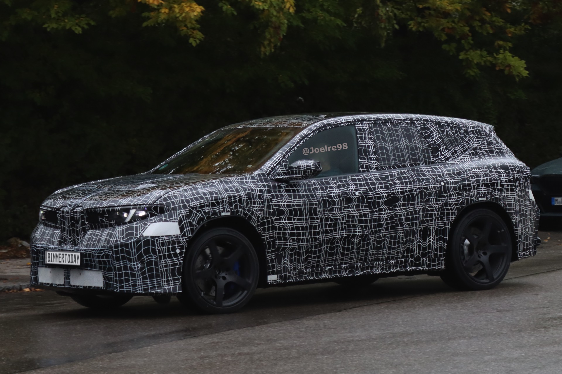 Die M GmbH bereitet ihr zweites Elektroauto mit High Performance-Anspruch vor: Der neue BMW iX3 M (ZA5) wurde jetzt bei Testfahrten im Umfeld der Nürburgring Nordschleife erwischt und verrät sich trotz starker Tarnung eindeutig als Power-SUV mit hohem Anspruch. An der Front fällt vor allem die geänderte Motorhaube mit einer Art Powerdome ins Auge, außerdem trägt der Prototyp auf jeden Fall eine neue Heckschürze mit noch markanter ausgeformtem Diffusor. Hinter den schwarzen Versuchsträger-Felgen sind rundum gelochte Bremsscheiben zu sehen, die ebenfalls deutlich auf den Performance-Anspruch hinweisen. Ob die Kotflügel breiter als beim regulären BMW iX3 (NA5) sind, lässt sich aufgrund der Tarnung nicht mit Sicherheit sagen.