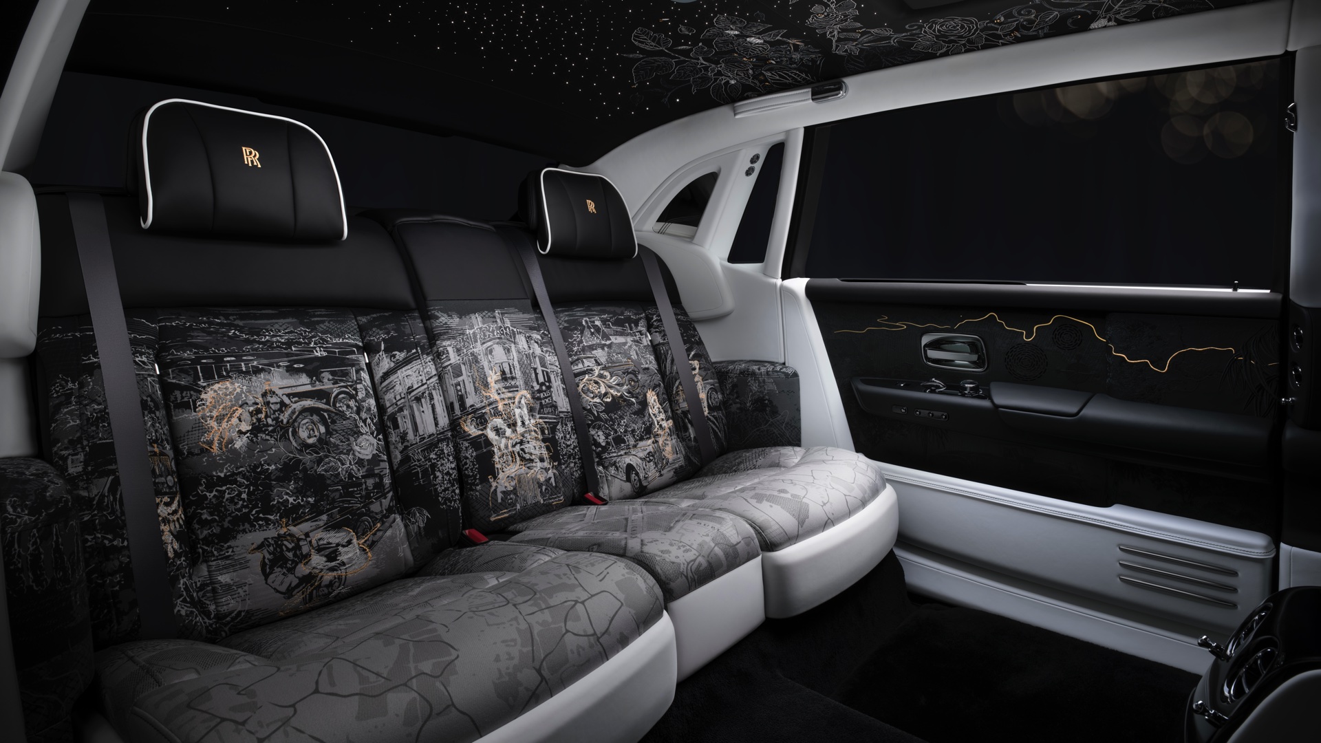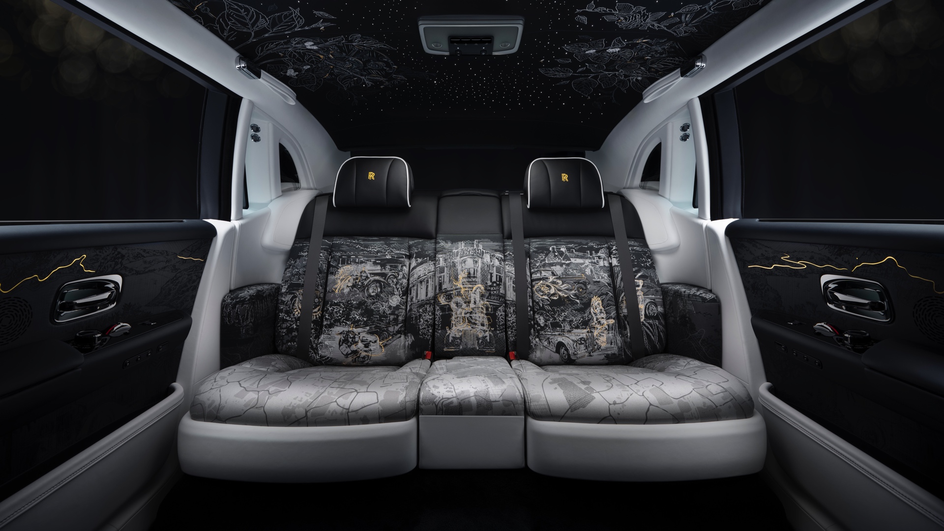 Allein für die Stickereien auf den Rückenlehnen im Fond sind bei jedem Phantom Centenary 160.000 Nadelstiche erforderlich, während die Motive in den Vordersitzen per Laser ins Leder gebrannt werden. Noch deutlich komplexer ist die Arbeit am beleuchteten Starlight-Dachhimmel, für den jeweils 440.000 Nadelstiche gesetzt werden. Wie die Fotos zeigen, kommt für edelste Akzente auch vielerorts Gold zum Einsatz.