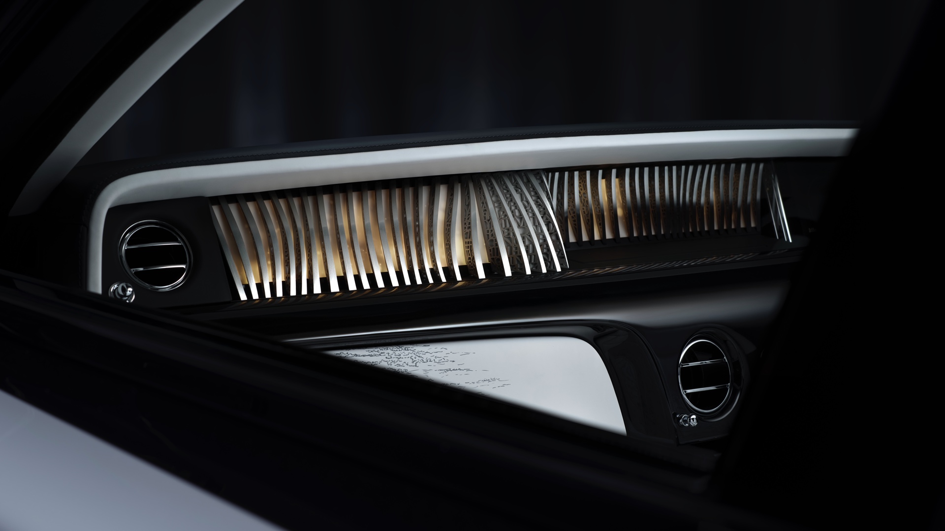 Im Innenraum präsentieren die Experten von Rolls-Royce Bespoke ihr ganzes Können und beschreiten dabei auch mehrere neue Wege. 77 von Hand gezeichnete Motive zeichnen die Entwicklung des Rolls-Royce Phantom in den letzten 100 Jahren nach. Sie wurden hierfür auf unterschiedlichste Art und Weise in das Interieur eingearbeitet und finden sich unter anderem auf den Bezügen der Sitze, den Verkleidungen von Türen und Armaturentafel sowie im Dachhimmel.