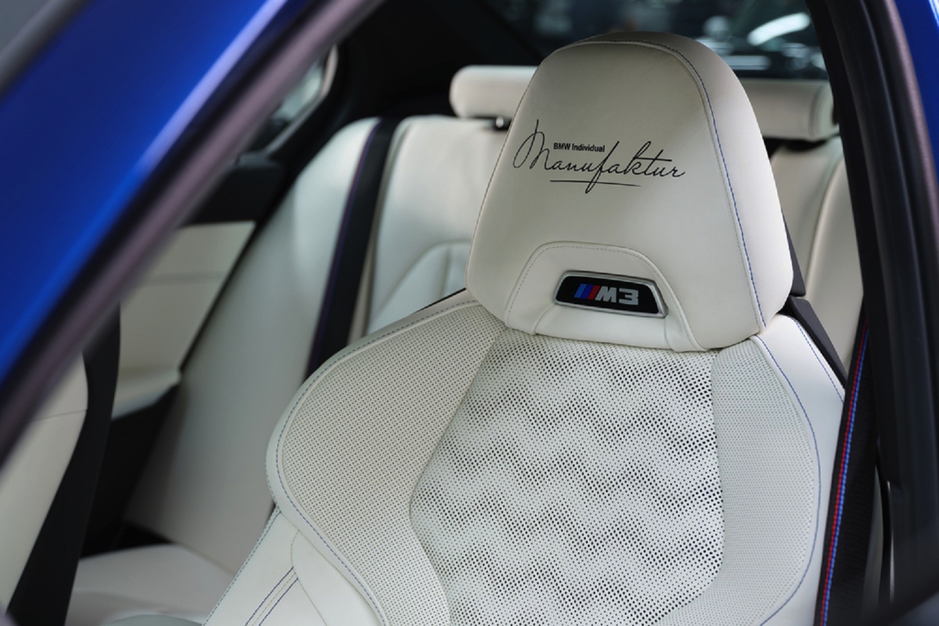 Ebenfalls drei Kunden dürfen sich über die 530 PS starke BMW M3 Competition Special Edition mit Allradantrieb M xDrive freuen, die in Saphirblau Metallic lackiert wird. Hier findet sich das Individual Manufaktur-Logo direkt oberhalb der beleuchteten M3-Logos in den Lehnen der Sportsitze.