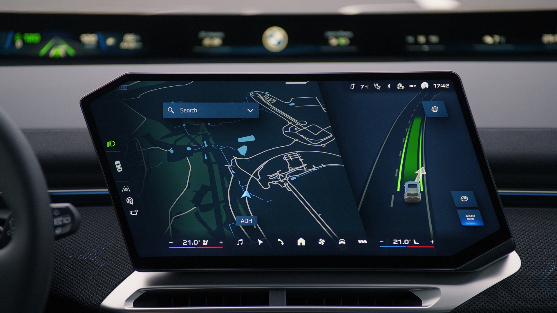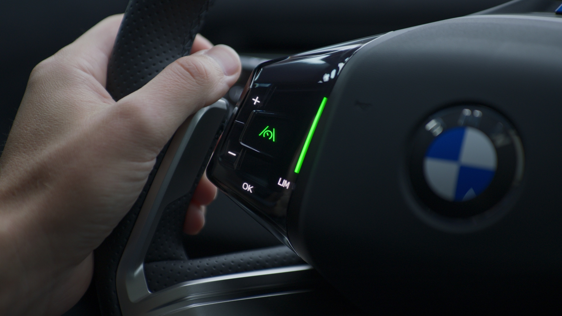 Mit der Neuen Klasse erweitert BMW den einst mit dem aktuellen 5er (G60) eingeführten und inzwischen bei einer Vielzahl von Modellen angebotenen Autobahnassistent (Level 2+) um zusätzliche Funktionen. Schon bisher konnte ein BMW mit entsprechender Hard- und Software auf geeigneten Straßen bei offiziell bis zu 130 km/h (de facto sind auch 135 km/h möglich) die Steuerung komplett übernehmen und dabei auch Spurwechsel zum Überholen vorschlagen, die nur durch einen intuitiven Blick in den Außenspiegel freigegeben werden müssen. Der Fahrer kann dabei dauerhaft und ohne zeitliche Einschränkung die Hände vom Lenkrad nehmen, so lange er aufmerksam bleibt. Künftig meistert das System bei aktiver Zielführung auch Autobahnkreuze und -Abfahrten, inklusive im Vorfeld vorgeschlagener Wechsel auf die rechte Spur und die Abfahrt. Auch hierbei genügt ein simpler Blick in den rechten Außenspiegel als Bestätigung.