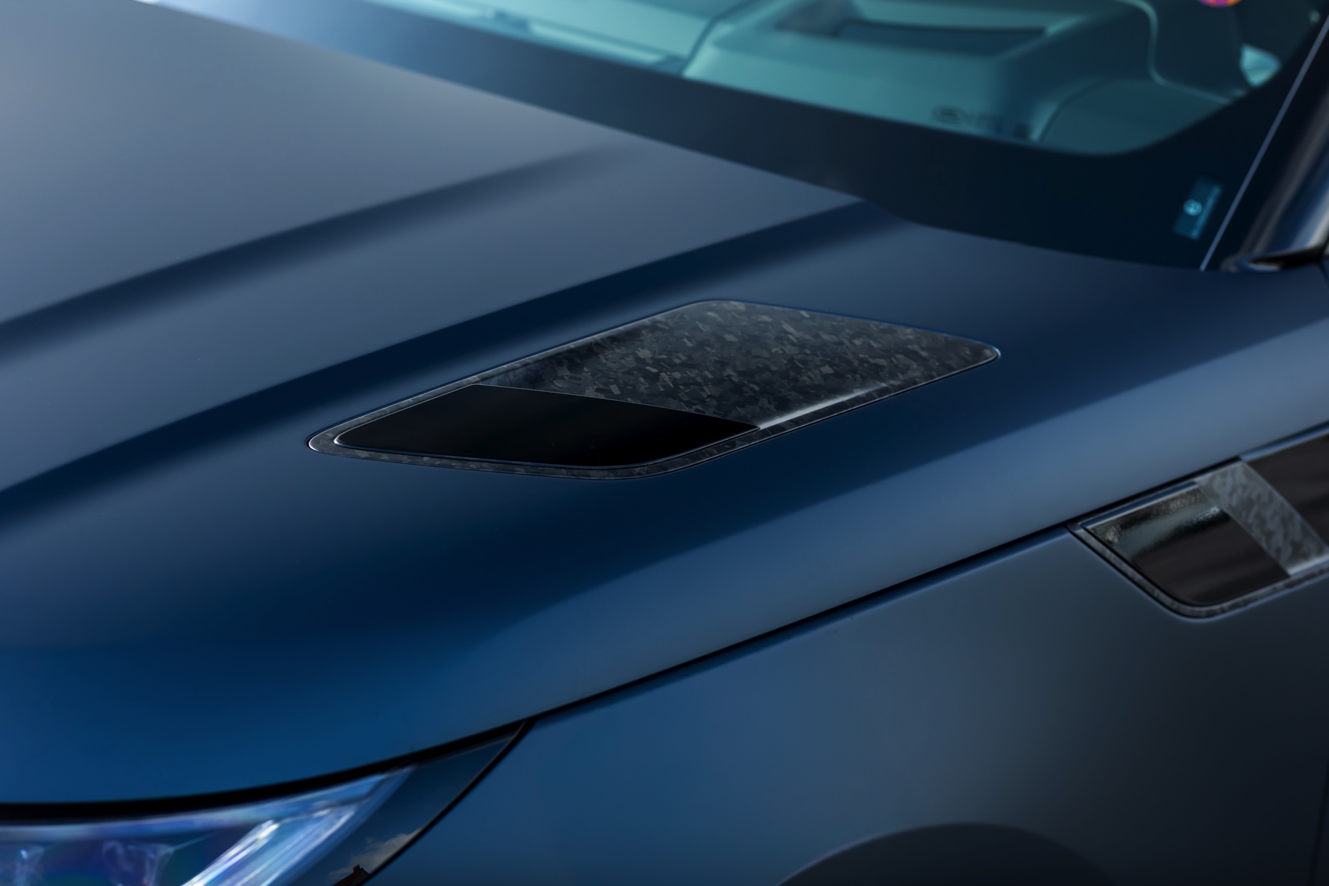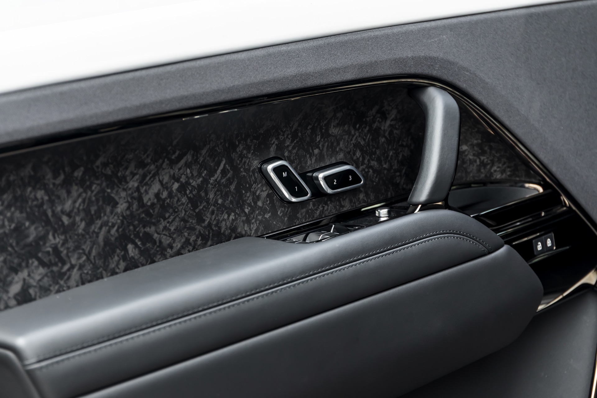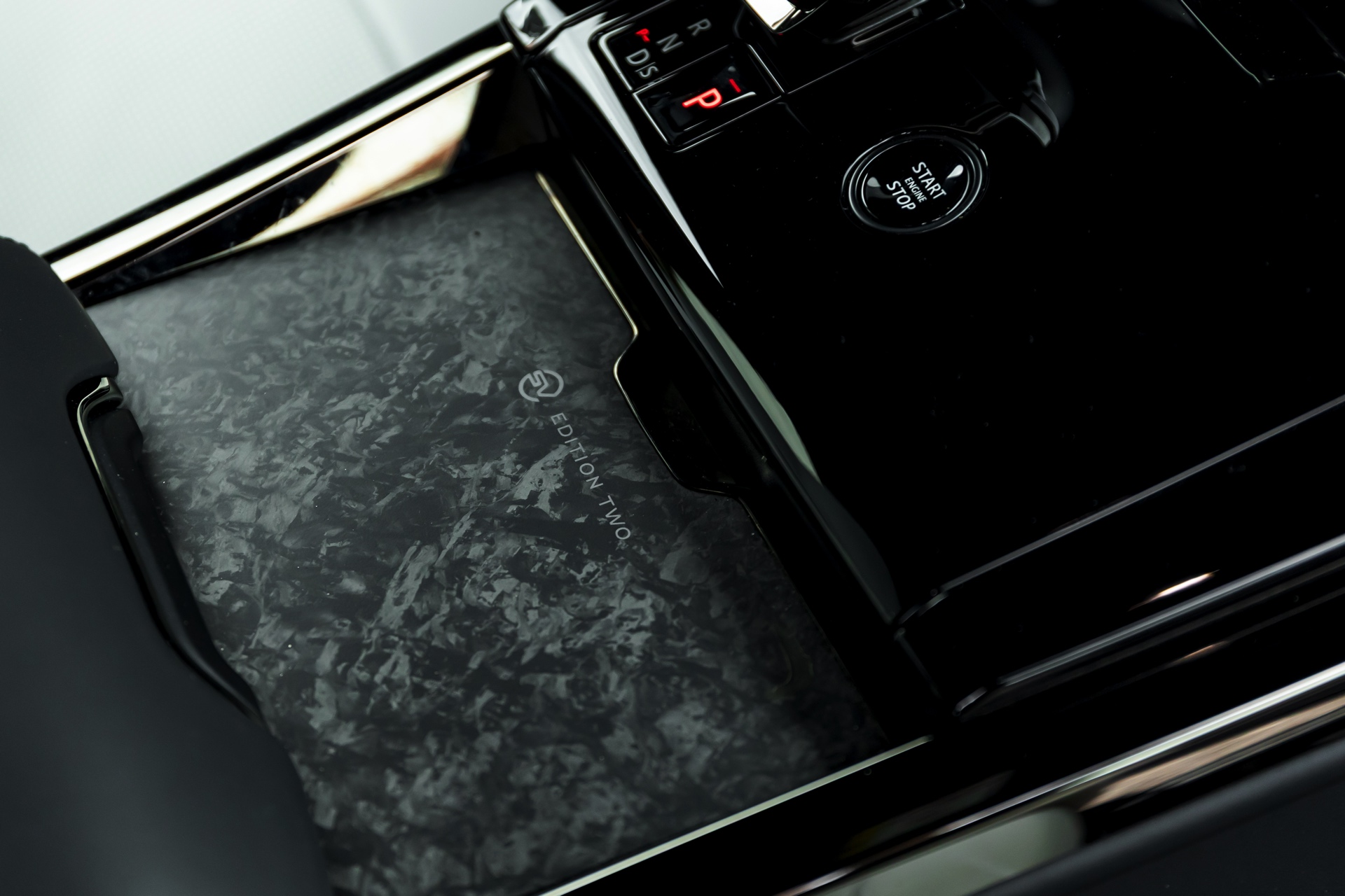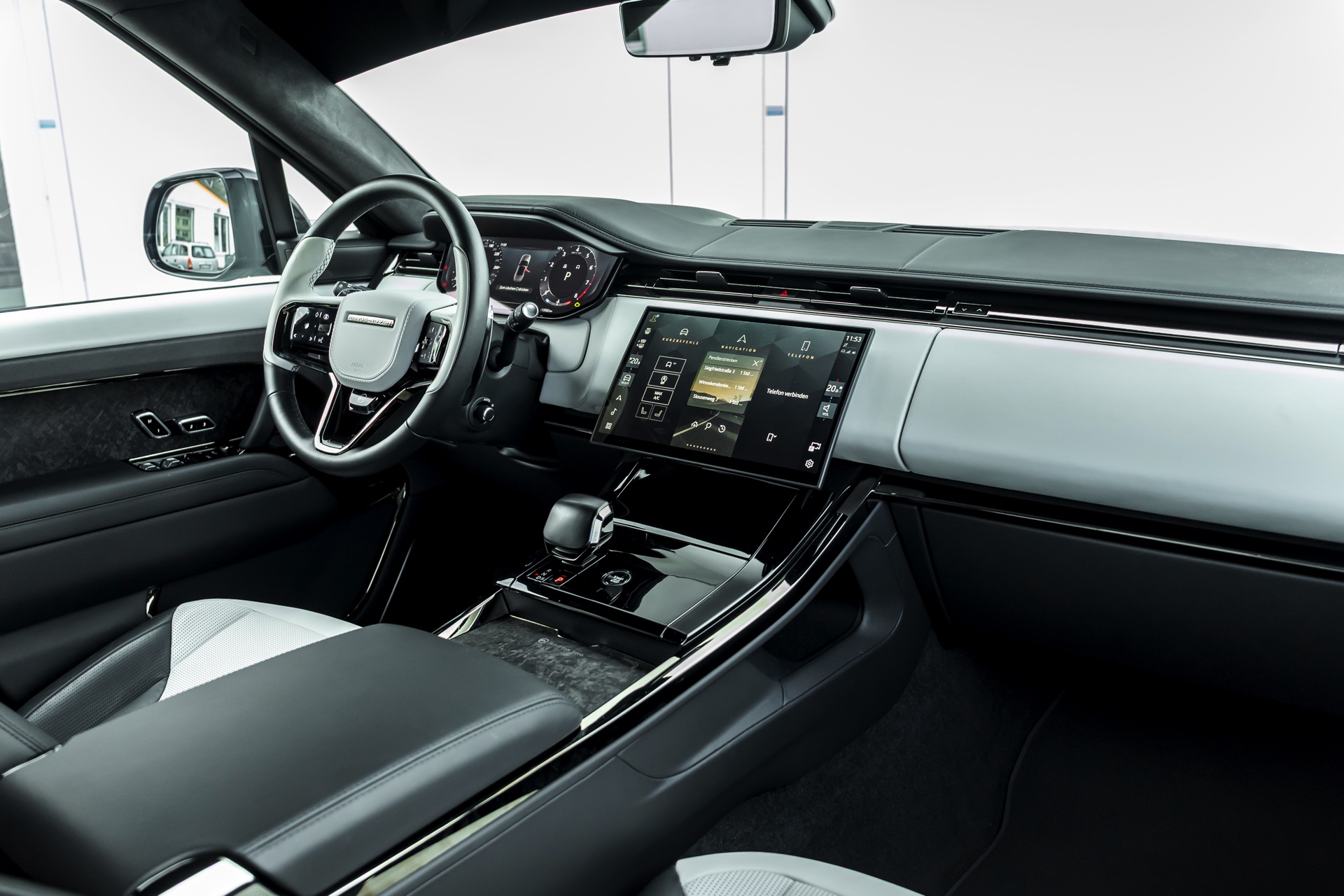 Gleiches gilt für den Innenraum, denn auch hier gibt es jede Menge Forged Carbon direkt von Range Rover. Wer zumindest ein Mindestmaß an Manhart-Individualisierung wünscht, kann aber Details wie Fußmatten mit entsprechenden Schriftzügen bestellen. Vergleichsweise dezent bleibt auch die Manhart-Folierung für das Exterieur, die auf Höhe der Türgriffe auch bei Fahrzeugen mit matter Lackierung einen glänzenden Akzent setzt.