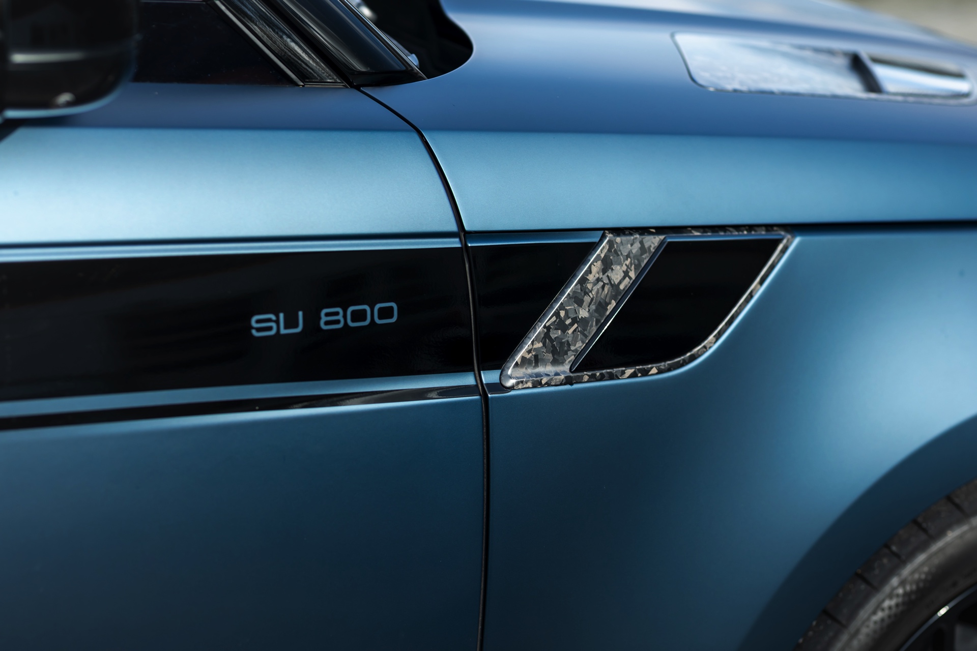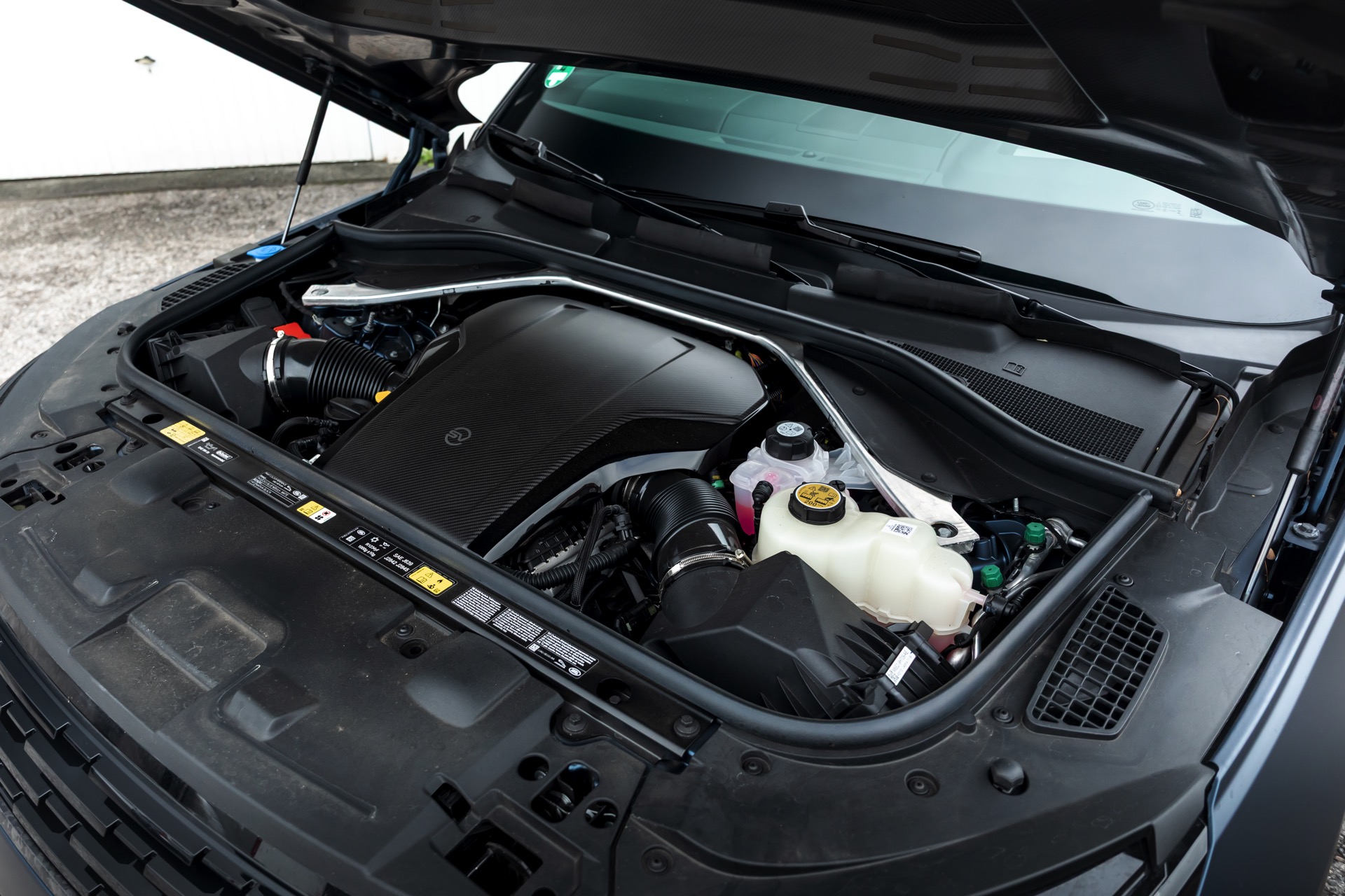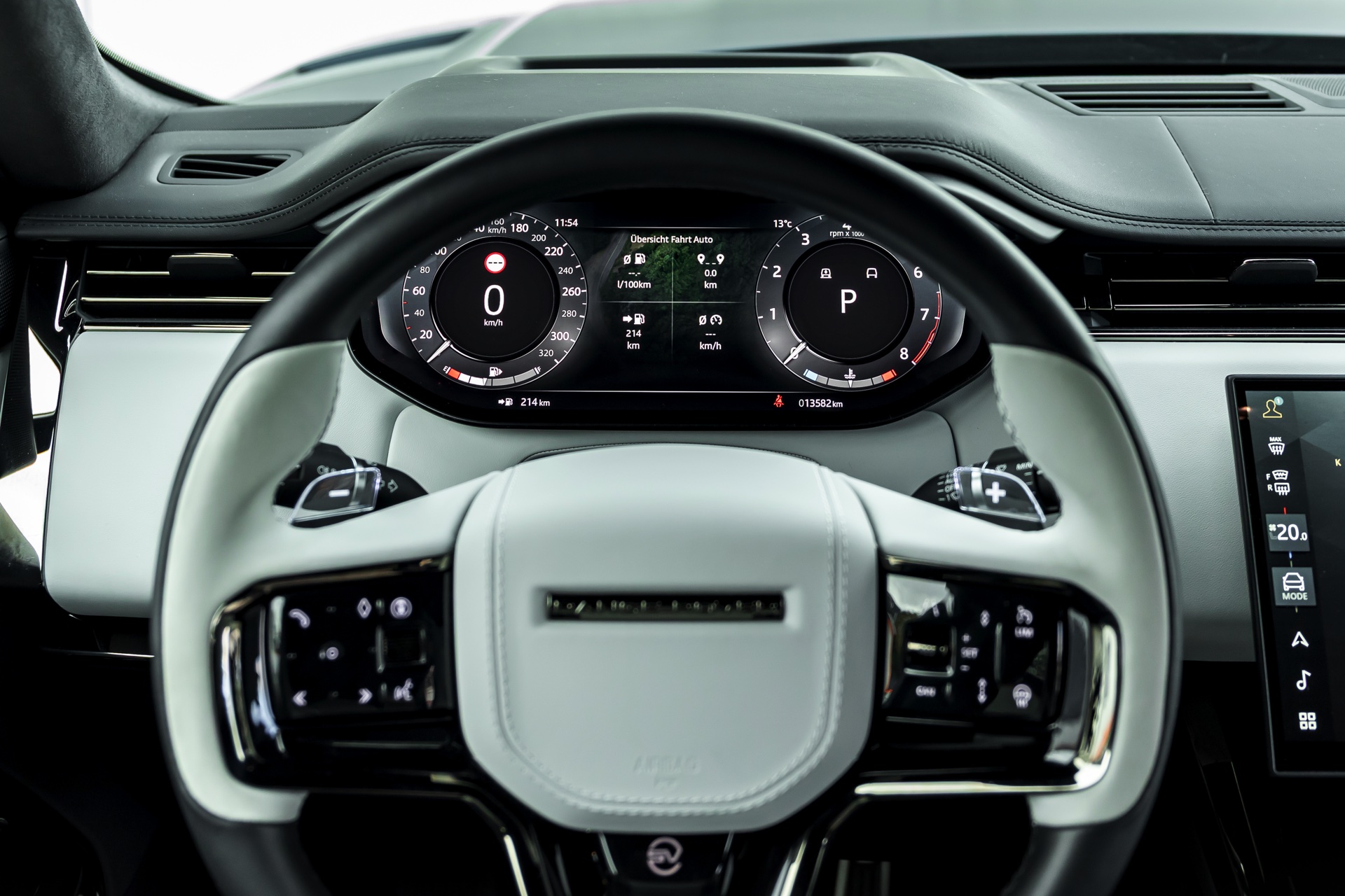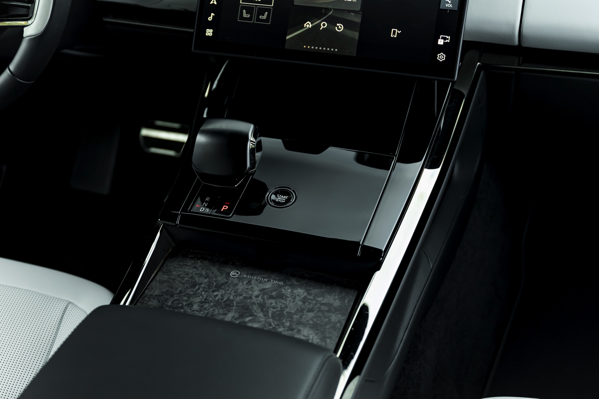 Gleiches gilt für den Innenraum, denn auch hier gibt es jede Menge Forged Carbon direkt von Range Rover. Wer zumindest ein Mindestmaß an Manhart-Individualisierung wünscht, kann aber Details wie Fußmatten mit entsprechenden Schriftzügen bestellen. Vergleichsweise dezent bleibt auch die Manhart-Folierung für das Exterieur, die auf Höhe der Türgriffe auch bei Fahrzeugen mit matter Lackierung einen glänzenden Akzent setzt.
