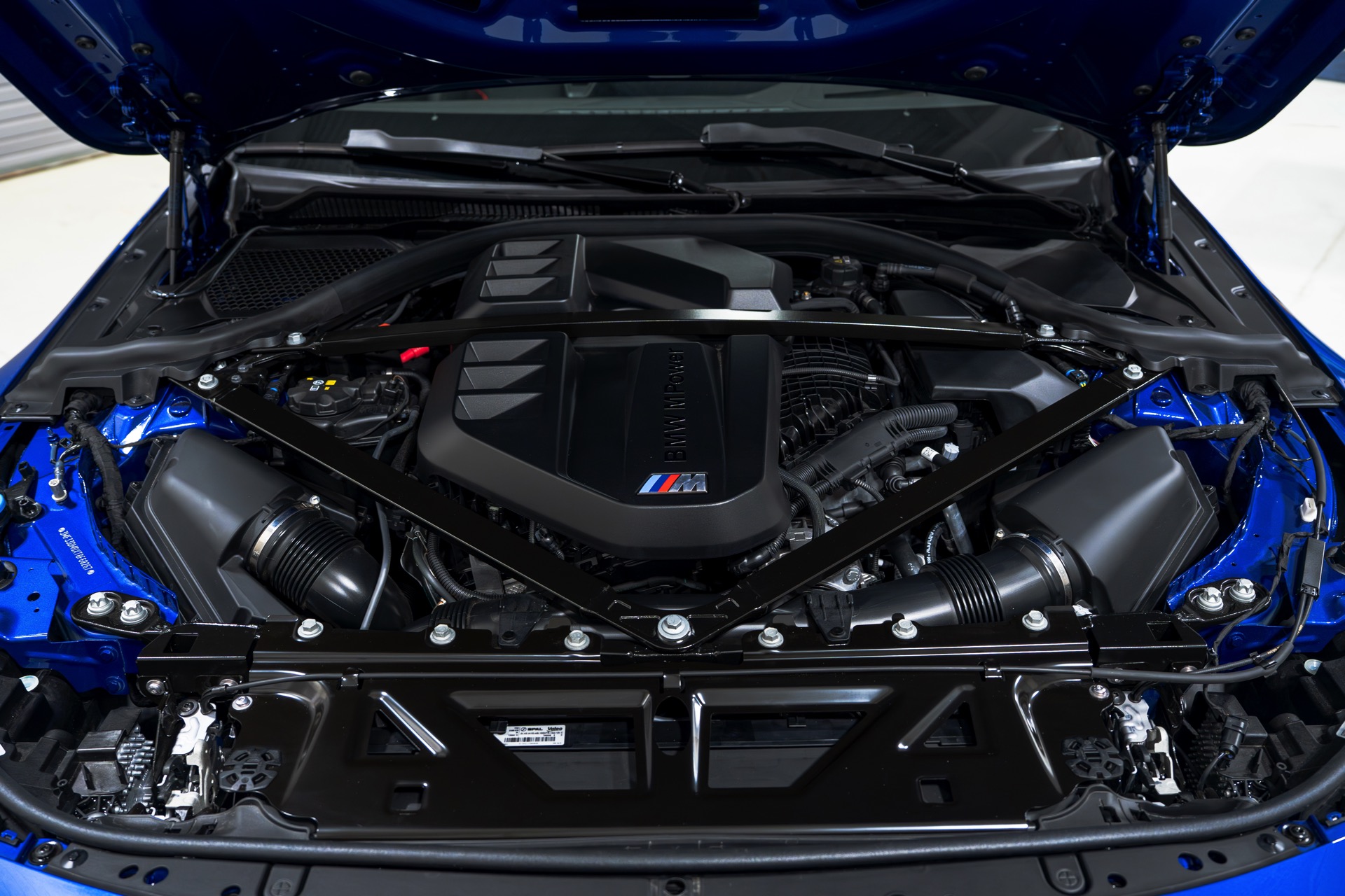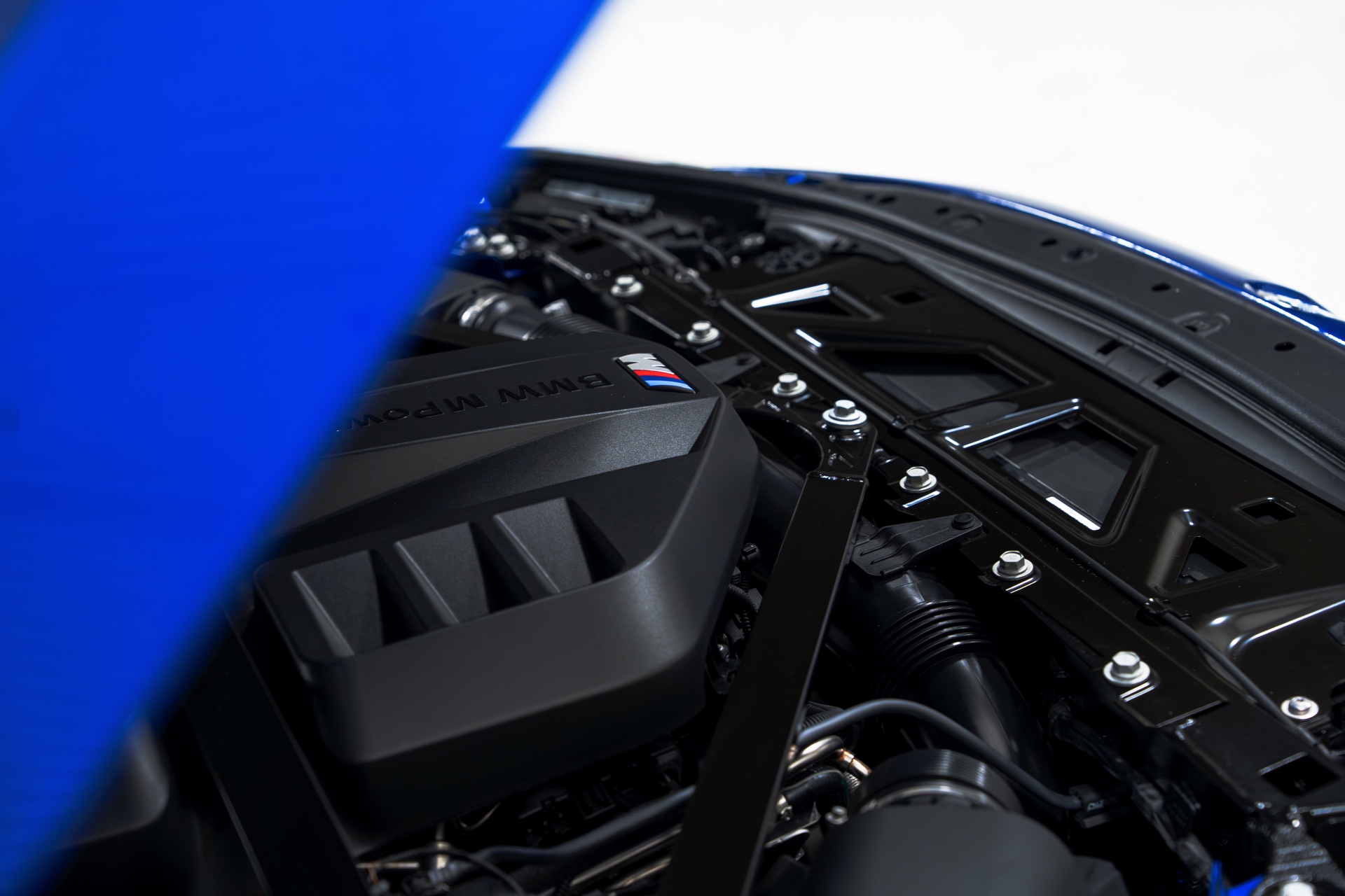 Einen Blick unter die Hauben des BMW M2 CS liefern die folgenden Fotos – sowohl unter die zum Teil in Sicht-Carbon ausgeführte Kofferraumhaube als auch unter die vordere Motorhaube, unter der der 530 PS starke Biturbo-Reihensechszylinder S58 arbeiten darf: