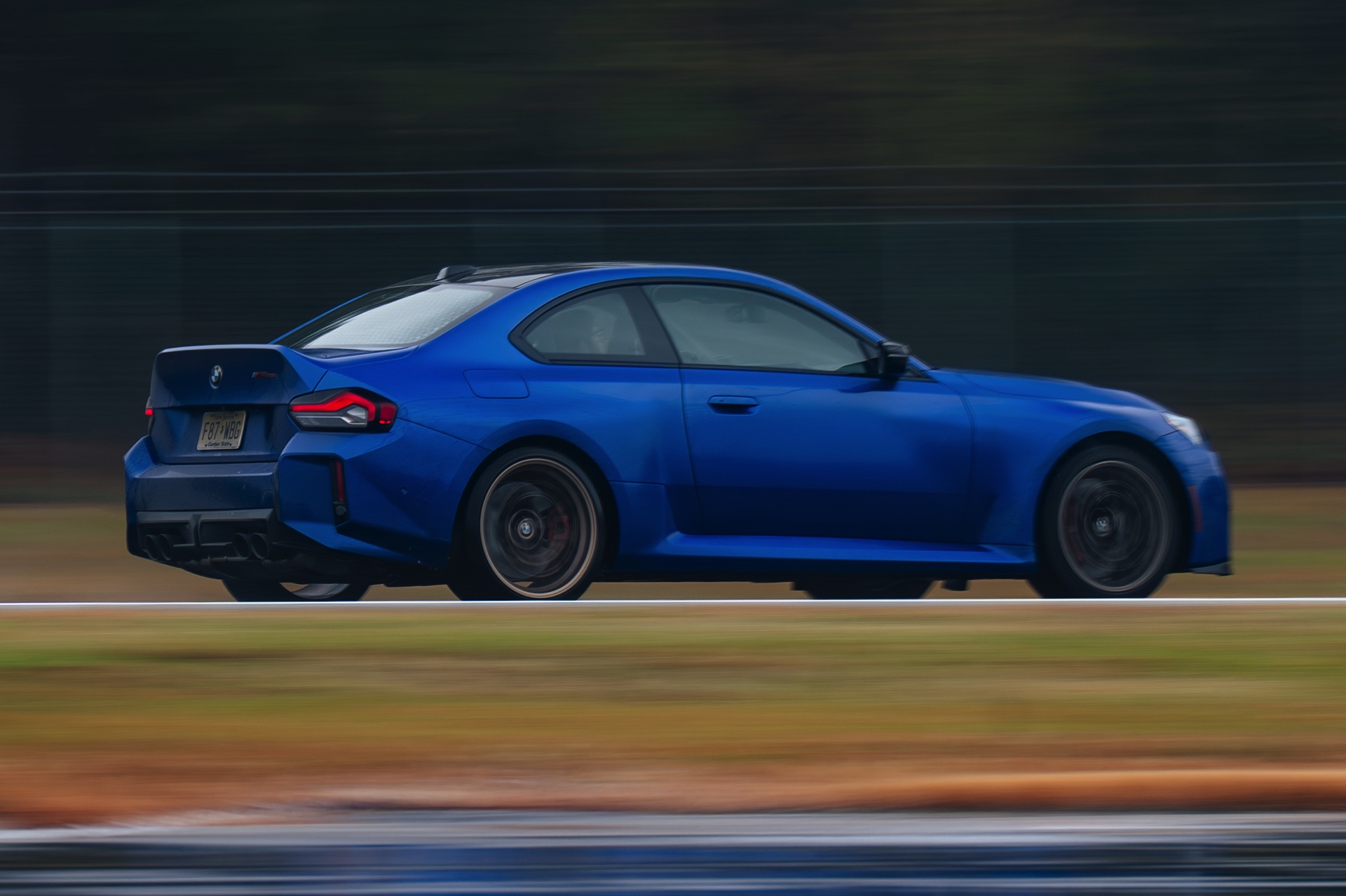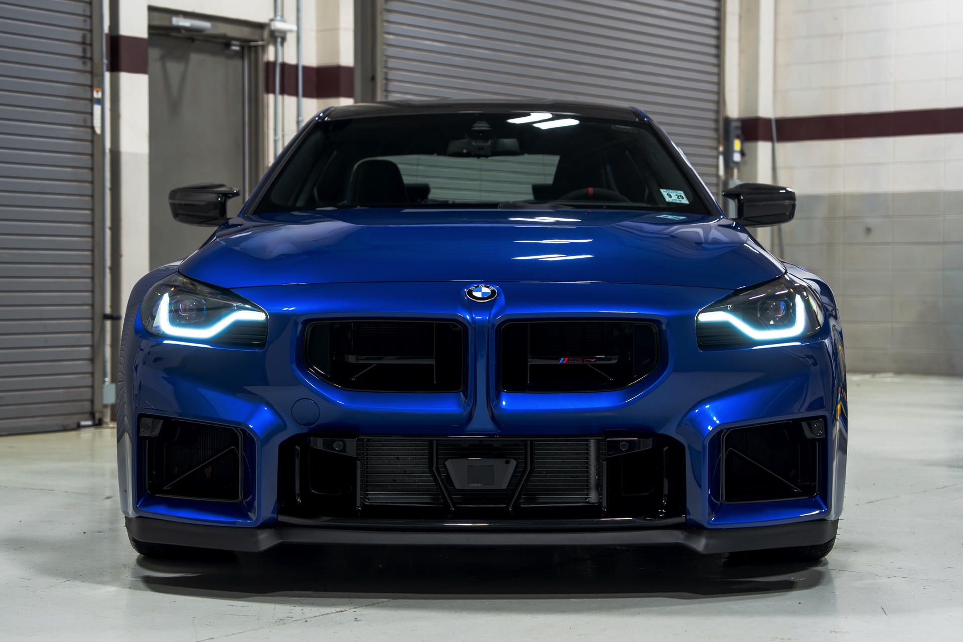 In Sachen Exklusivität kann Portimao Blue nicht mit den übrigen Farb-Optionen für den BMW M2 CS (G87) mithalten, aber dem intensiven Blau mangelt es dennoch nicht an Attraktivität. Aktuelle Fotos aus den USA zeigen uns das 530 PS starke Topmodell der aktuellen M2-Generation sowohl im dynamischen Einsatz als auch im Studio, sodass sich alle Details in Ruhe betrachten lassen. Die CS-exklusive Niere mit nur einer einzigen Querstrebe und die neu gestaltete Blende vor dem zentralen Lufteinlass der Frontschürze sind dabei nur der Anfang, denn der offiziell schnellste Kompaktsportler auf der Nürburgring Nordschleife hat auch aus allen anderen Perspektiven viel zu bieten.
