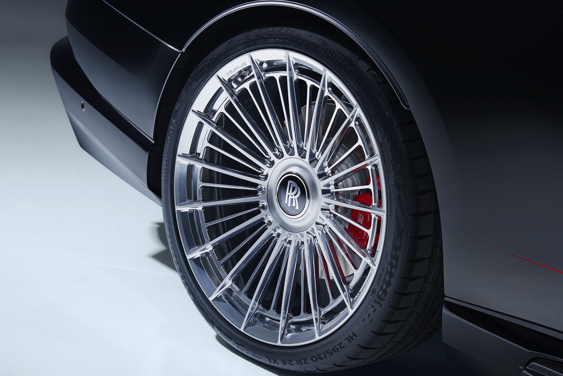 Das Luxus-Coupé erhält nicht nur ein neues Fahrwerk mit Tieferlegung um 35 Millimeter, sondern vor allem auch XXL-Felgen im Vielspeichen-Design: Die Spofec SP4 im imposanten 24-Zoll-Format wurden gemeinsam mit Vossen Wheels entwickelt und schaffen es, die riesigen Radhäuser des Spectre auszufüllen. Die Kingsize-Felgen sind rundum mit 295 Millimeter breiten Reifen vom Typ Continental SportContact 7 bezogen, womit für reichlich Traktion gesorgt ist. "